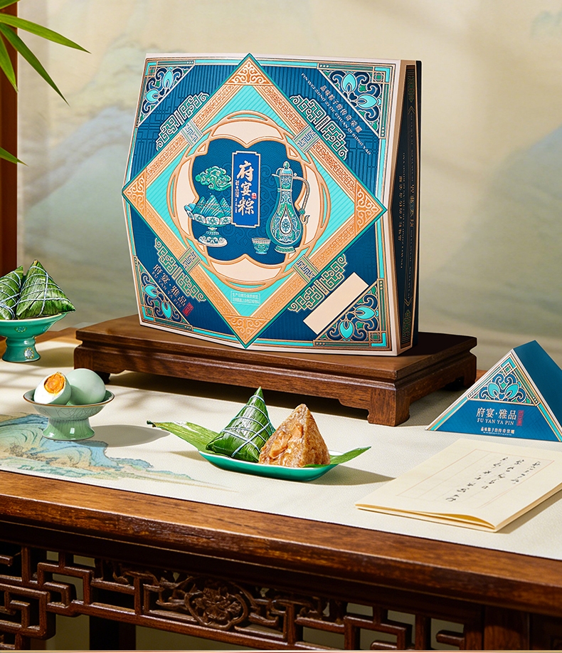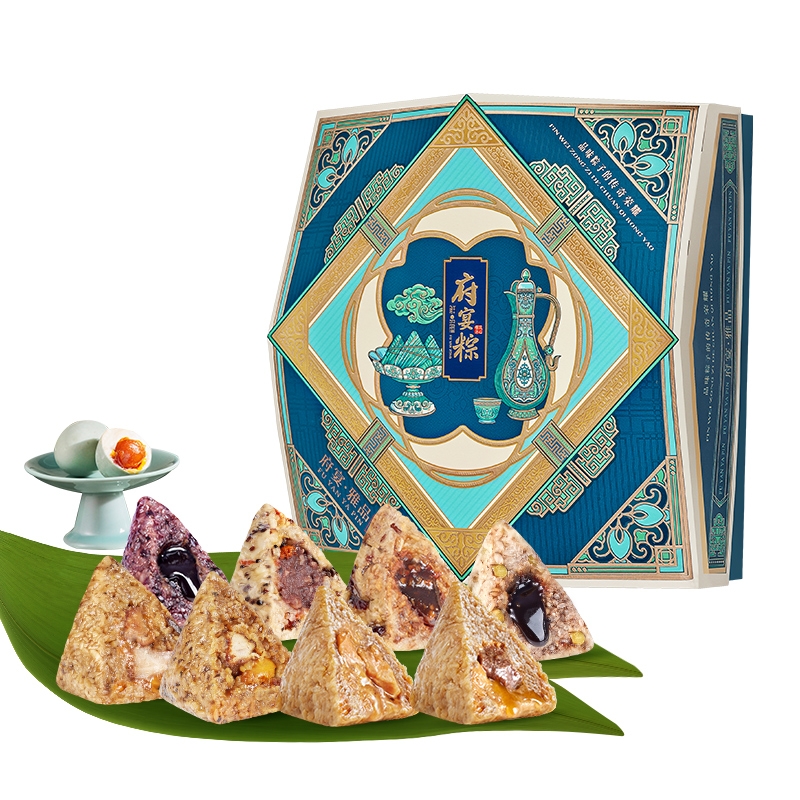鲜品屋端午节高端府宴粽子礼盒;企业团购福利送礼送父母长辈;内含十粽八味,五肉五素,搭配营养绿豆沙及两枚海鸭蛋