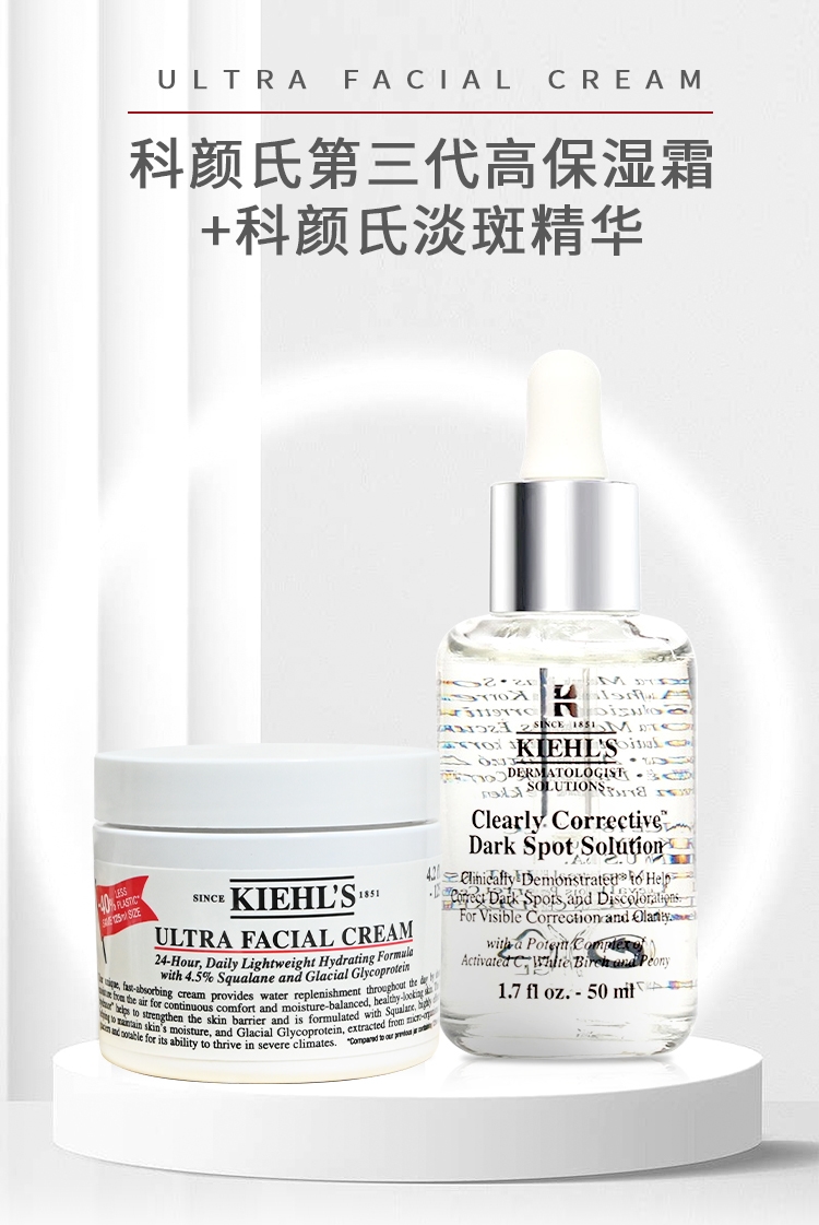 配置清单:科颜氏淡斑精华50ml+科颜氏高保湿面霜125ml+粉色礼盒