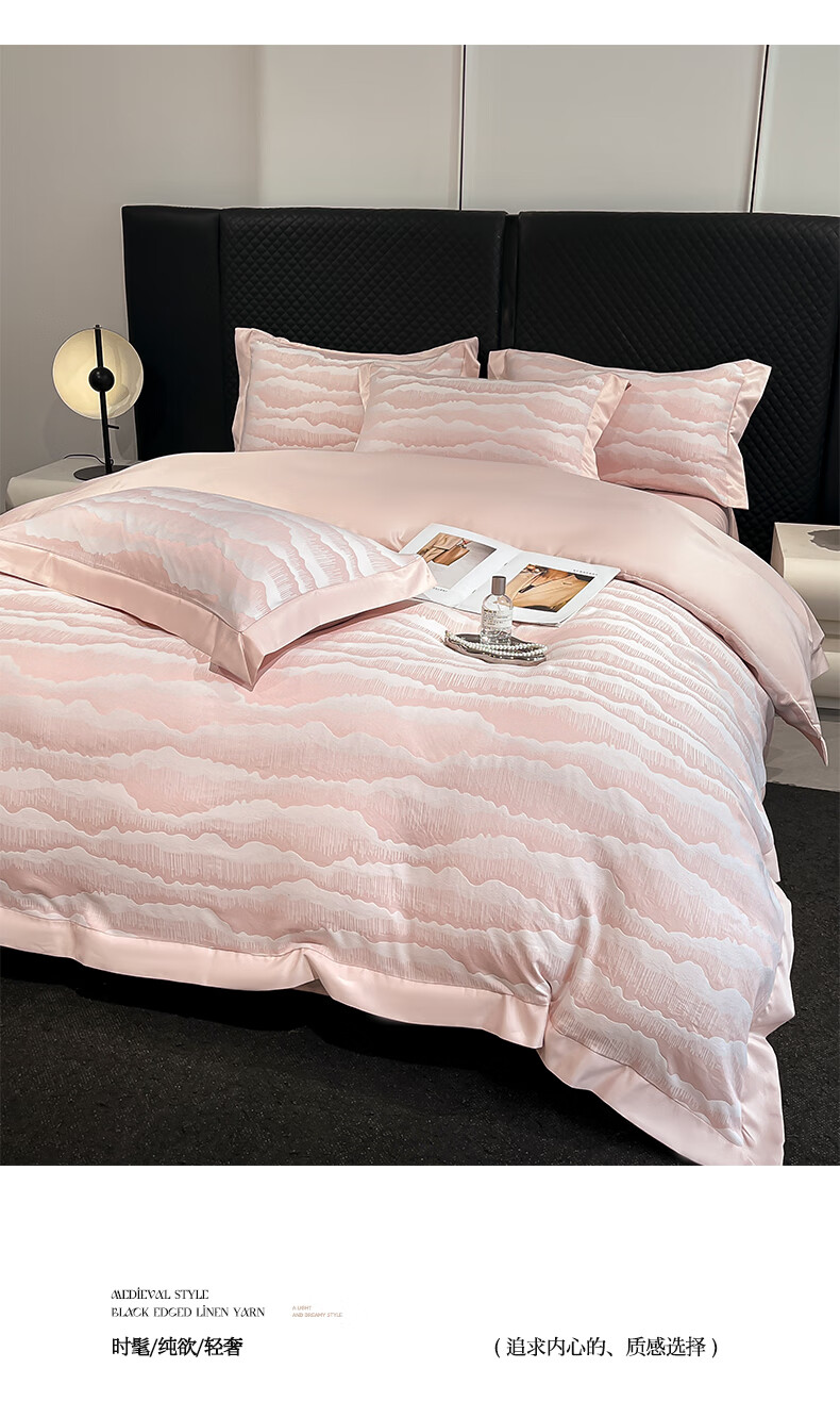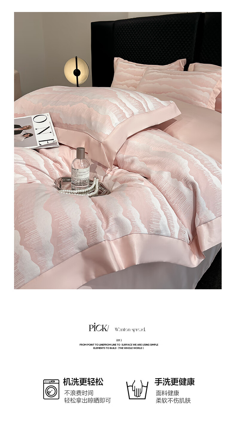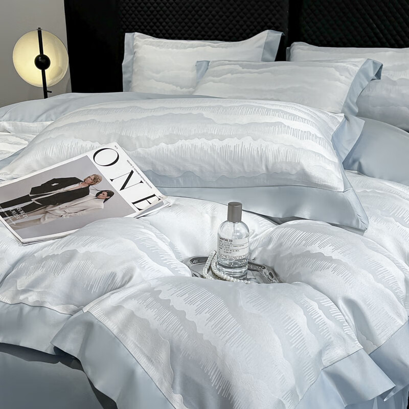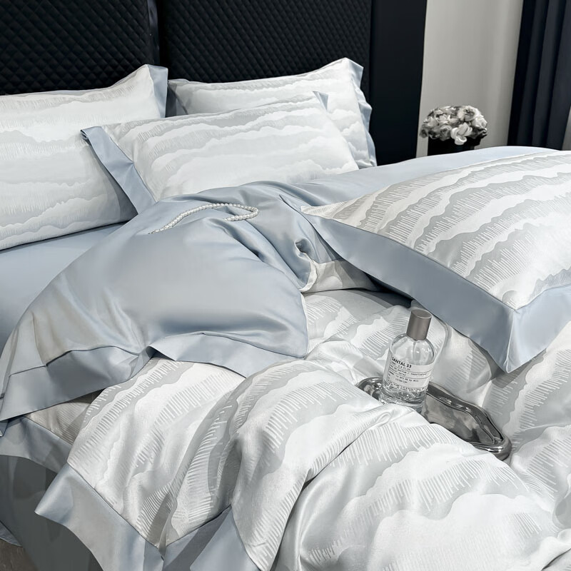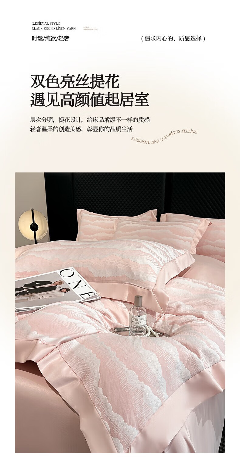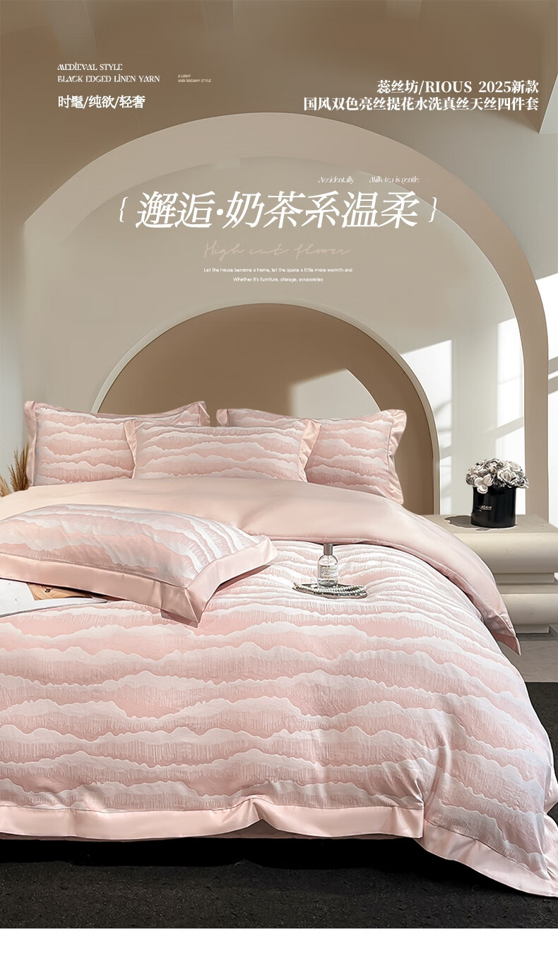 蕊丝坊 国风双色亮丝提花水洗真丝四件套