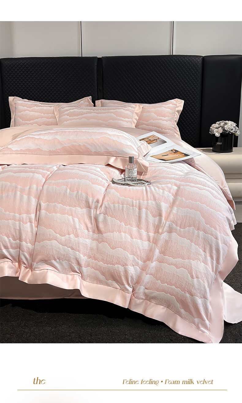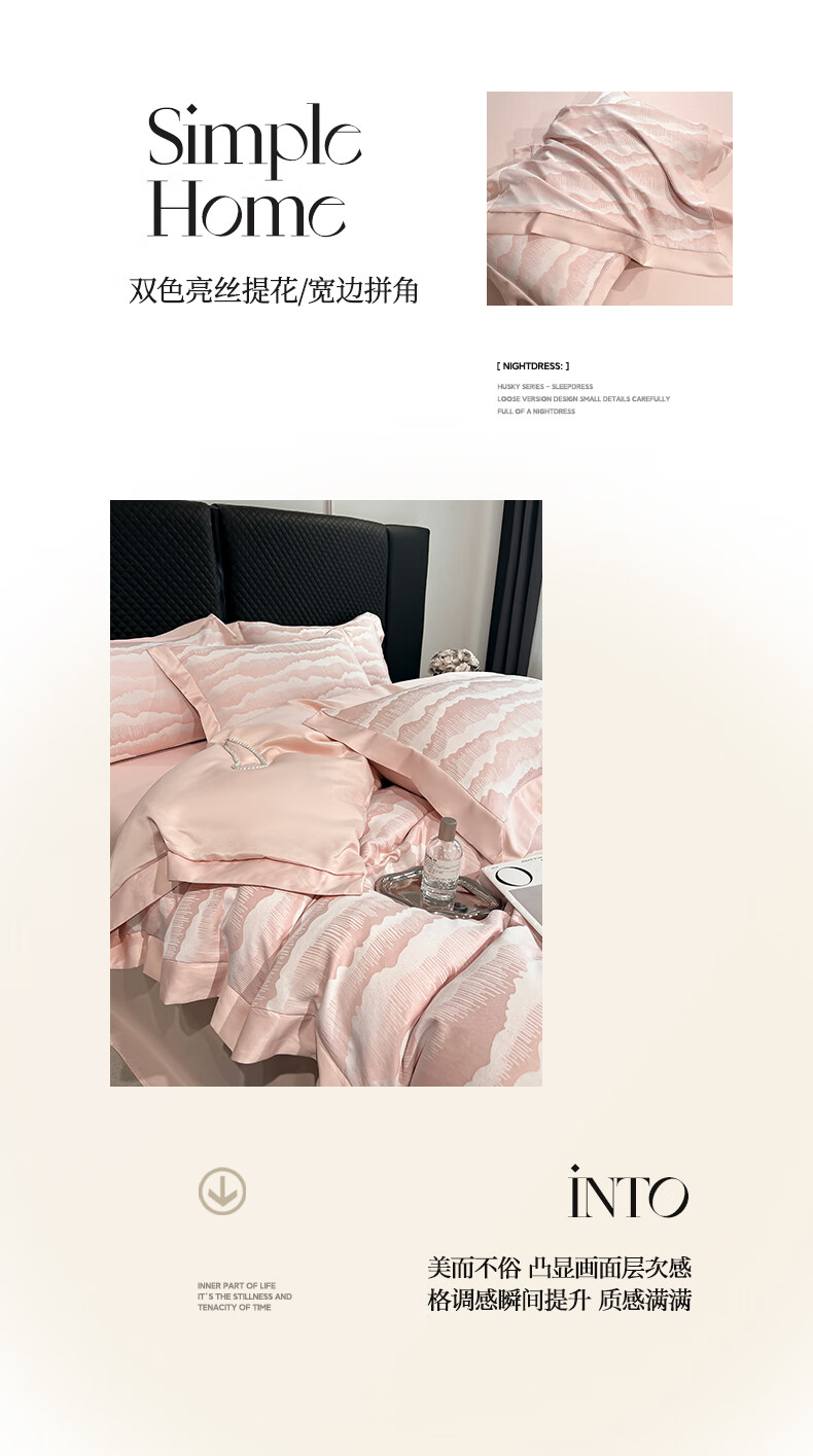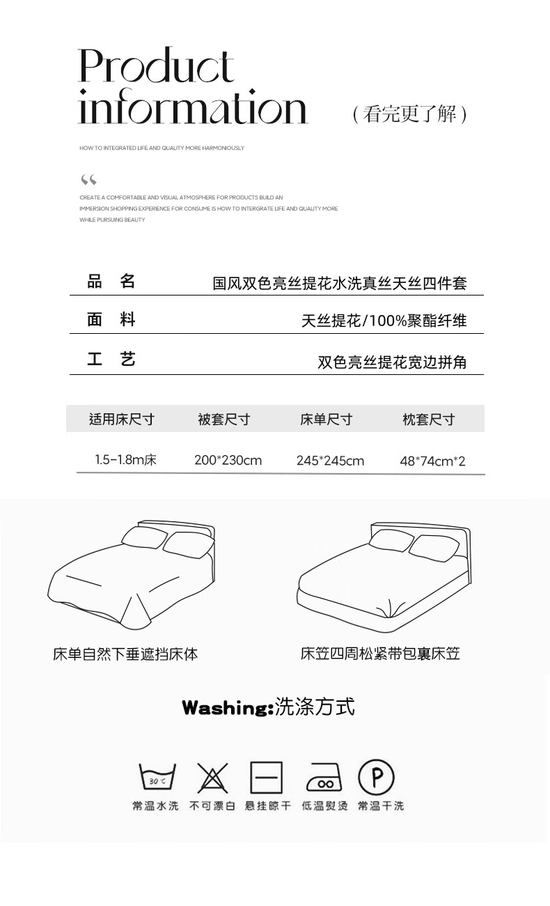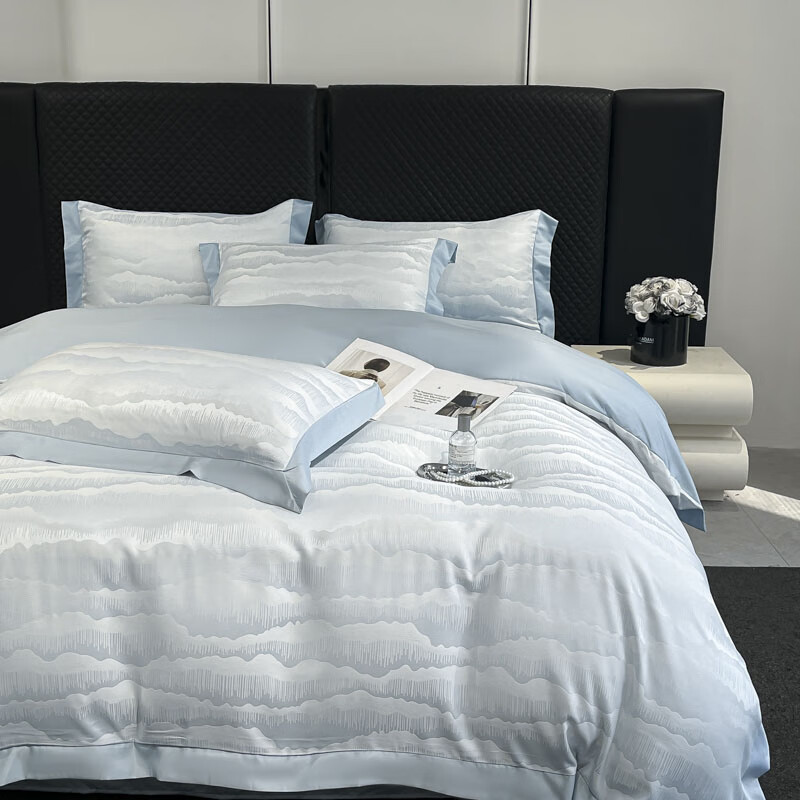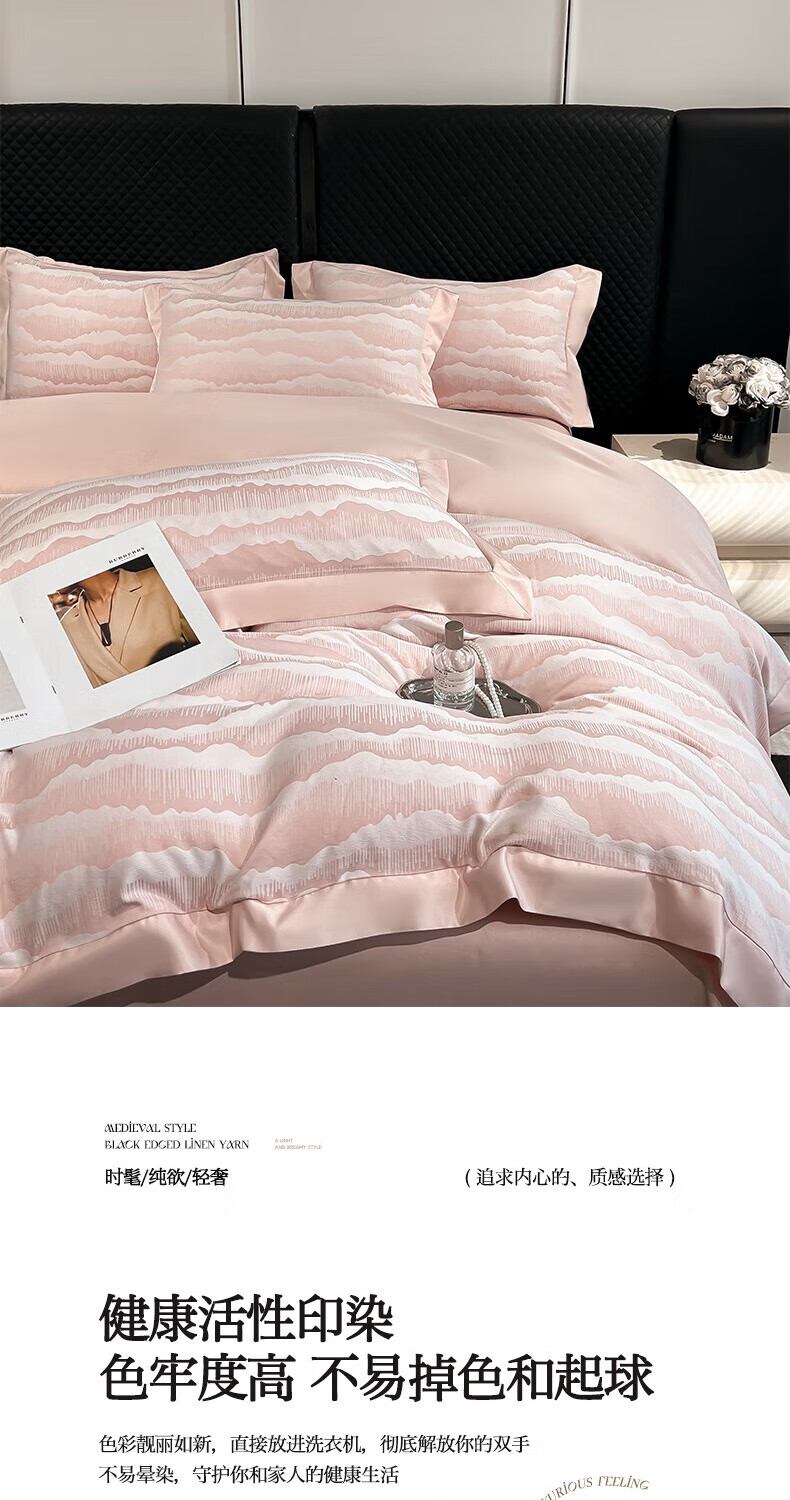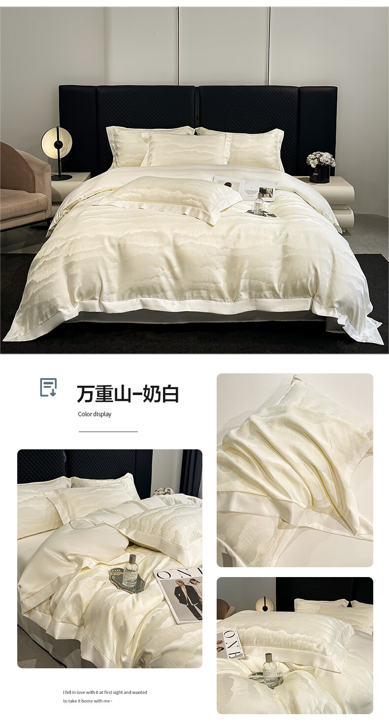 蕊丝坊 国风双色亮丝提花水洗真丝四件套