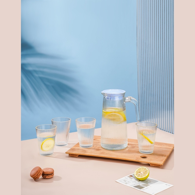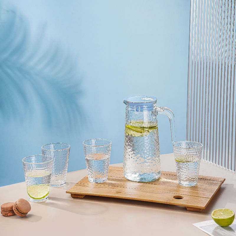 水壶与水杯均采用高品质玻璃材质,通透清澈,质感满满;水杯的杯型贴合手掌,握持舒适,喝水也成为一种享受;当晶莹的水在其中流转,光影交织