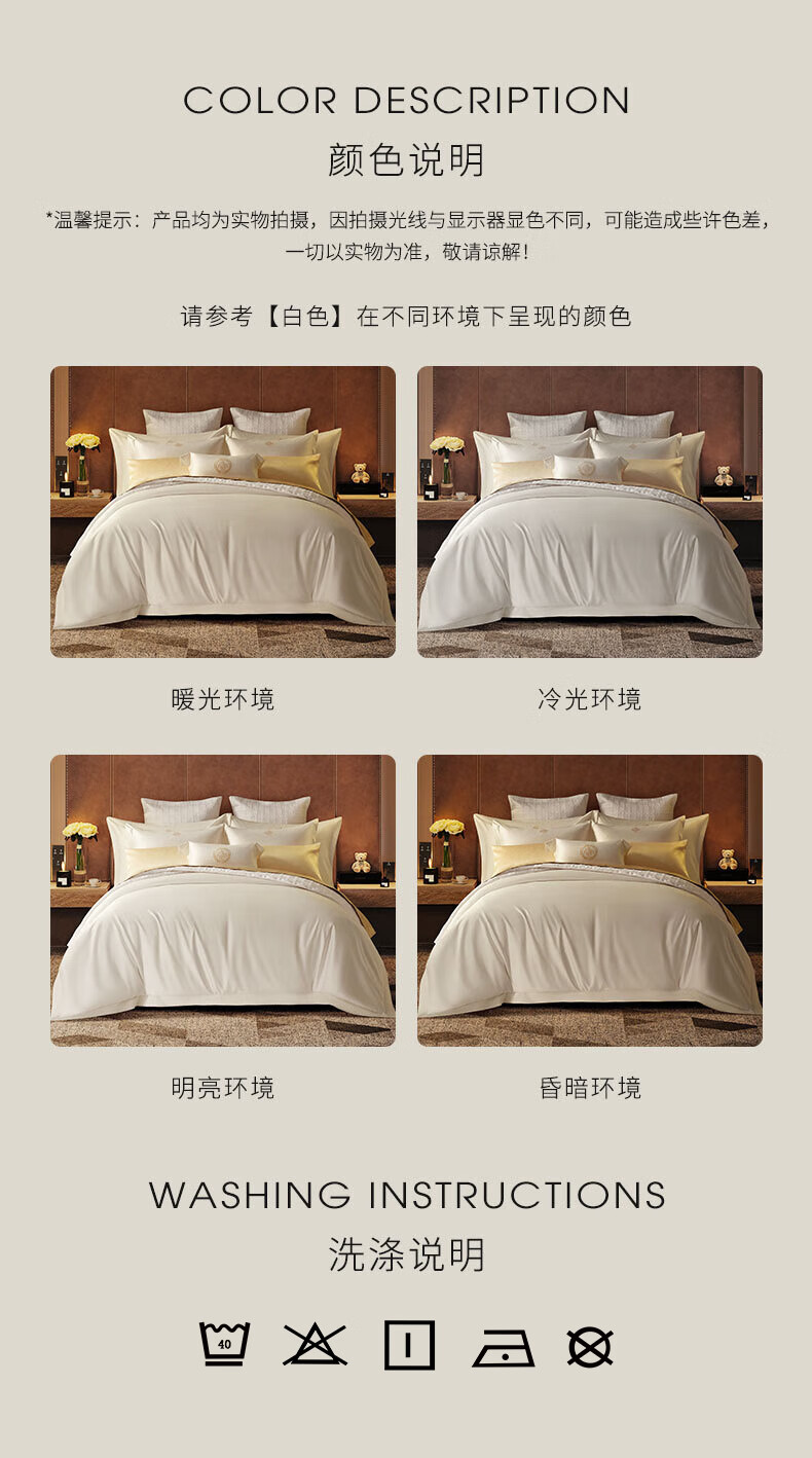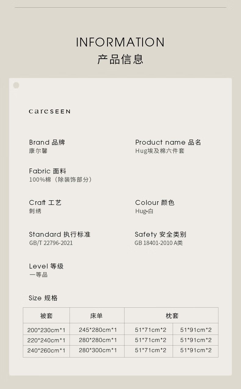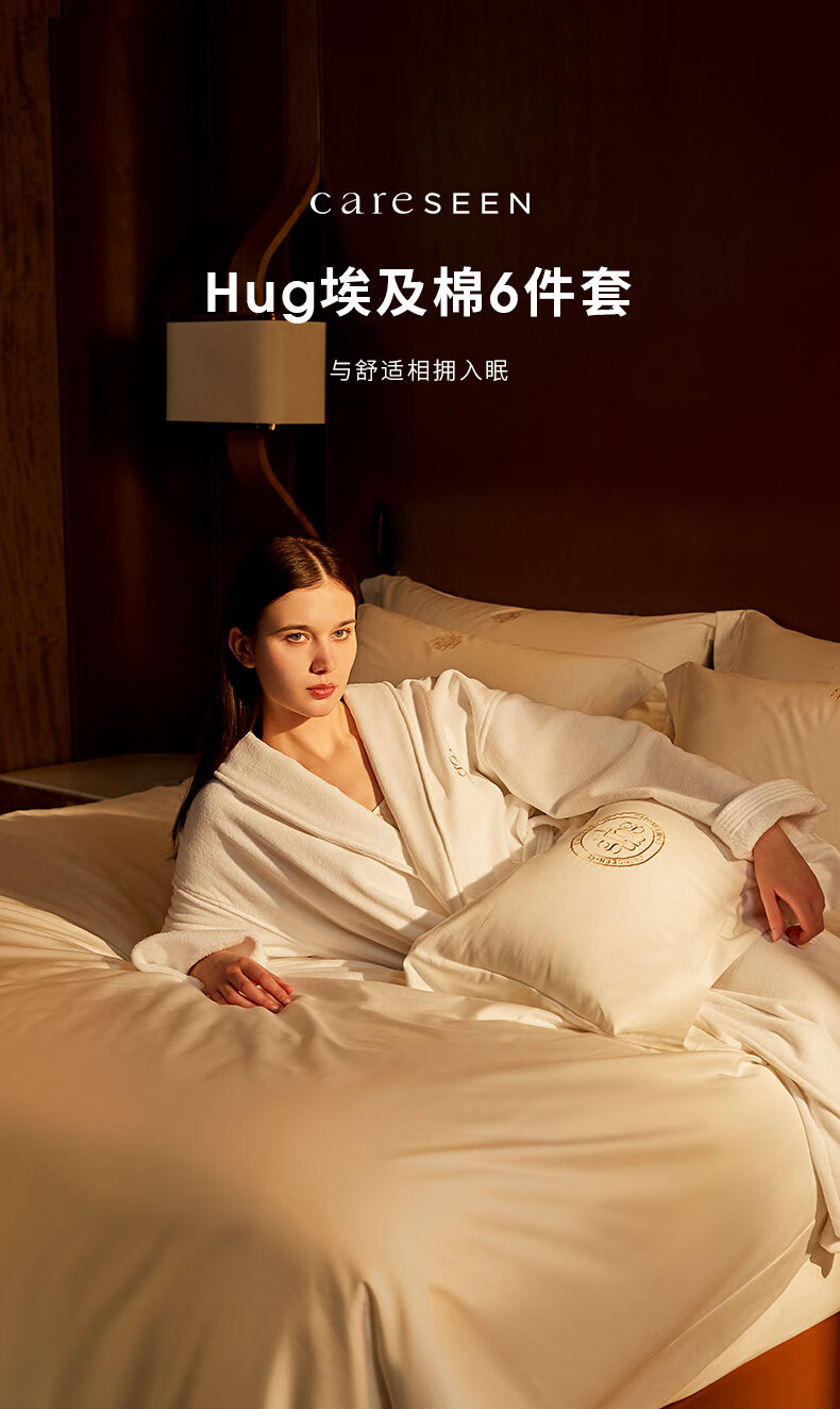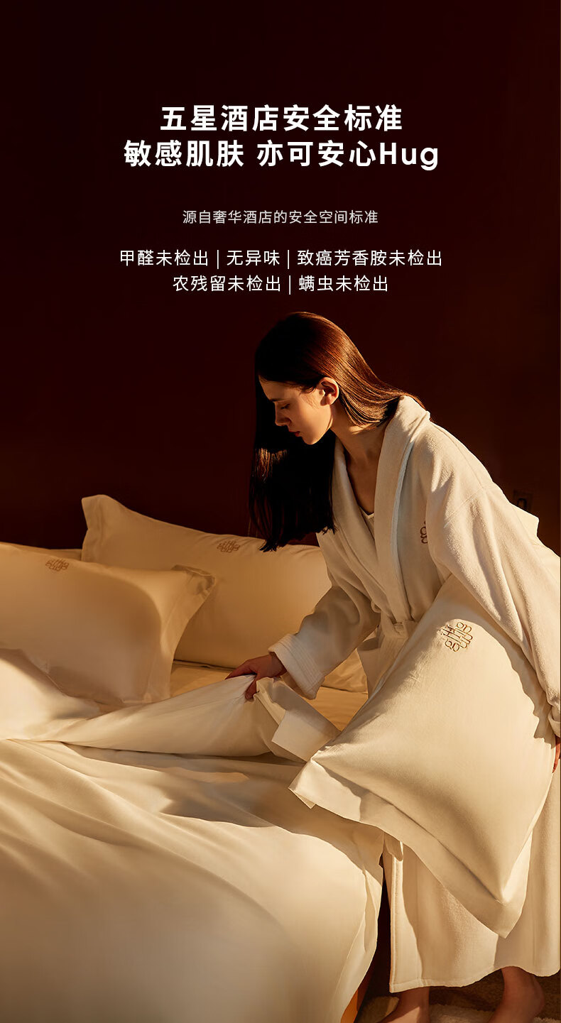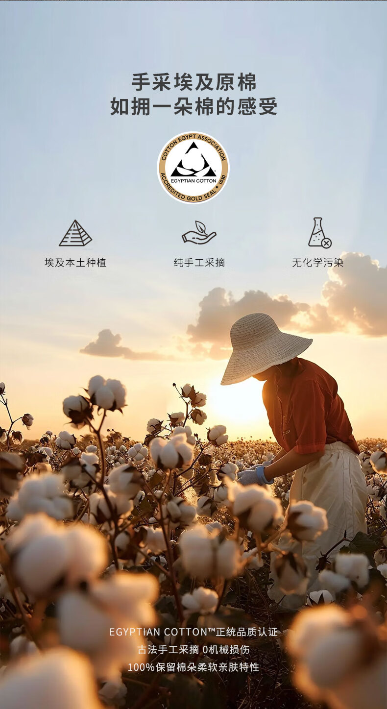 手采埃及原棉,古法手工采摘;丝光柔亮工艺,100S双股精梳精纺;「六零」安全标准:GB31701 A类婴幼儿用品标