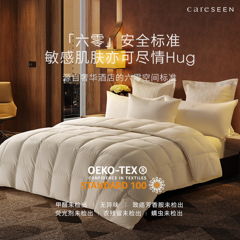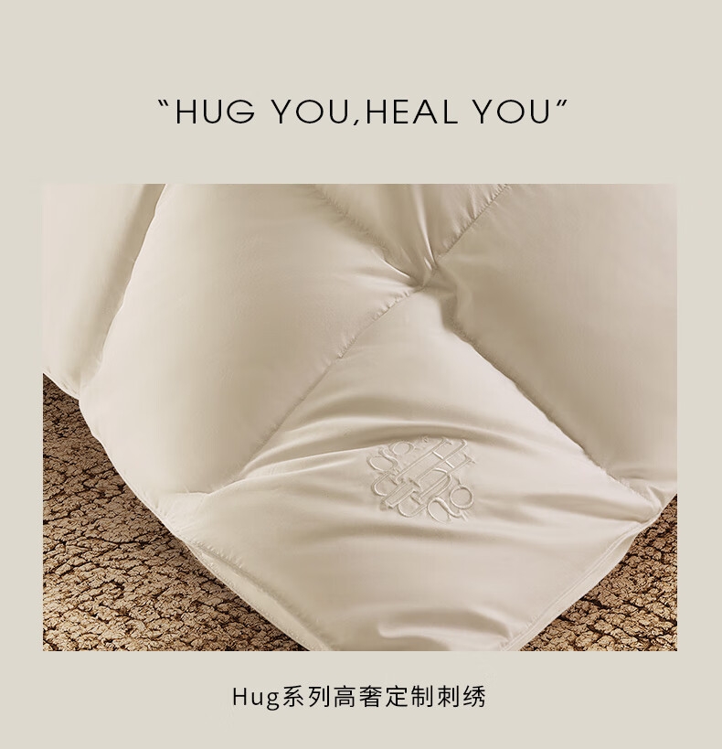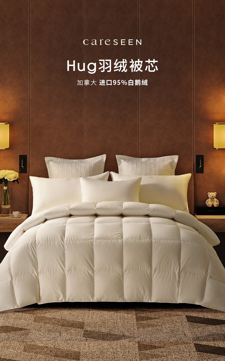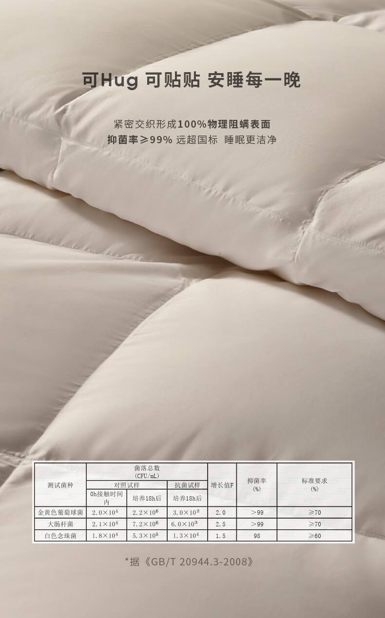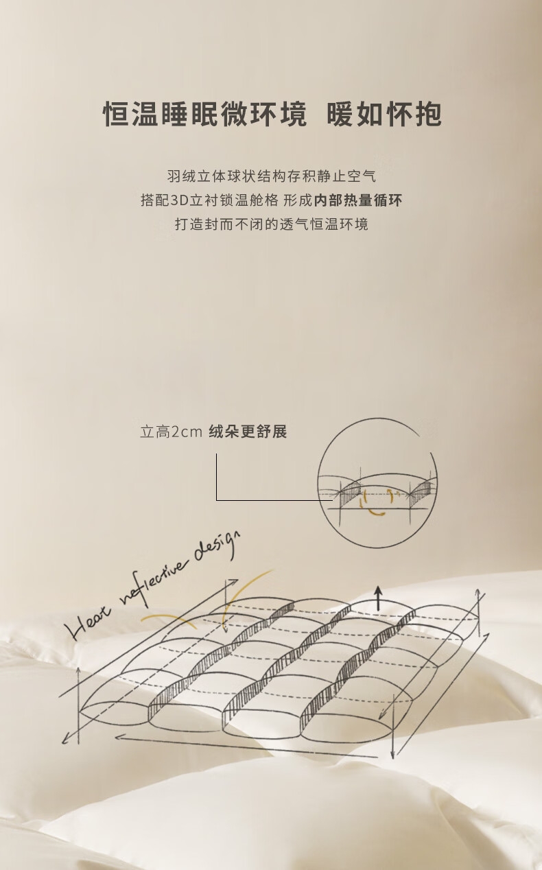 手拣级920+蓬松度;高支高密,120S英制高支柔赛丝;加拿白大鹅绒