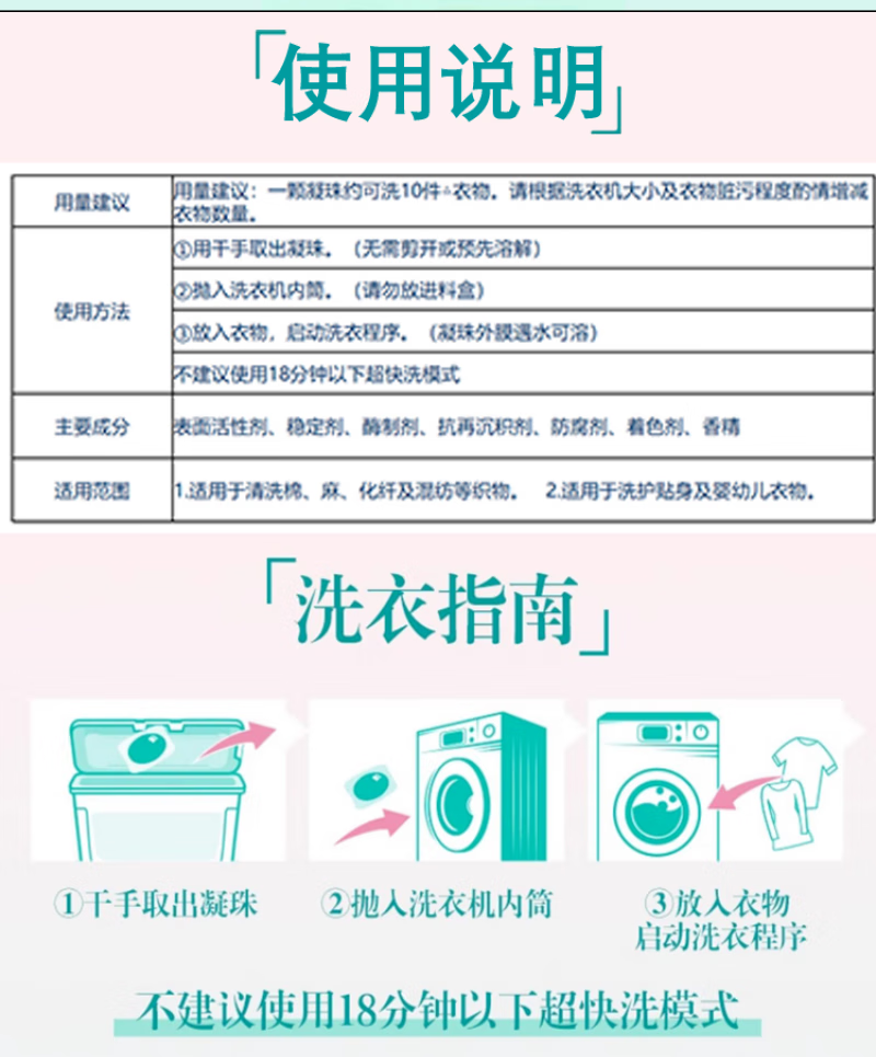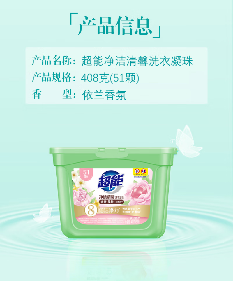 配置清单:超能净洁清馨洗衣凝珠(单腔)408g(51颗)*1