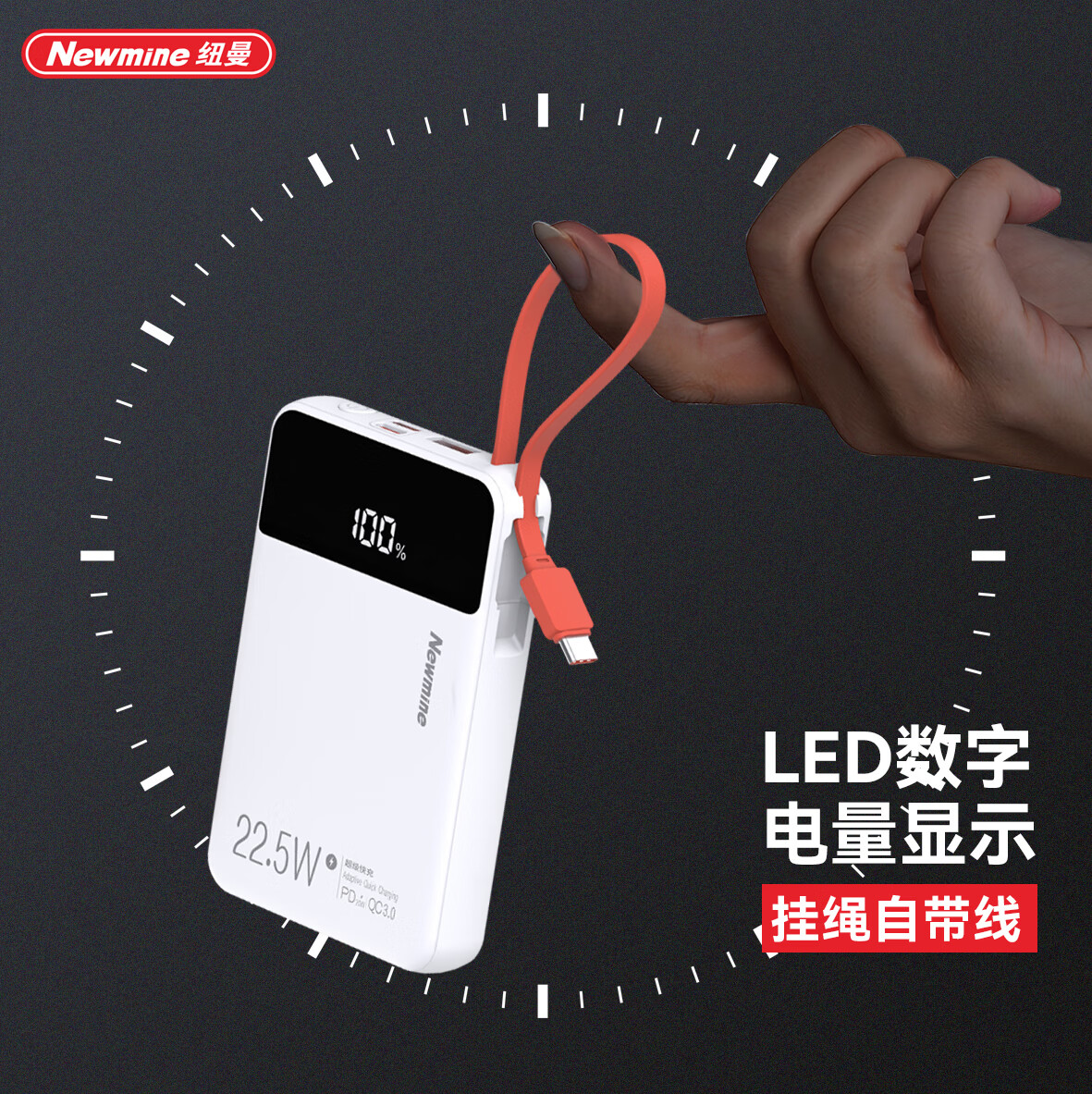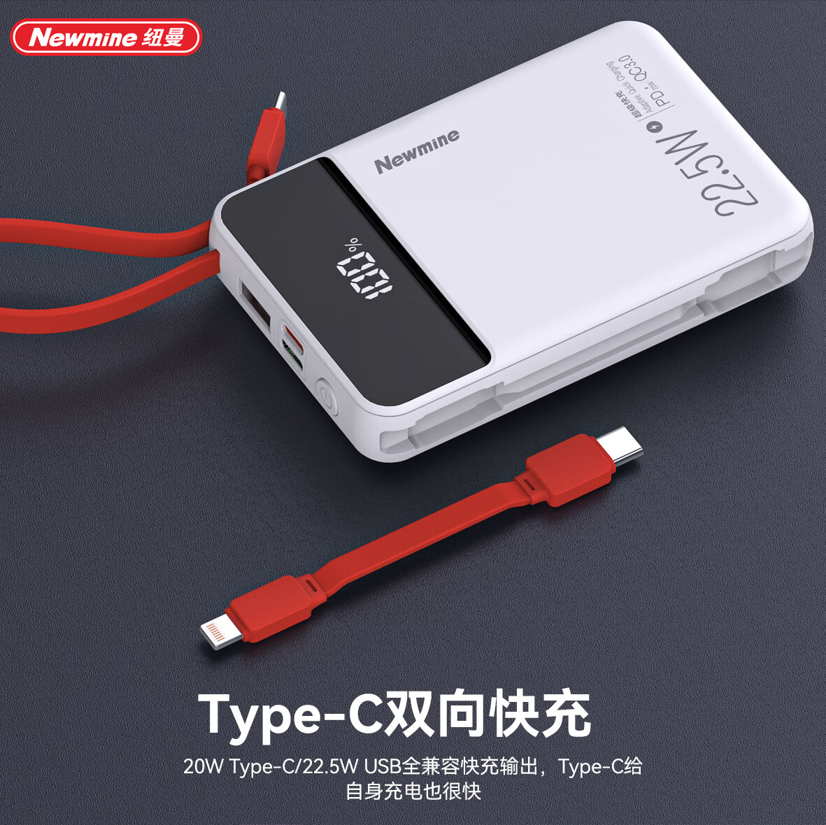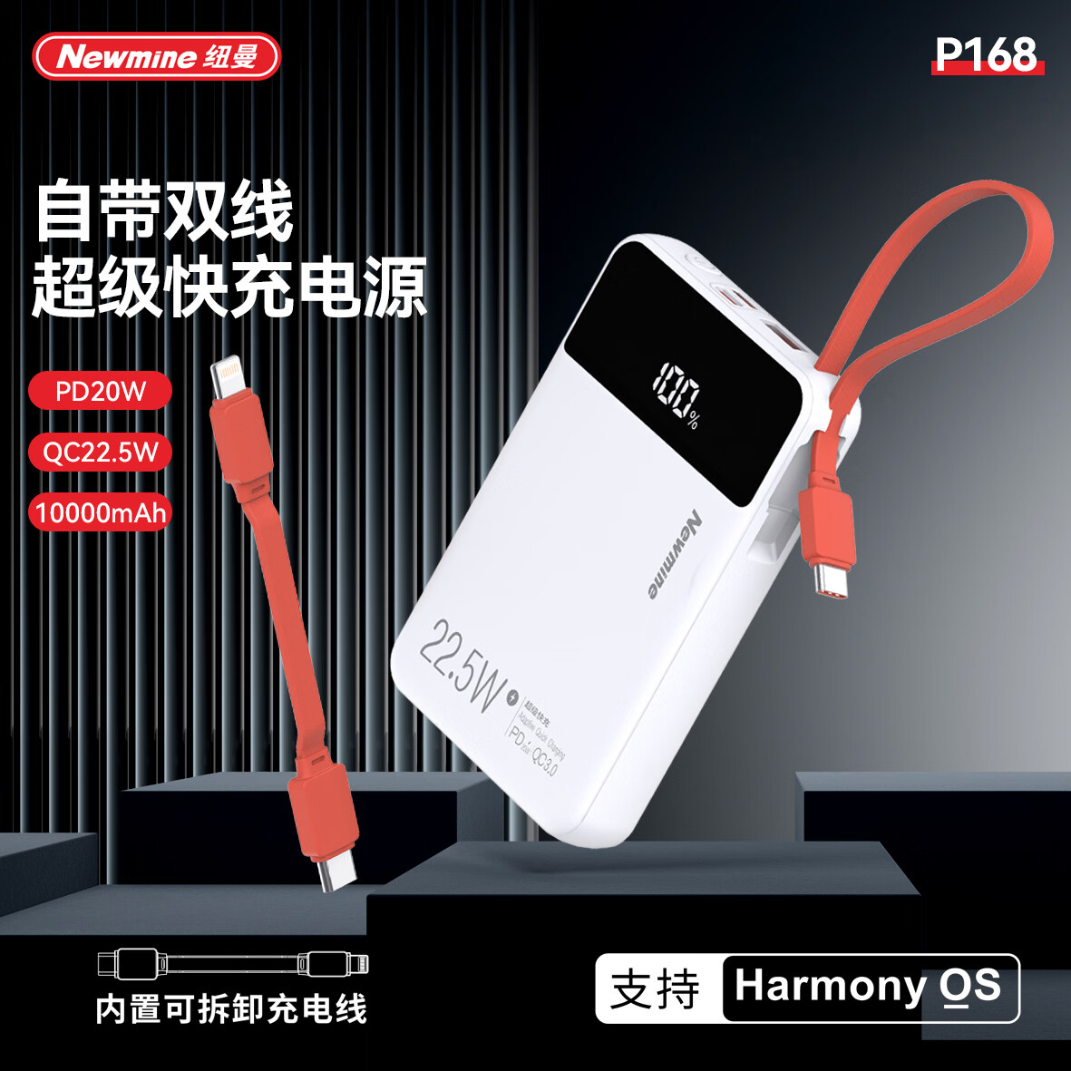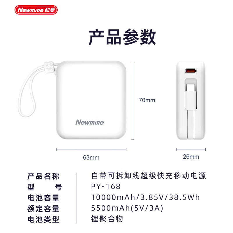 纽曼 迷你小巧自带可拆线快充充电宝PY168