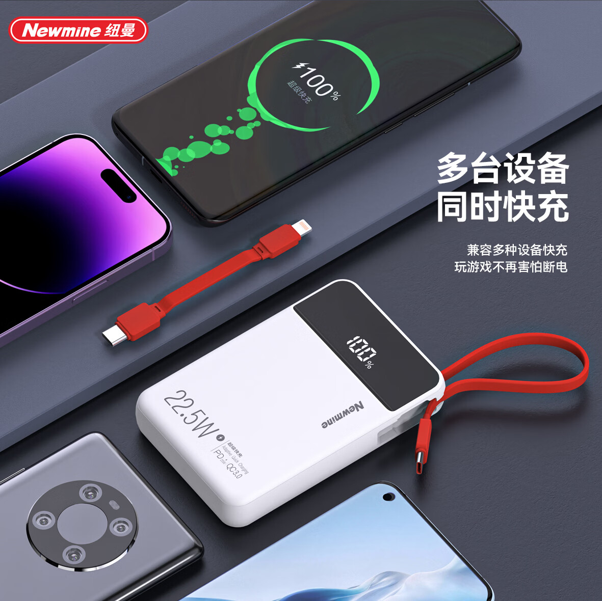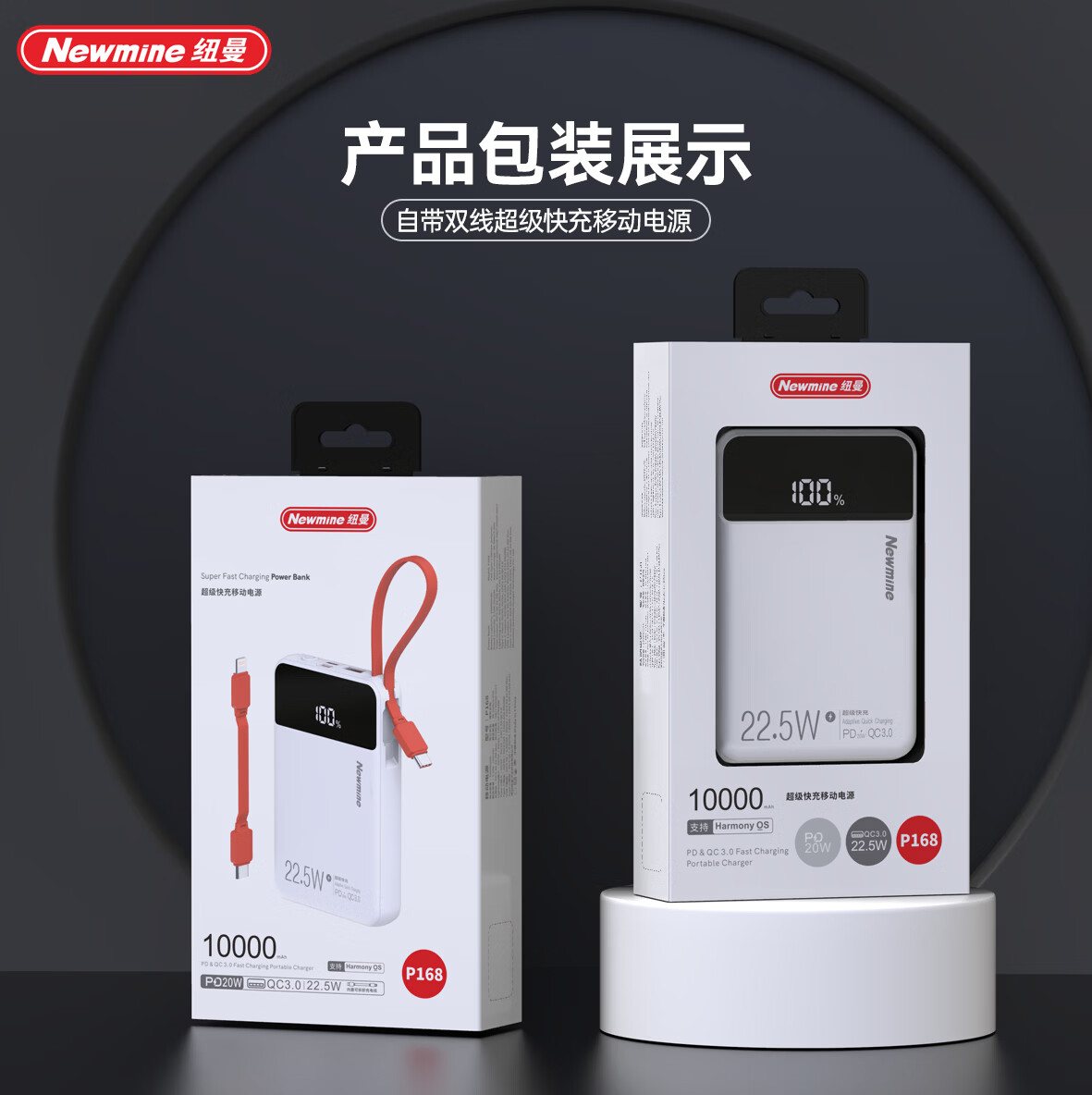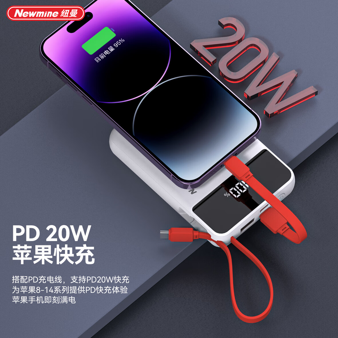 纽曼 迷你小巧自带可拆线快充充电宝PY168