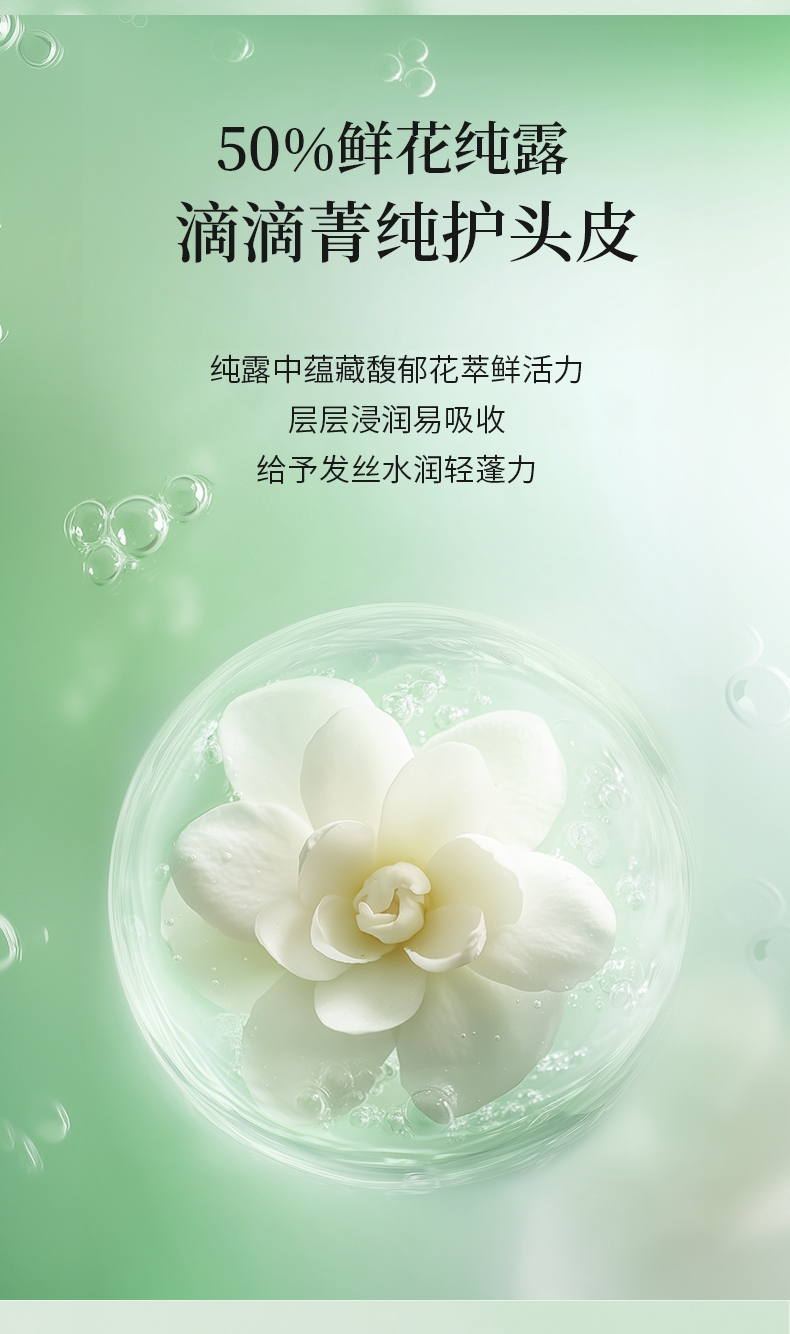 50%玫瑰花水足量添加养护头皮;调节水油平衡,头屑无反复;国际明星香氛巨头共研