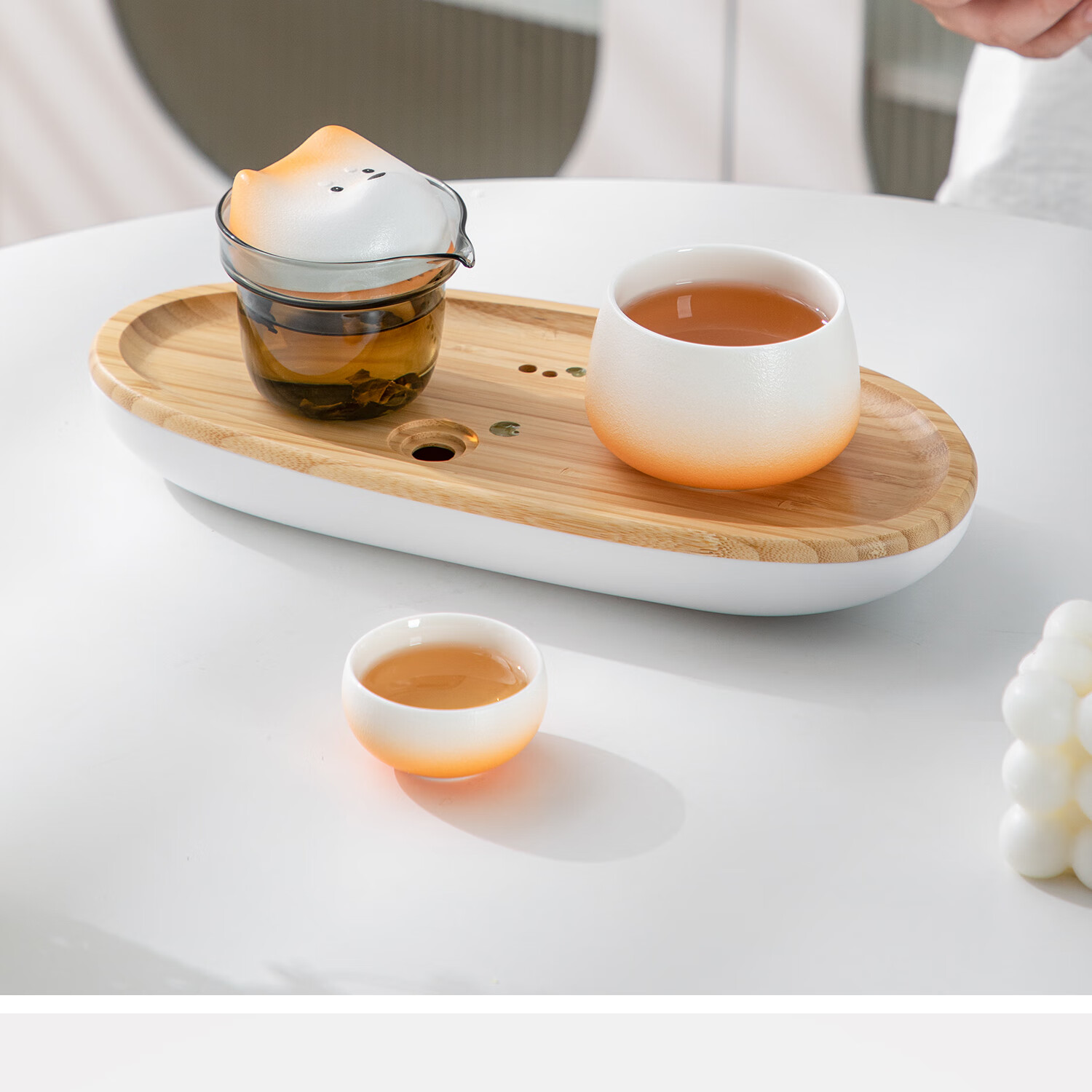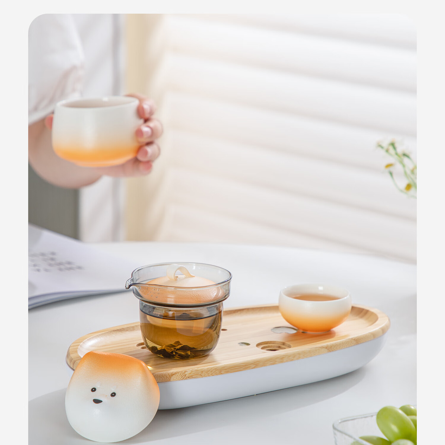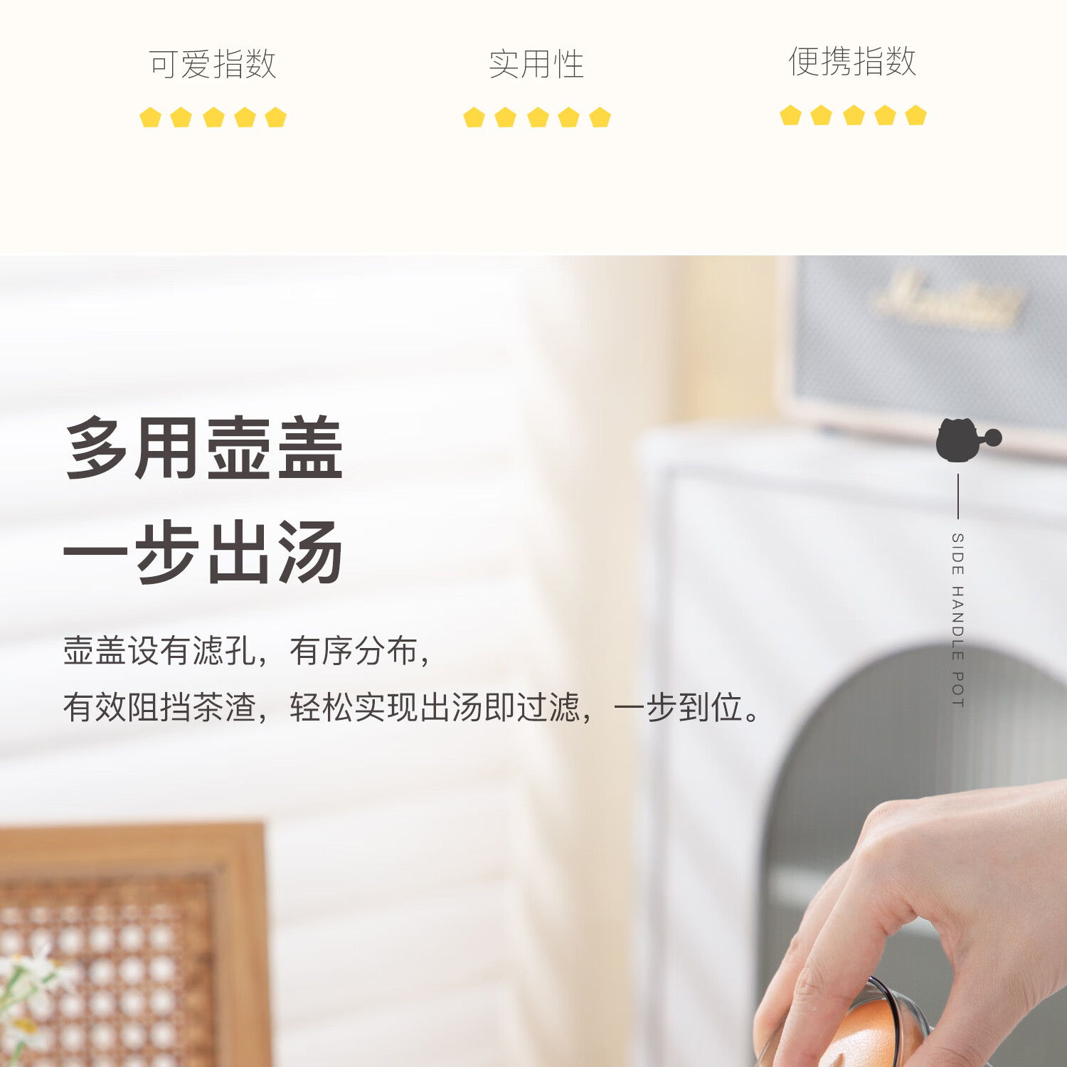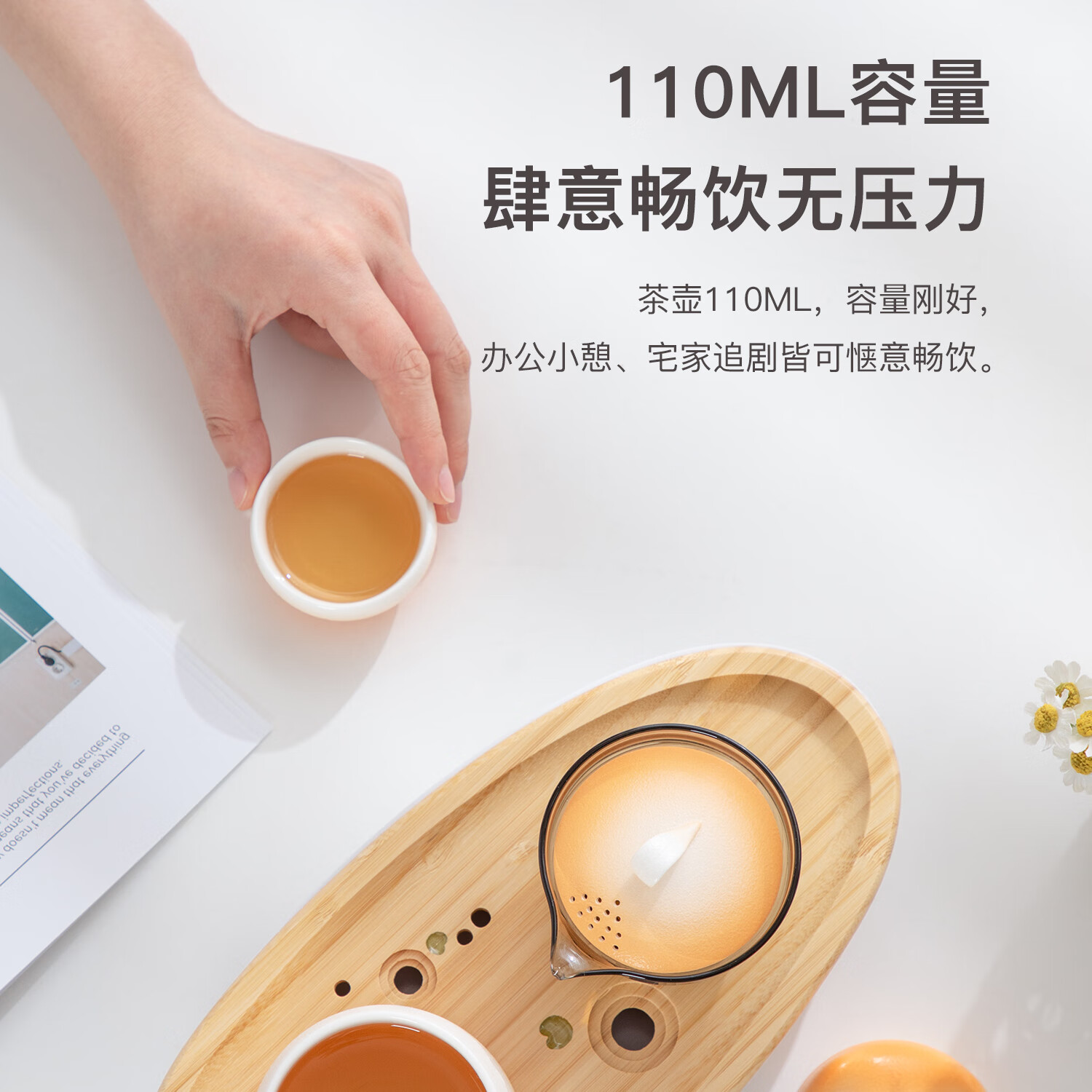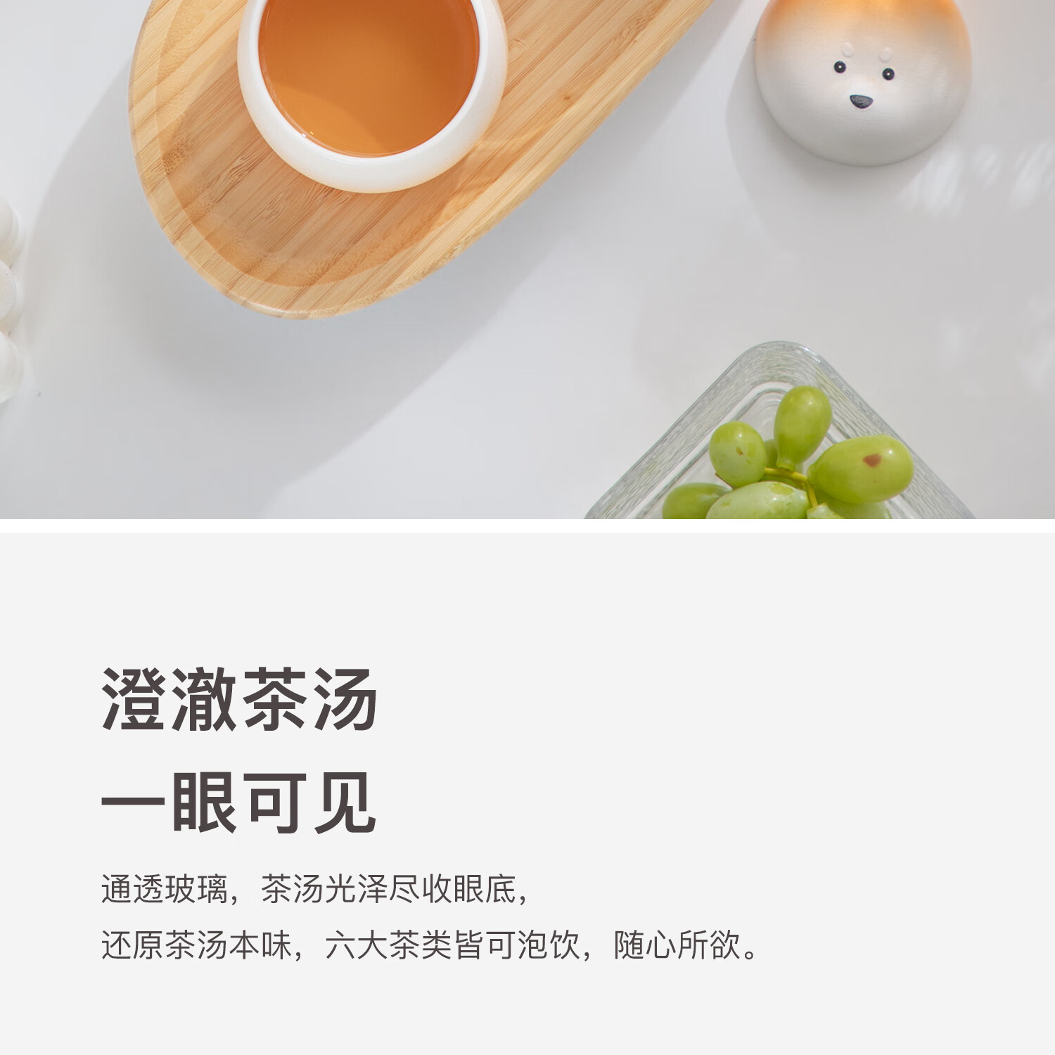 柴圆滚滚快客杯,嵌套式收纳设计小而周全的配置;茶壶110ML,容量刚好办公小憩、宅家追剧皆可惬意;通透玻璃,茶汤光泽尽收眼底还原茶汤本味,六大茶类皆
