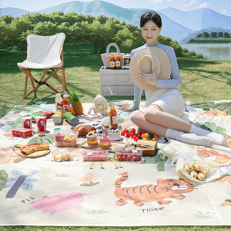 掌上野餐垫,轻巧便携,折叠方便;防潮防水,轻松打理;趣味图案,拍照更出片