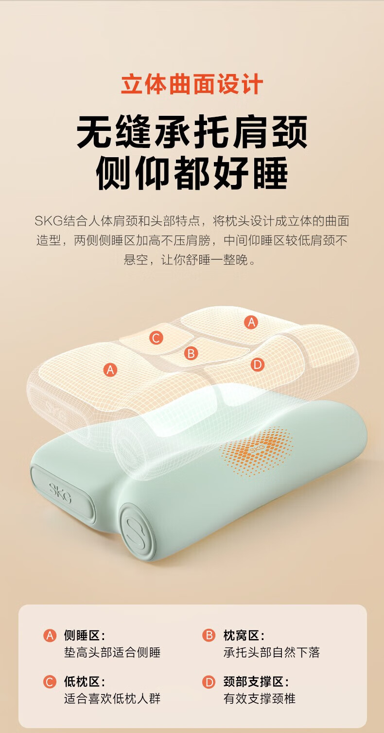 三层枕芯 舒适支撑都兼顾;巴斯夫记忆棉 柔软度四季如新;立体曲面设计 侧仰都好睡