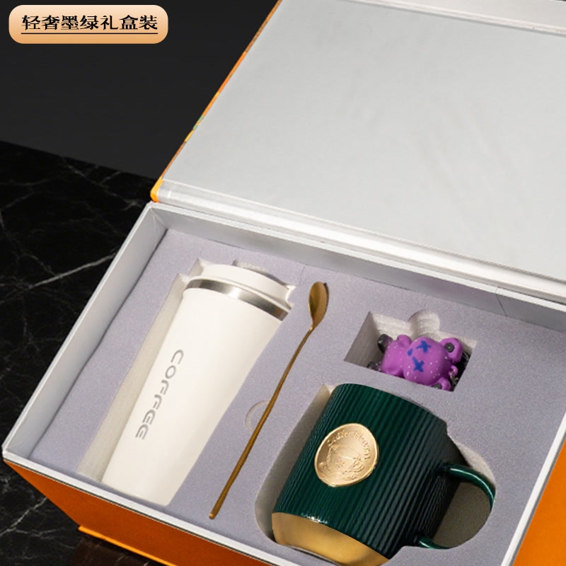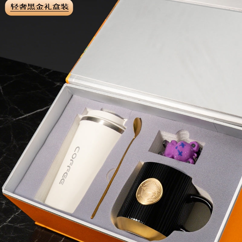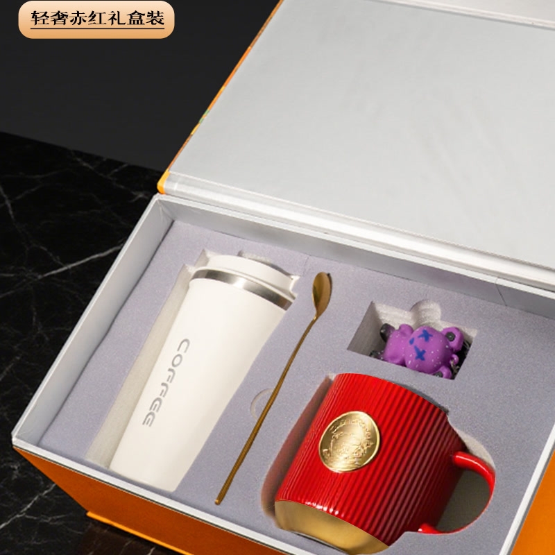 配置清单:礼盒*1 保温杯*1 咖啡杯*1 钥匙扣*1 勺子*1