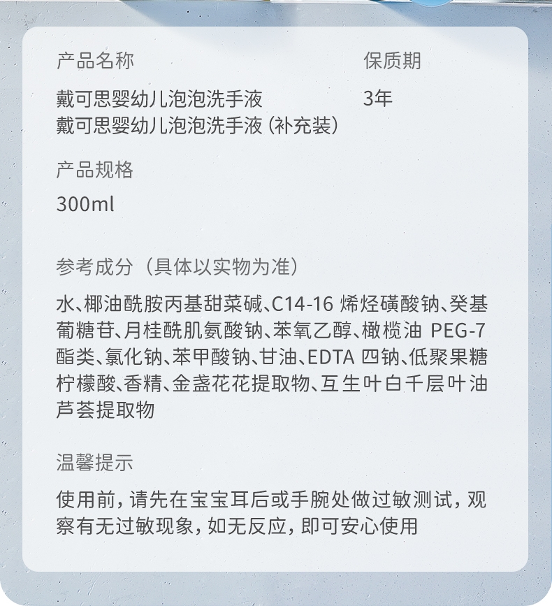 戴可思 婴幼儿泡泡洗手液300ml