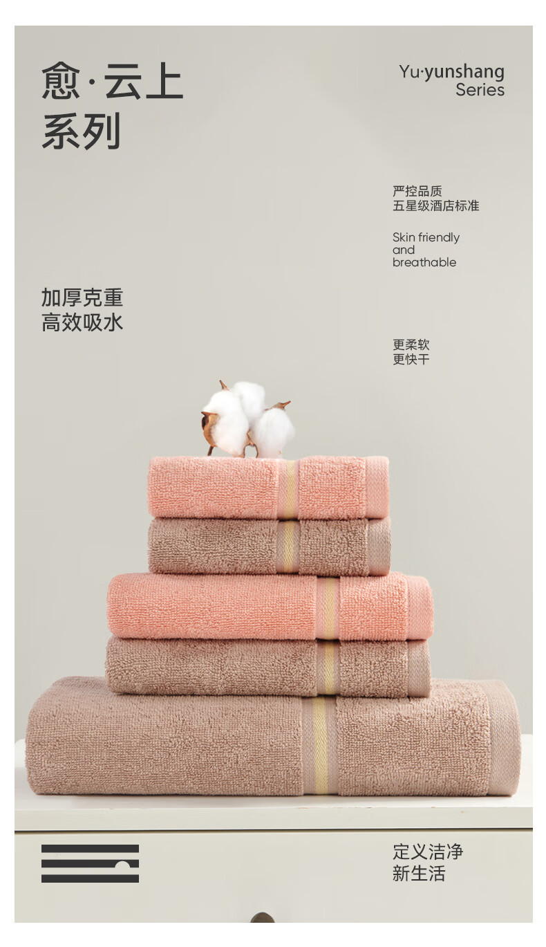 洁玉 沐韵棉柔毛浴巾五件套JD007-5D