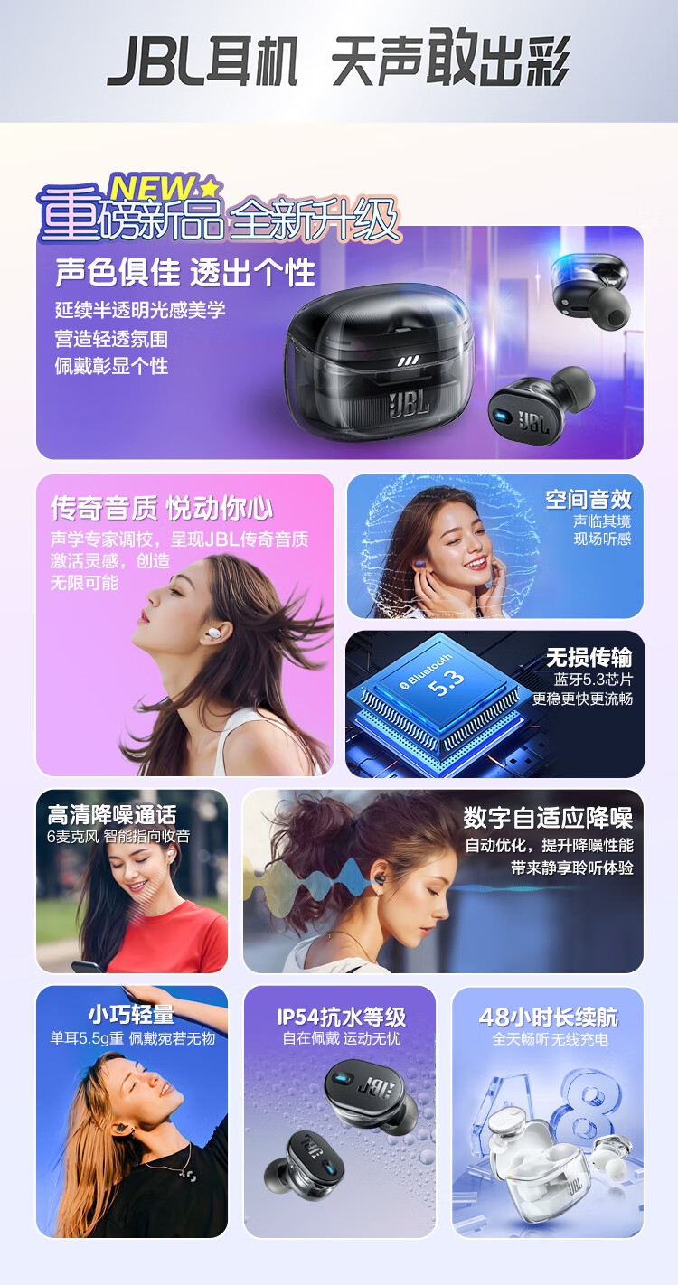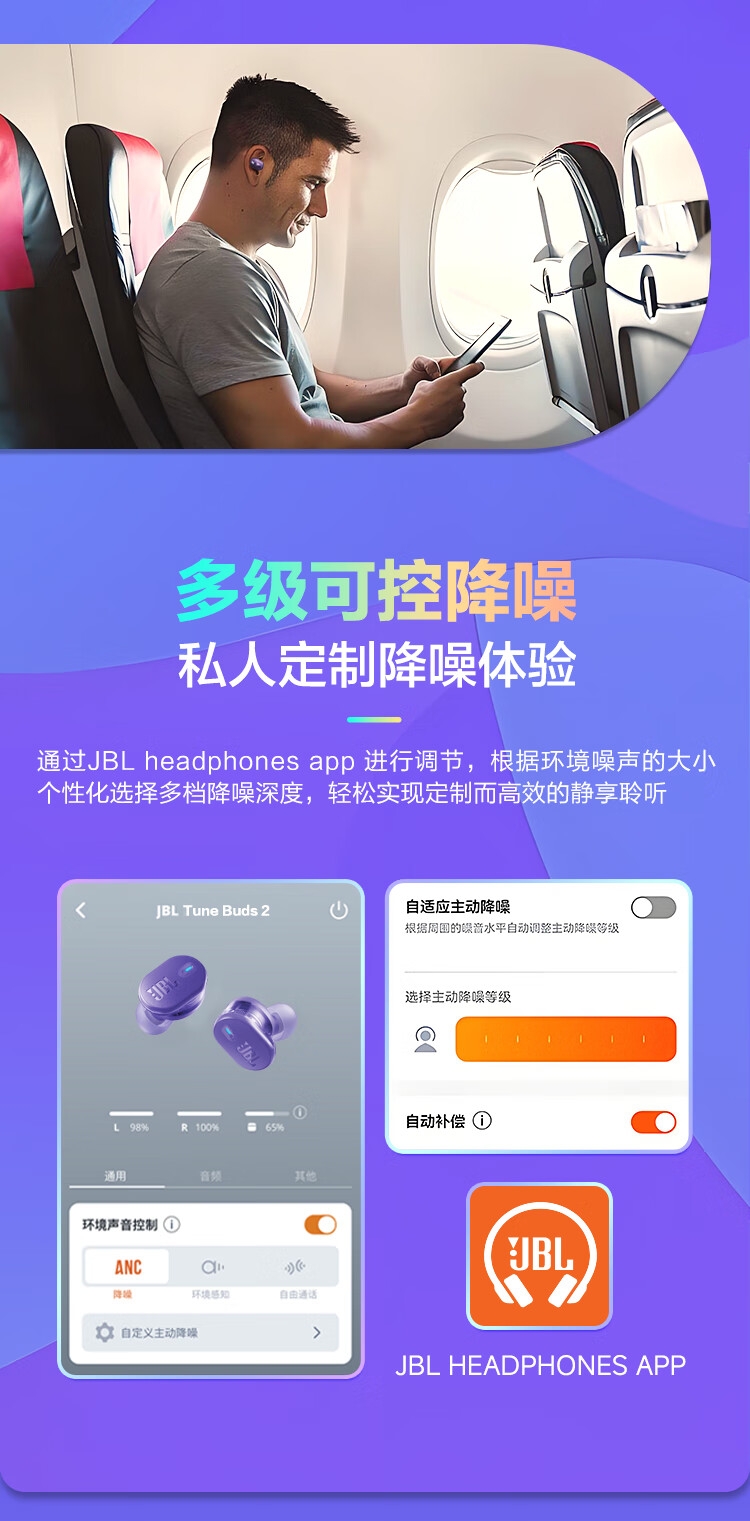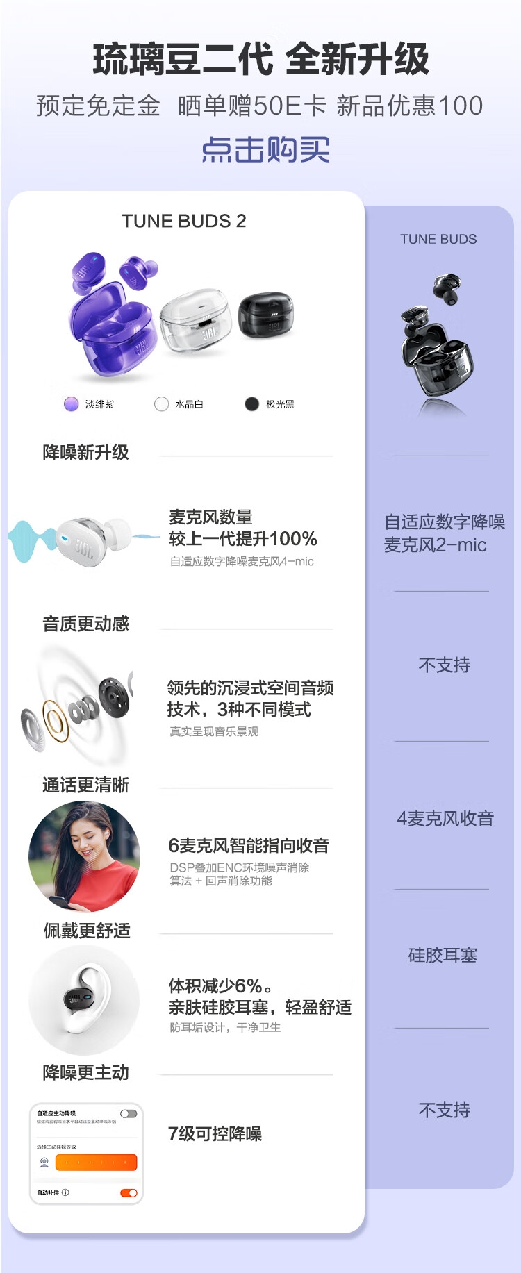 JBL 琉璃豆2代真无线降噪蓝牙耳机TUNEBUDS2