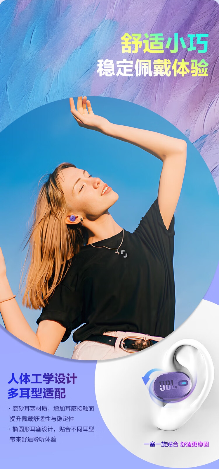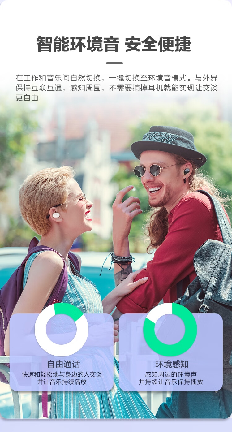 可同时连接2部音源设备;48小时强劲续航,小巧身材,能量充足;小巧轻量,宛若无物;简单手势操控,只需轻轻一触