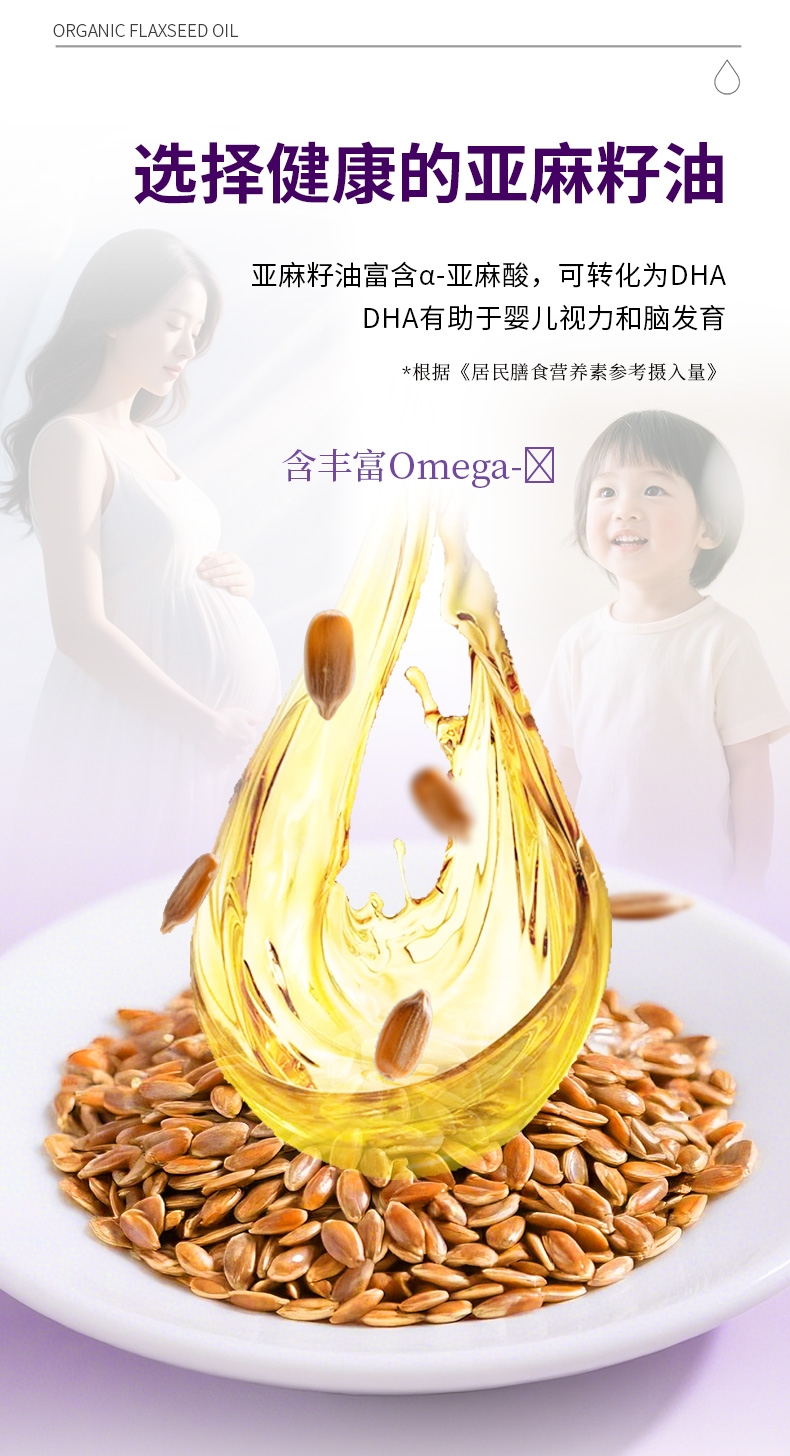 亚油酸、亚麻酸比例,接近黄金比例营养吸收再升级!;黄金产区与有机品质的双重保障;低温物理压榨