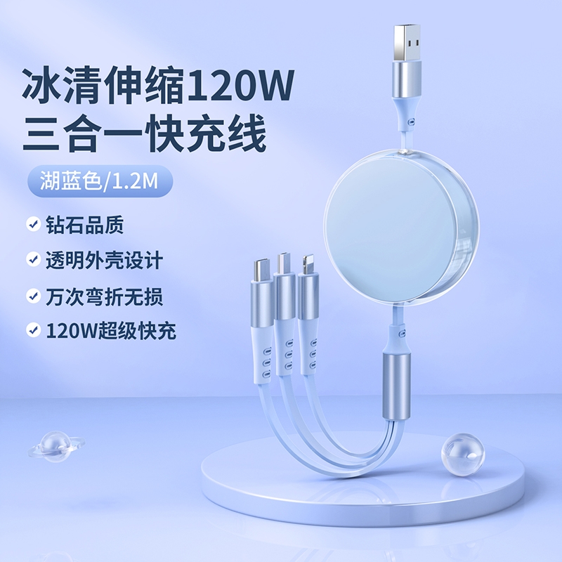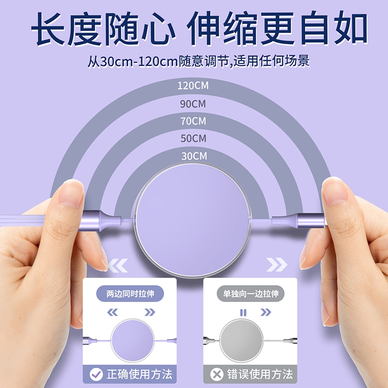 120W超级快充;五档伸缩 一秒收纳;高弹TPE线材,舒适更耐用
