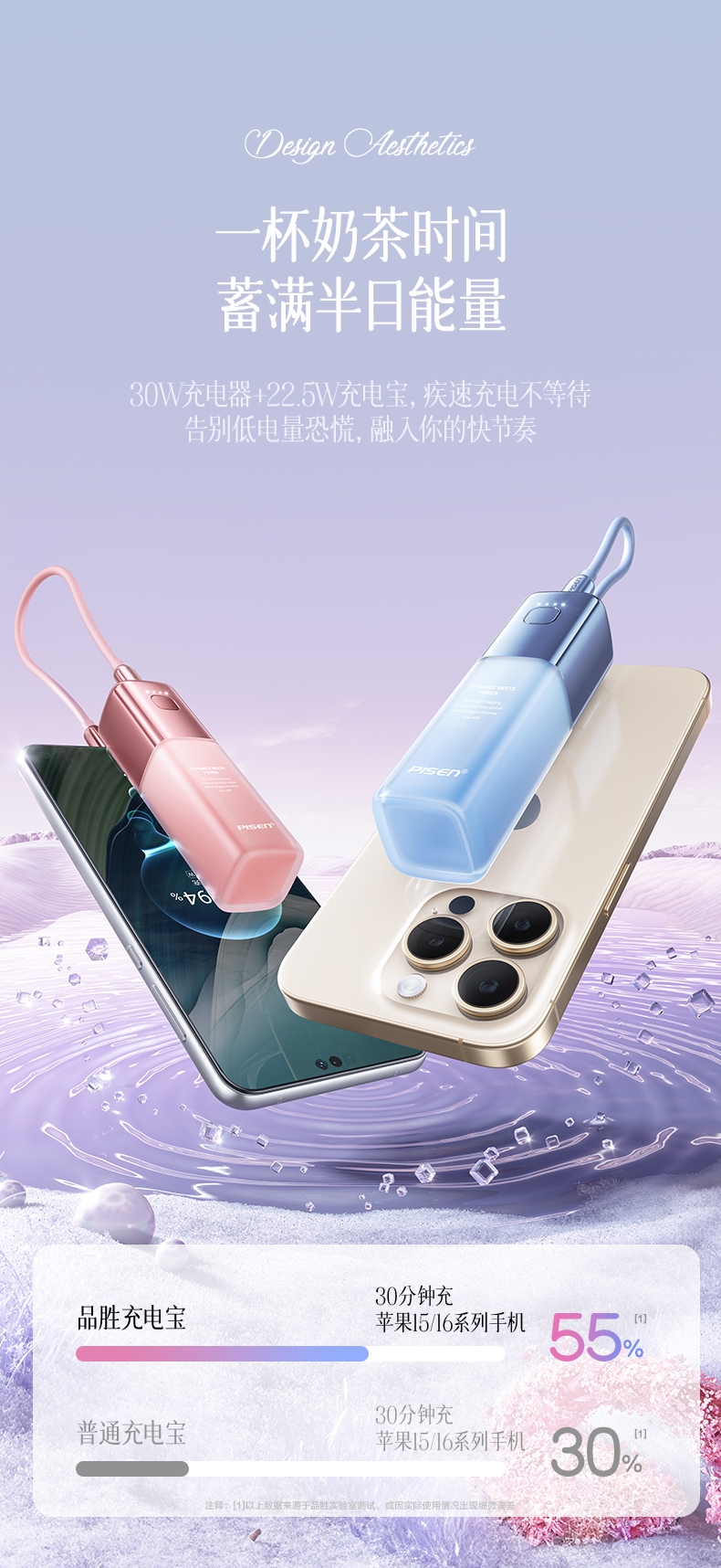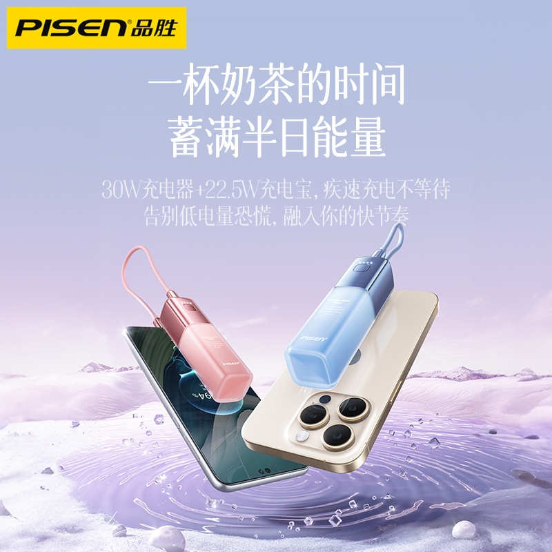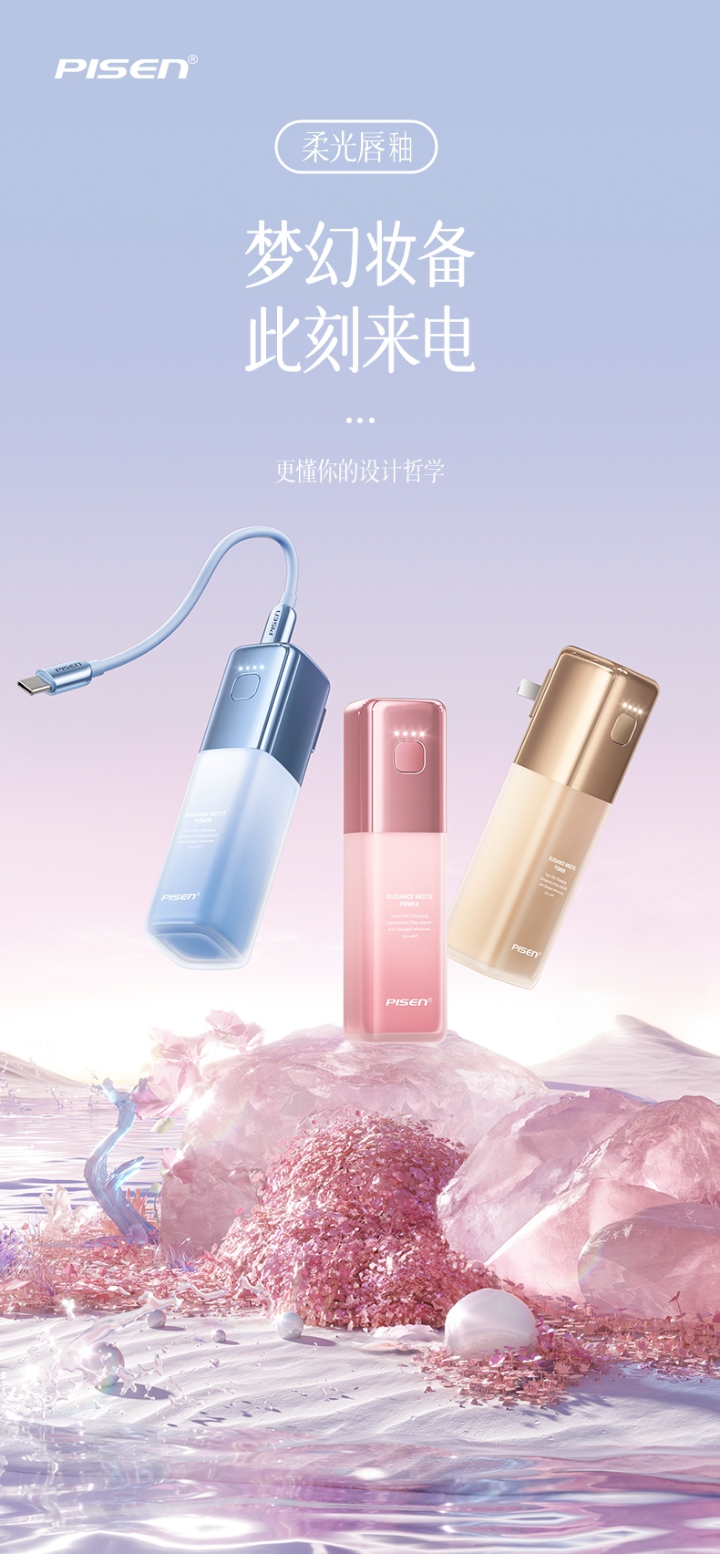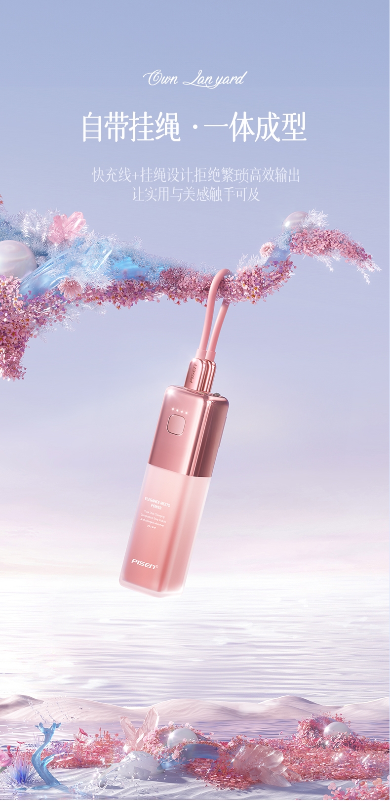 充电器+充电宝+自带线多功能合一,一机双用;柔雾渐染,炫彩时尚;折叠插脚,收纳更方便
