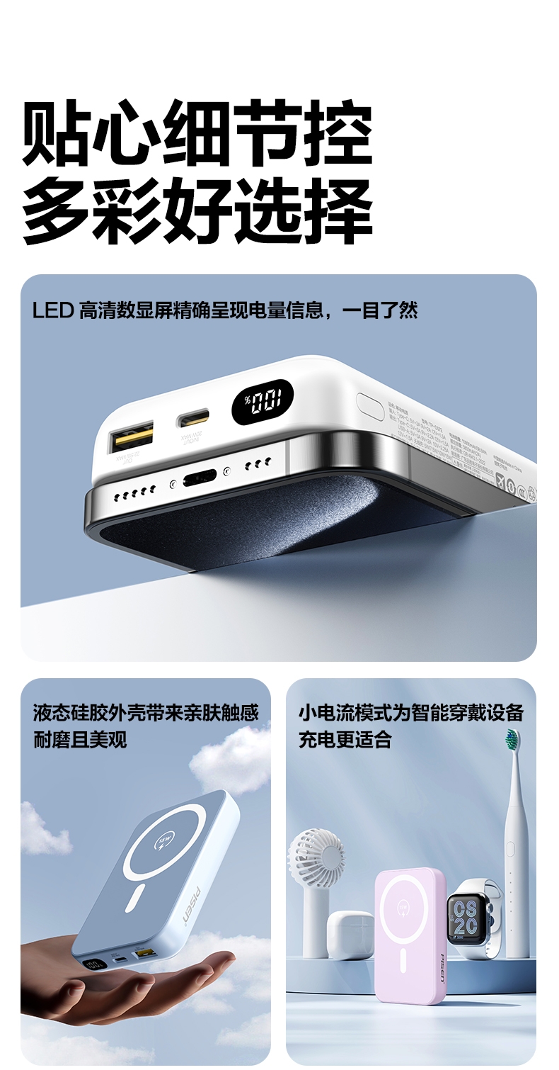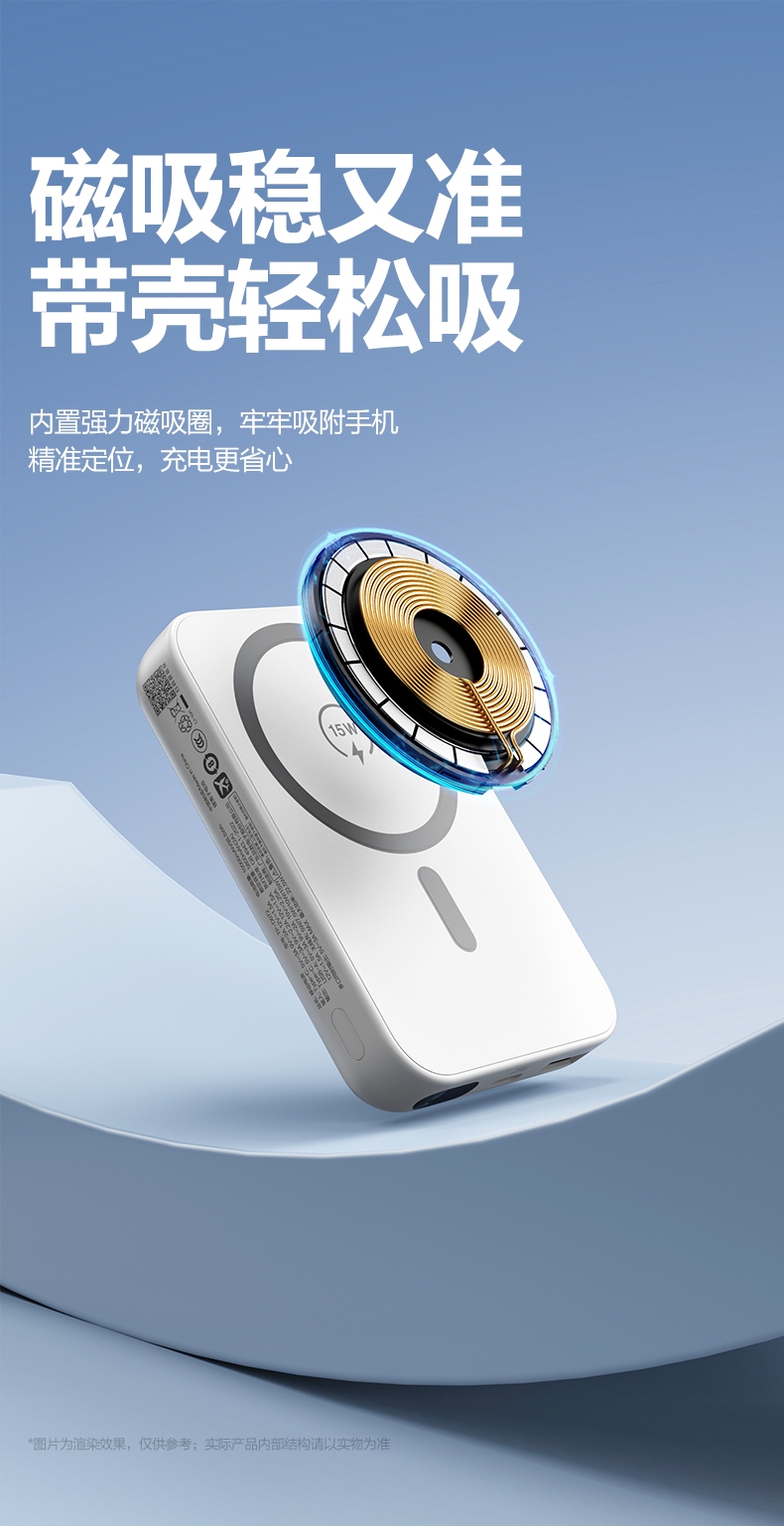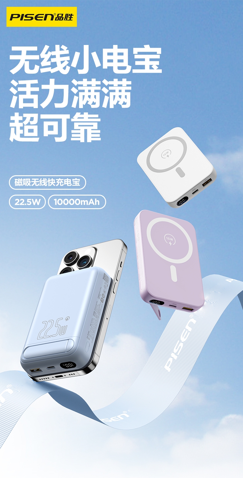 无线磁吸,超强磁吸不脱落,自动精准配对;支持LED屏显,实时显示剩余电量,随心掌控;折叠支架设计,横竖皆可,畅享解放双手;支持多协议快充,最高支持22.5W快充,安全快速;10000mAh高密度聚合物电芯,足额实标