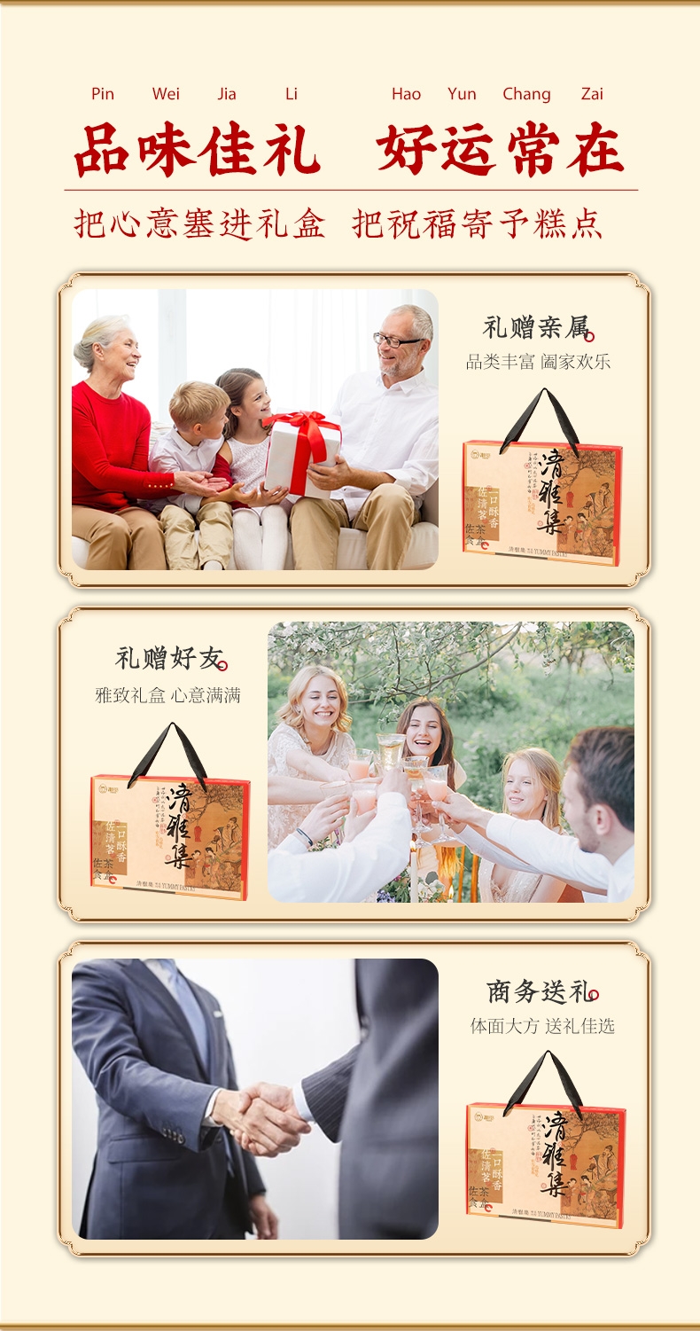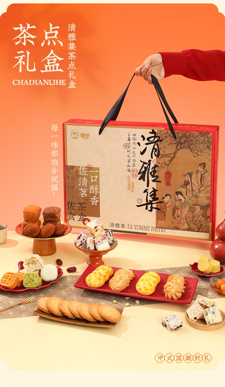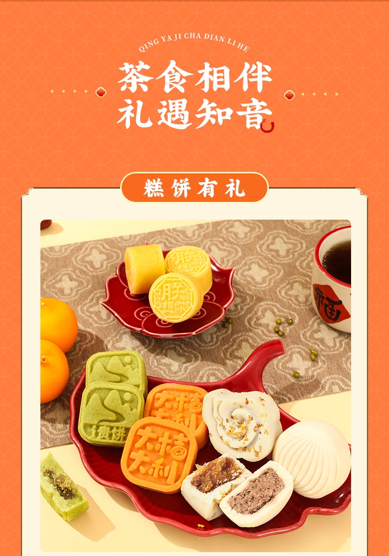 超丰盛茶点礼盒,多样搭配,畅享清雅惬意时光;中式糕点与新派派点心,传统点心与现代点心的组合;超大分量茶点礼盒,精致包装,送礼尽显高雅格调