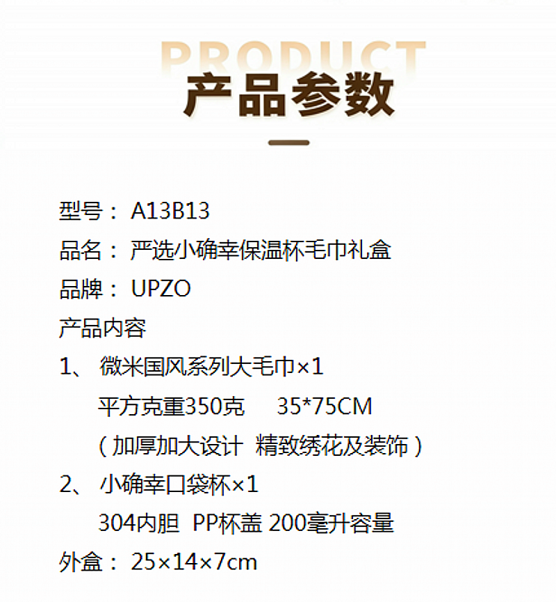 配置清单:小确幸保温杯*1、微米国风毛巾*1