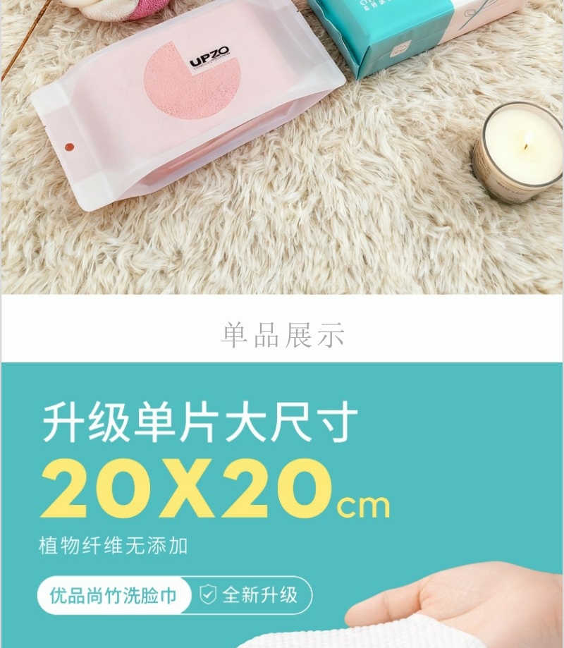洗脸巾:60抽 平方克重70克 20*20CM每张