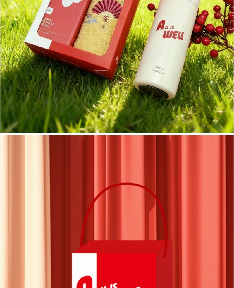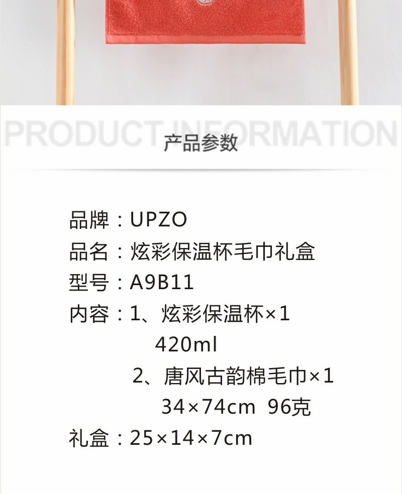 420毫升高颜值保温杯 304内胆 精美设计文案;唐风古韵系列毛巾 精选精梳棉材质 结合国风刺绣主题;手提盒设计 顺遂主题融入 优质伴手礼
