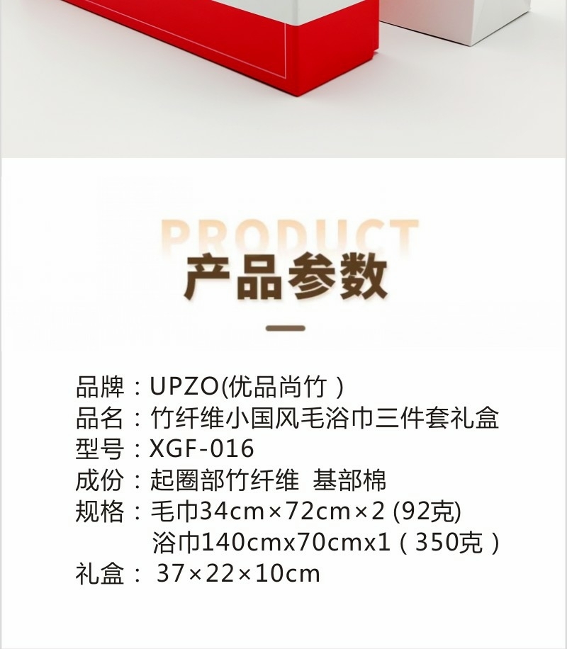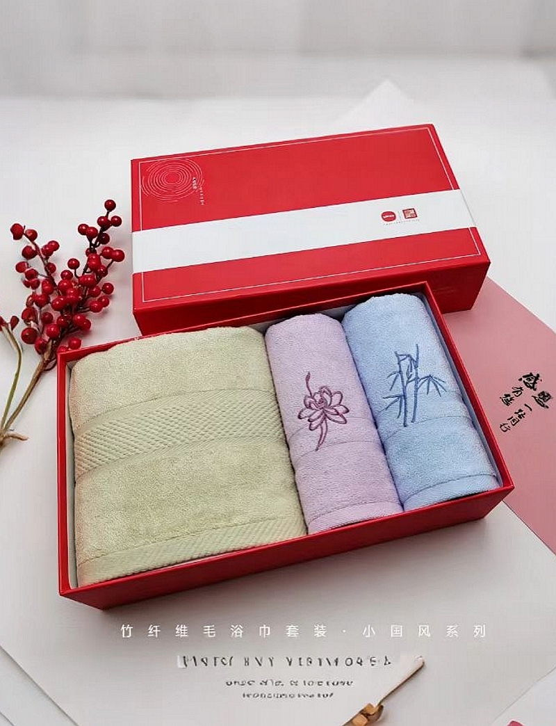 优品尚竹 竹纤维小国风毛浴巾三件套礼盒XGF-016