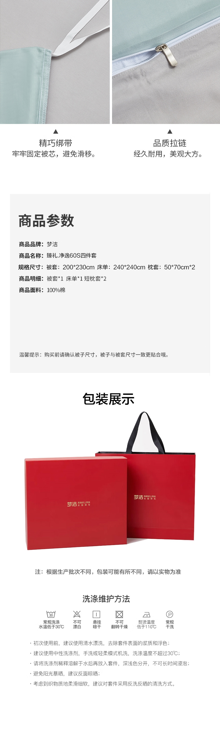 梦洁家纺 60S长绒棉四件套臻礼净逸1010189107AX