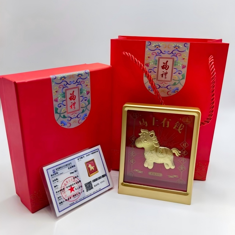 马年已至,祥瑞满溢。在这充满希望与活力的年份里;我们都渴望一份独特的象征;能为我们的生活、事业和财富带来满满的好运。;这款“马上有钱”含金摆件,正是马年里为您量身定制的