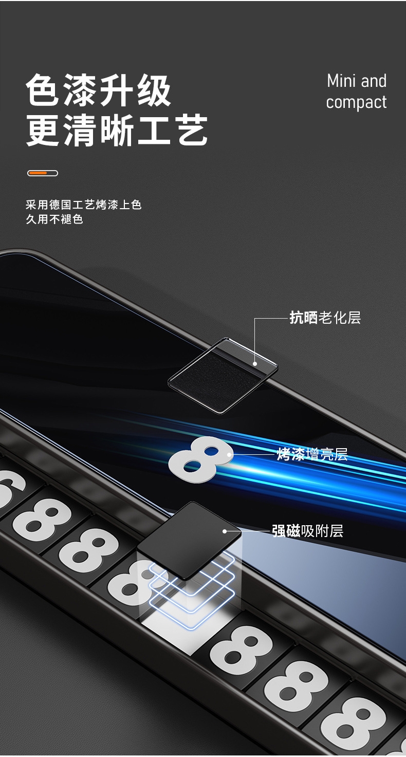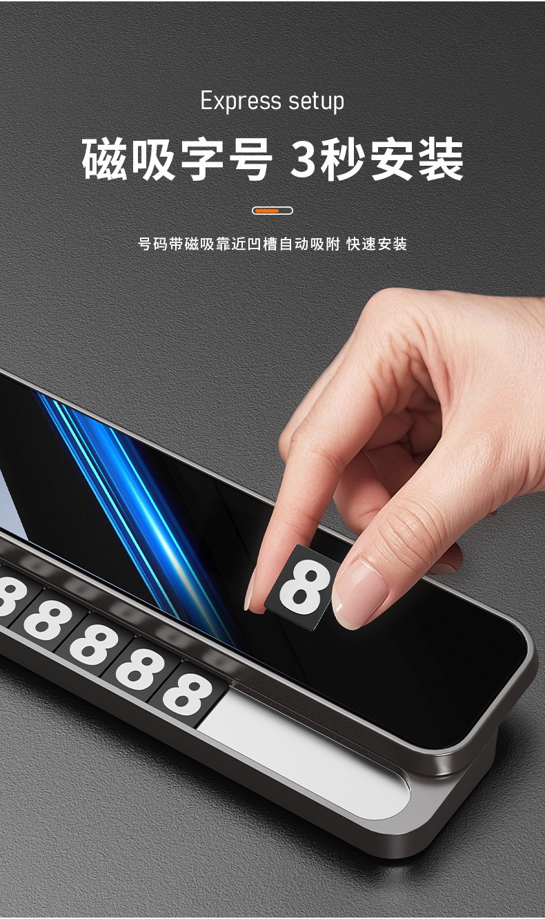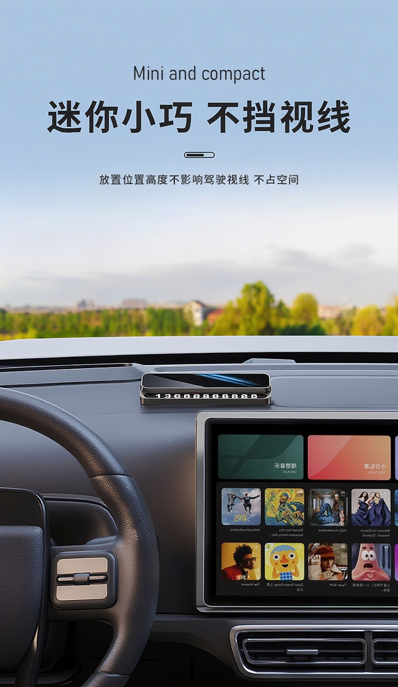迷你小巧 不挡视线;软磁性号码贴 易吸附不易掉落 ;可隐藏号码安全可靠 简约时尚