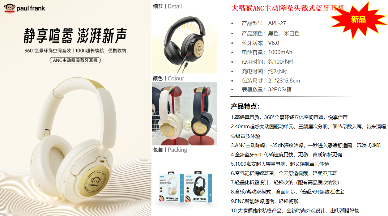 大嘴猴 ANC主动降噪头戴式蓝牙耳机