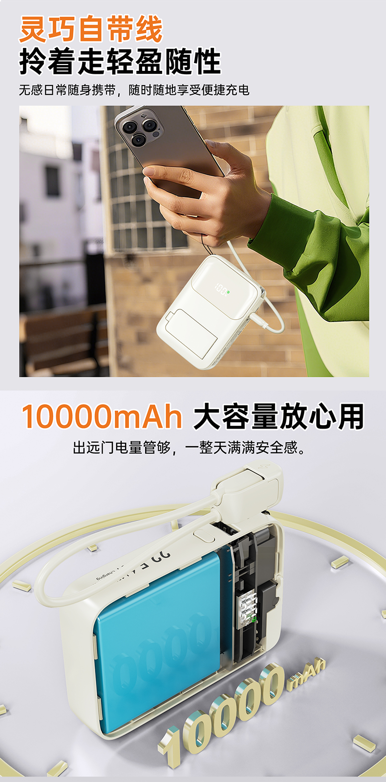 功能:多U口输出,磁吸充电,自带数据线