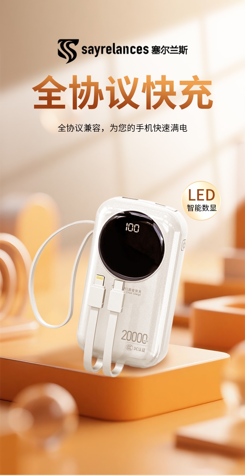 塞尔兰斯 20000毫安自带线移动电源Y399