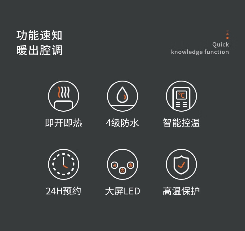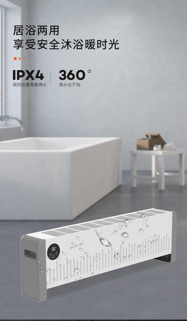 高效全屋取暖;智能遥控与温控;居浴两用与安全防护