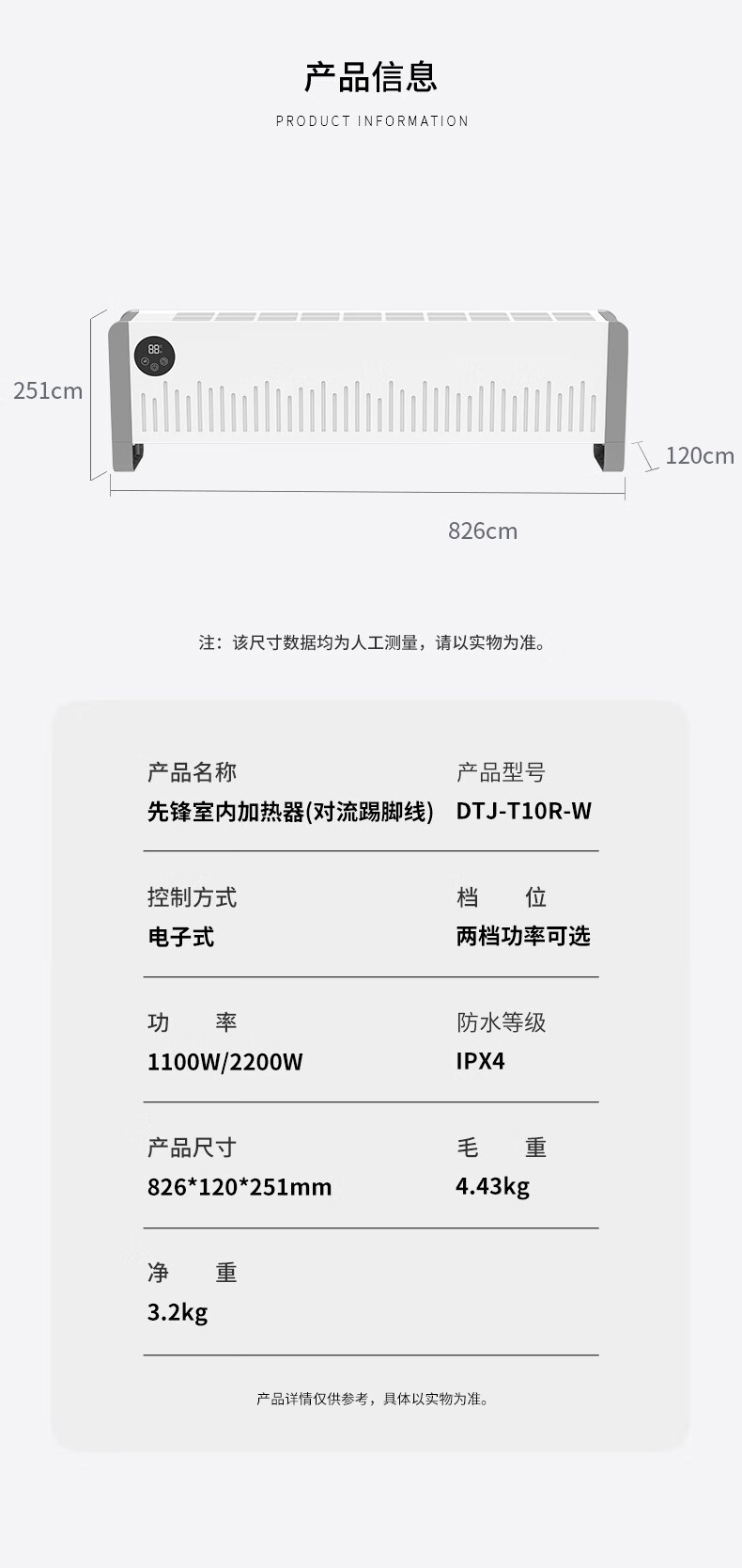 先锋 室内加热器遥控对流式踢脚线DTJ-T10R-W