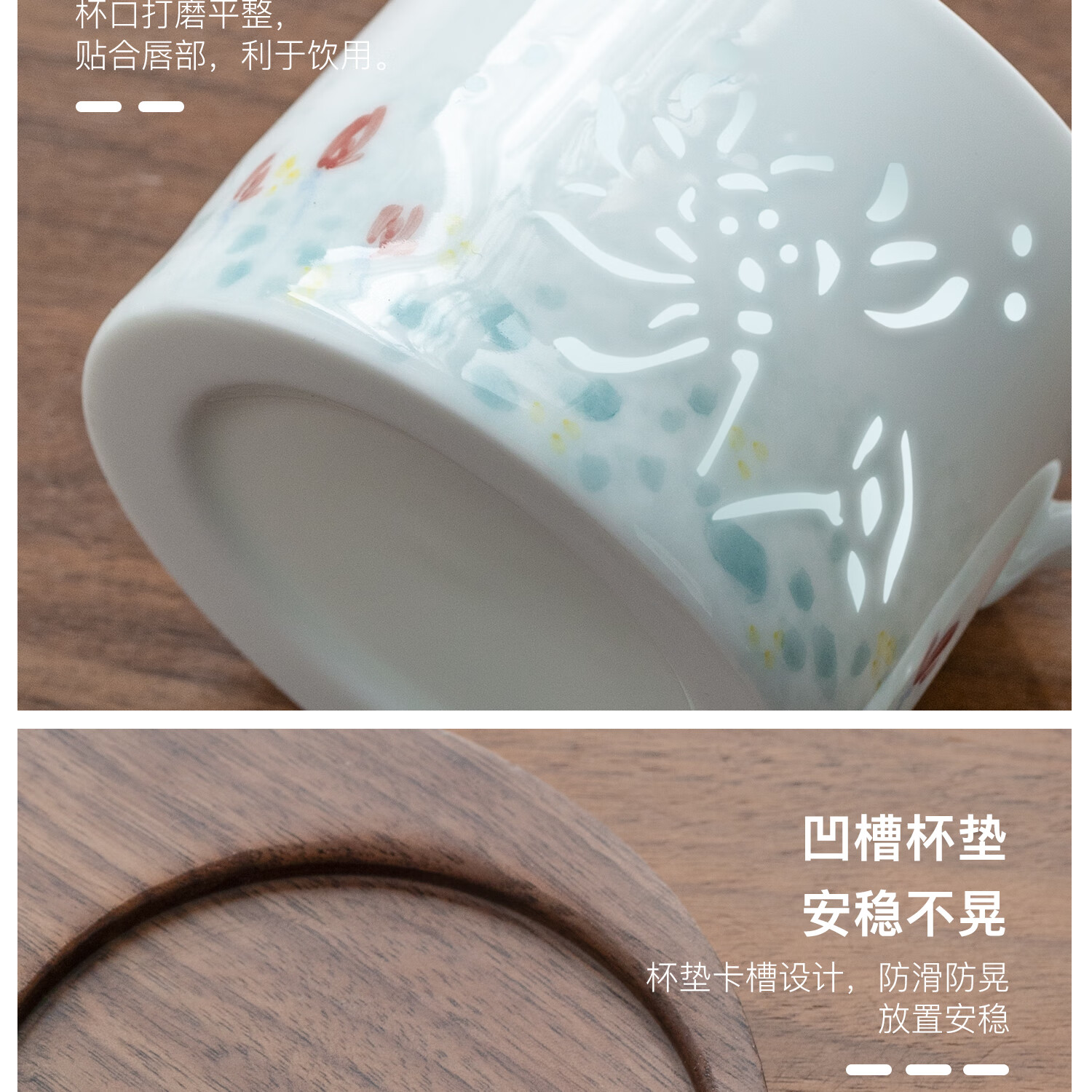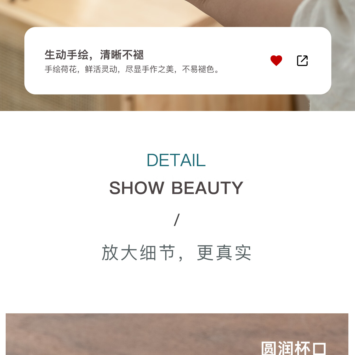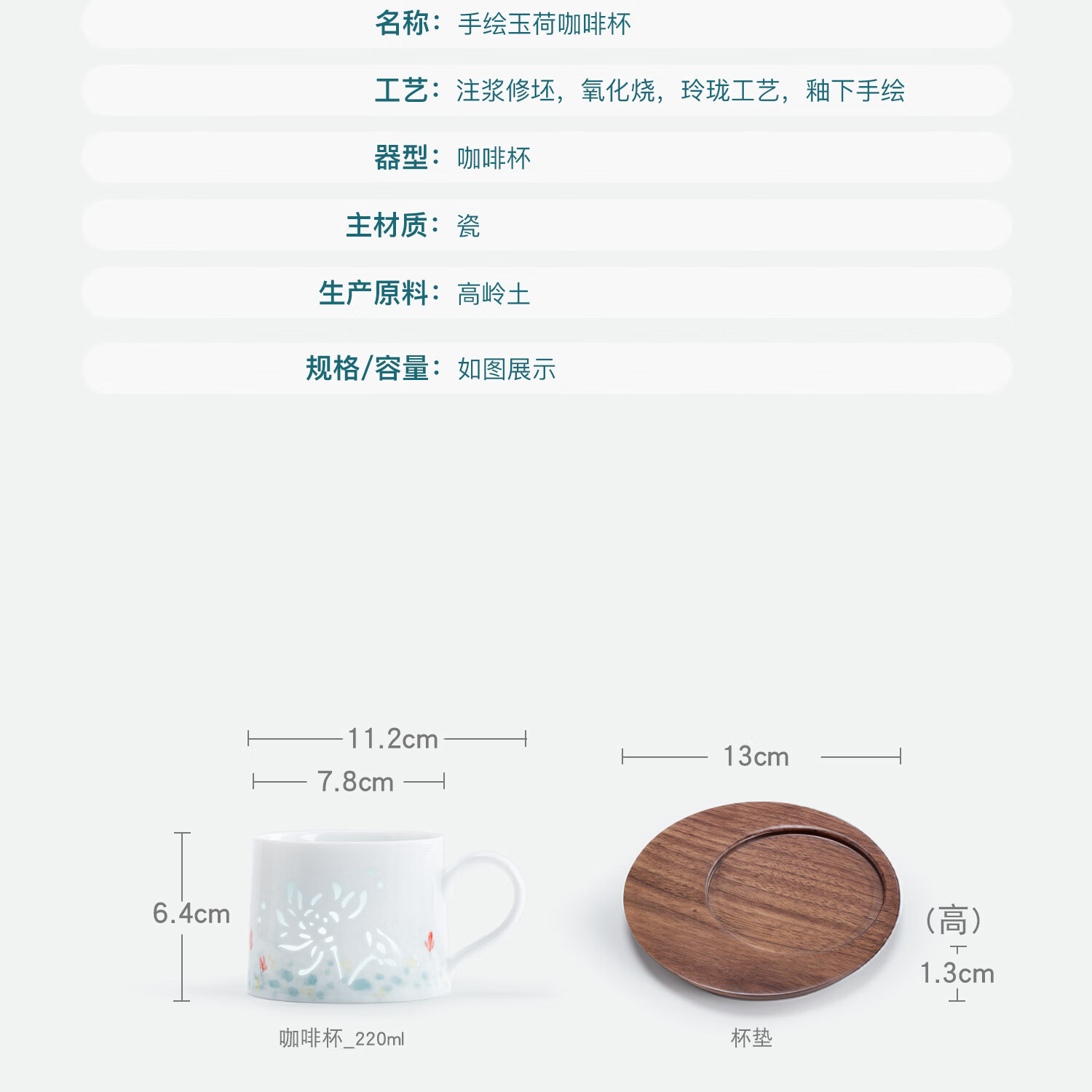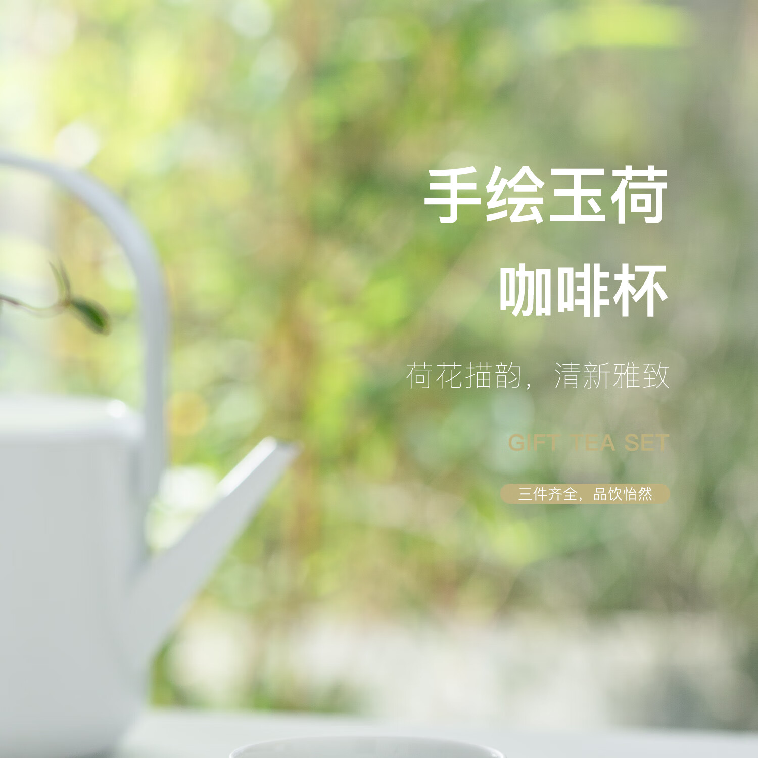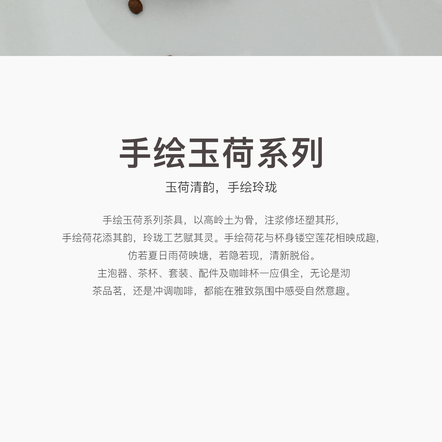 荷花描韵,清新雅致;一咖多享,杯藏万味 ;一套齐备,静享香醇;手绘荷花添其韵,玲珑工艺赋其灵