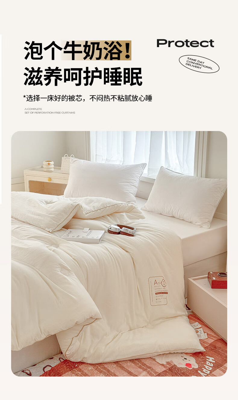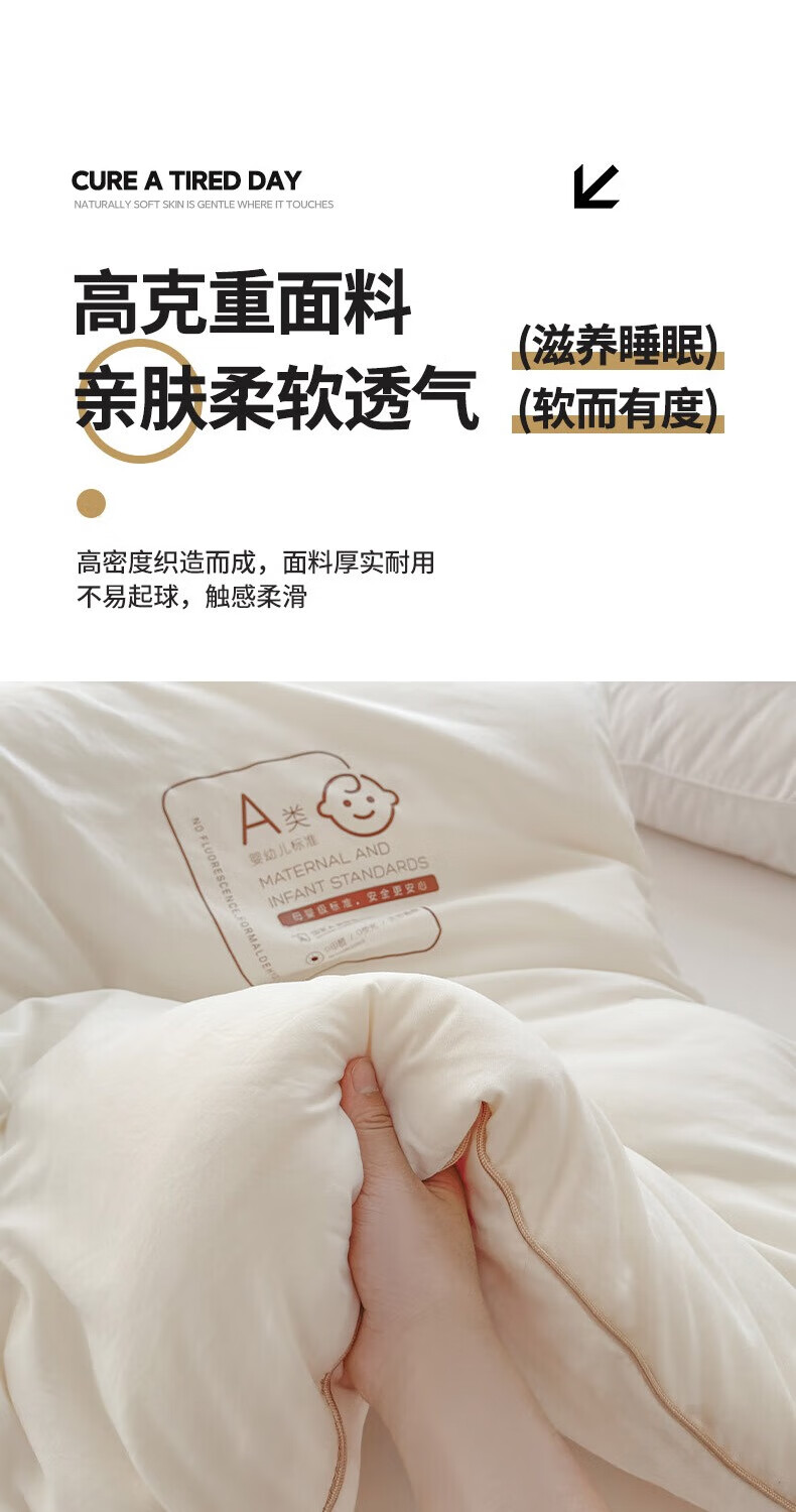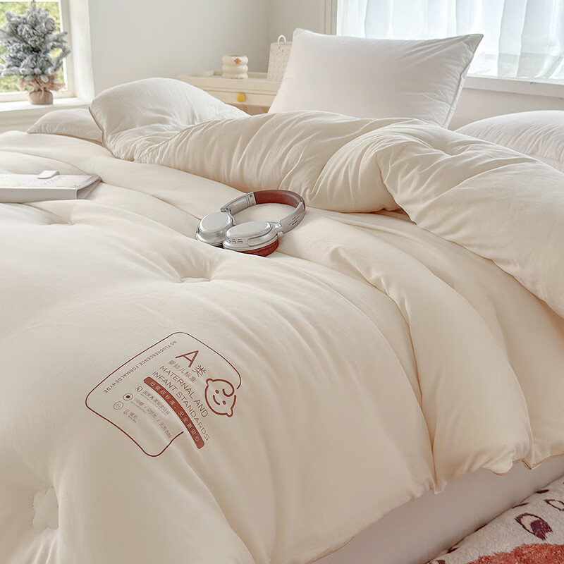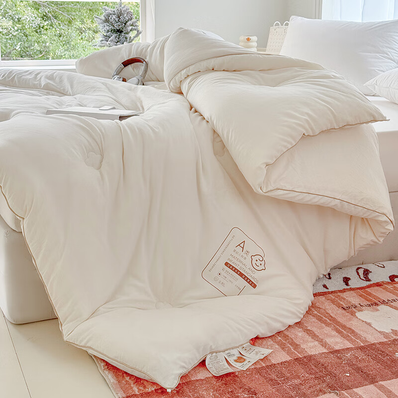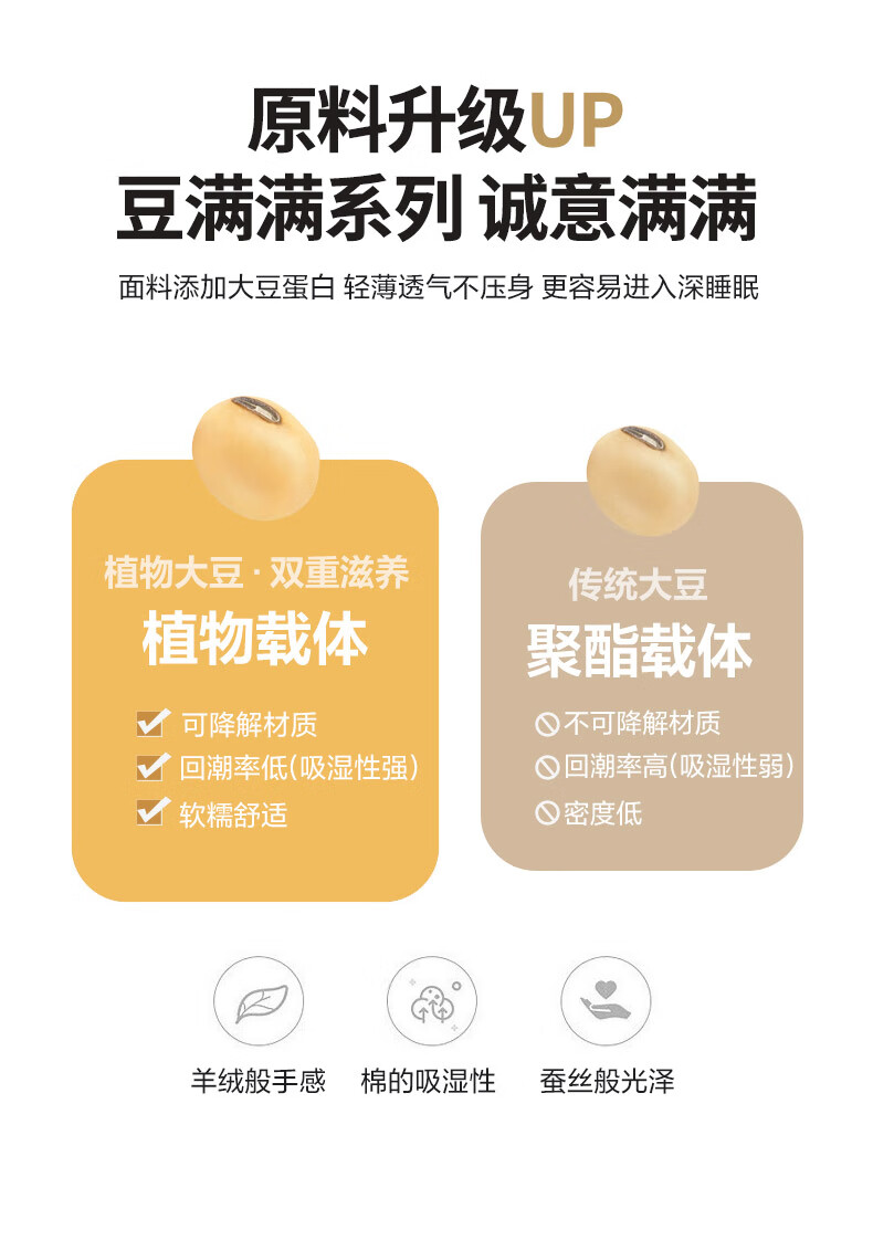 软糯治愈滋养大豆被,暖暖的像冬日太阳;纤维整张填充,牛奶般温润,透气不闷热;高克重面料,不易起球,亲肤柔软