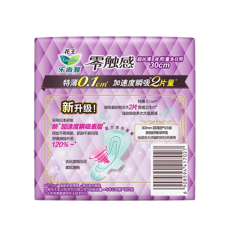 肌肤更舒爽;加速度舜吸;无护翼采用特薄0.1cm吸收层