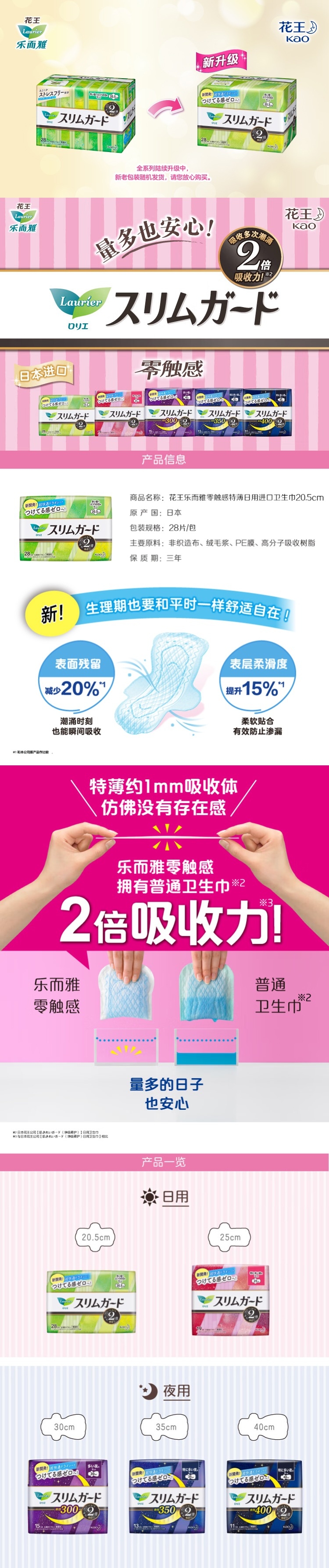柔软贴合有效防止渗漏;2倍吸收力;瞬间吸收