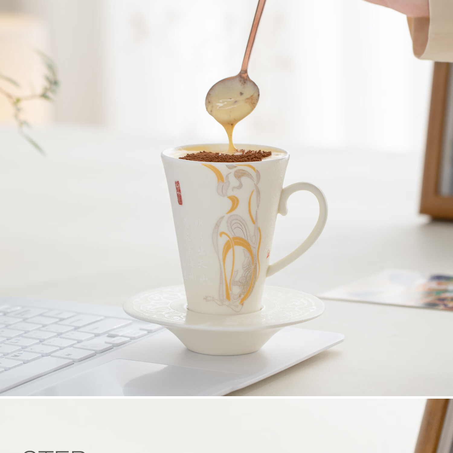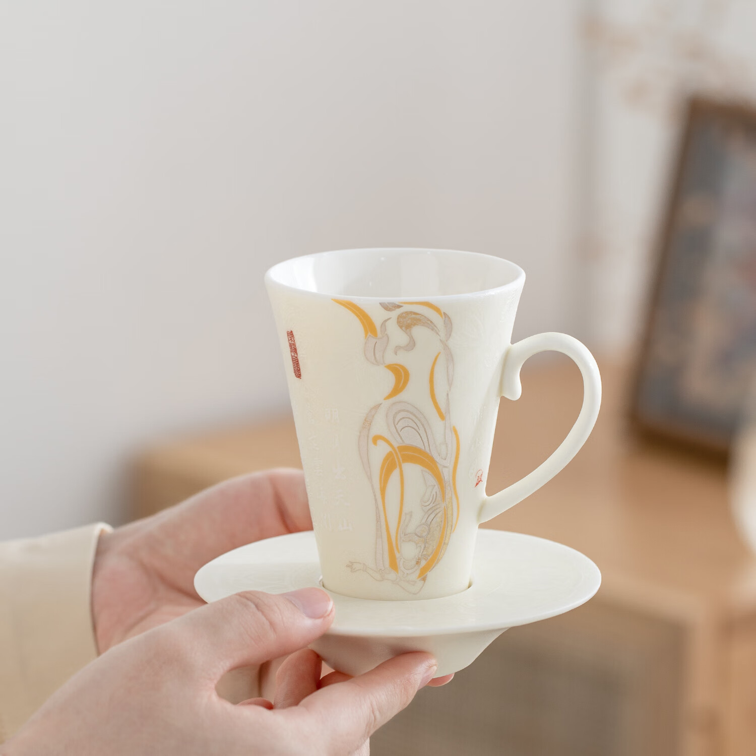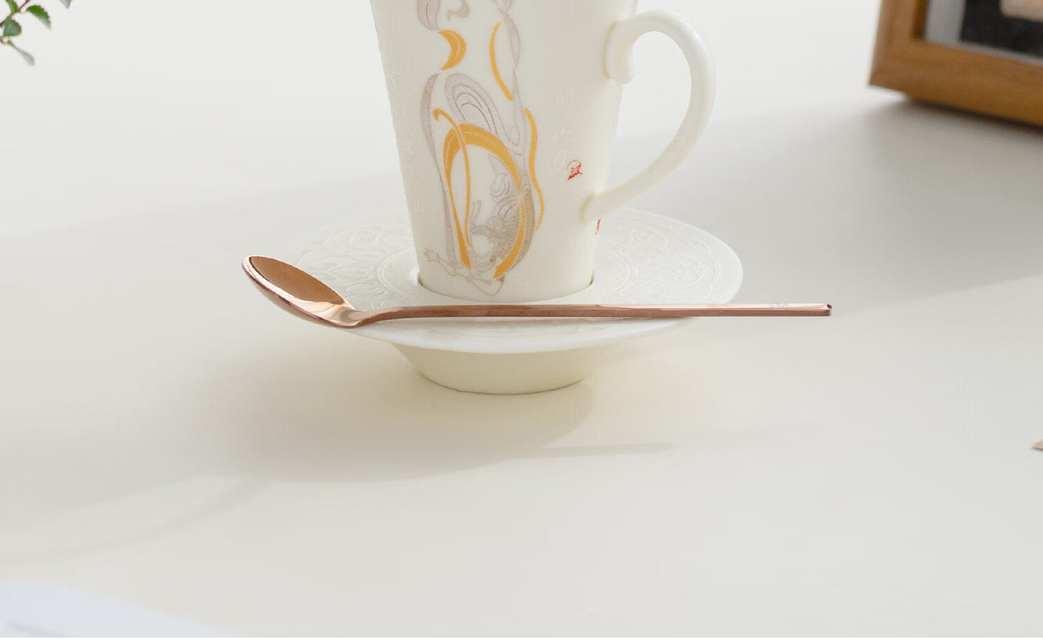 杯身高挑,品饮优雅;成套搭配一杯一垫,仪式感足;缘起敦煌,梦回千年
