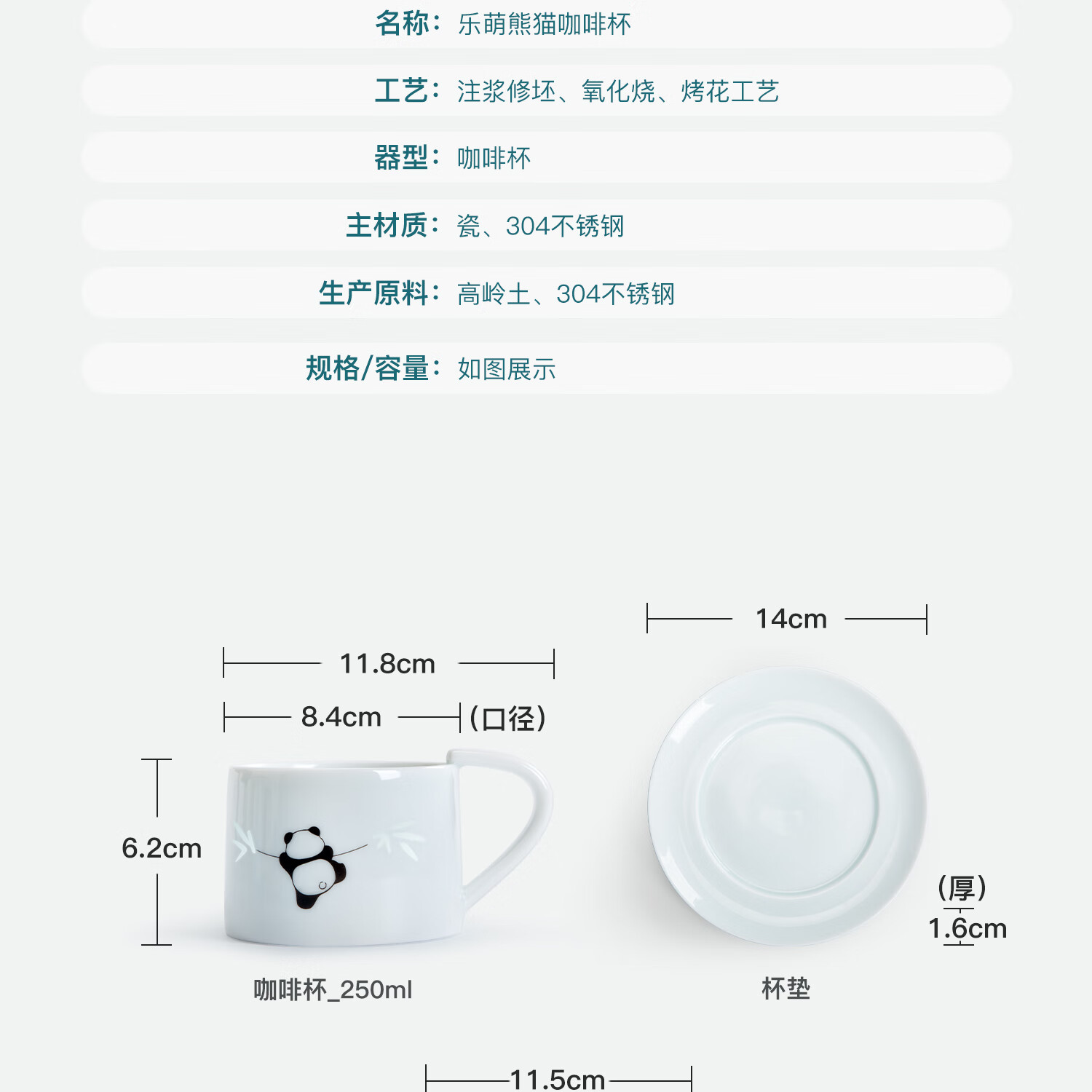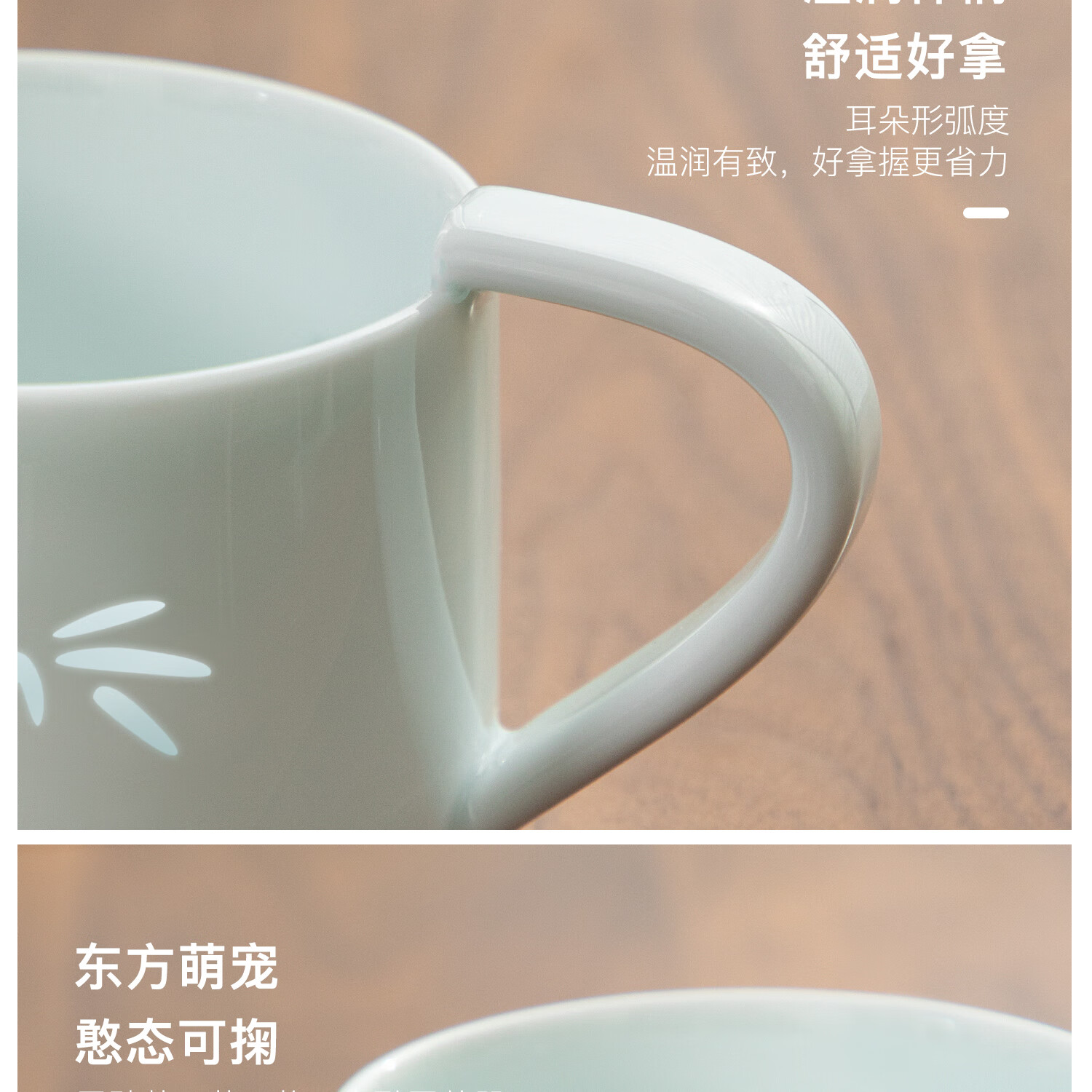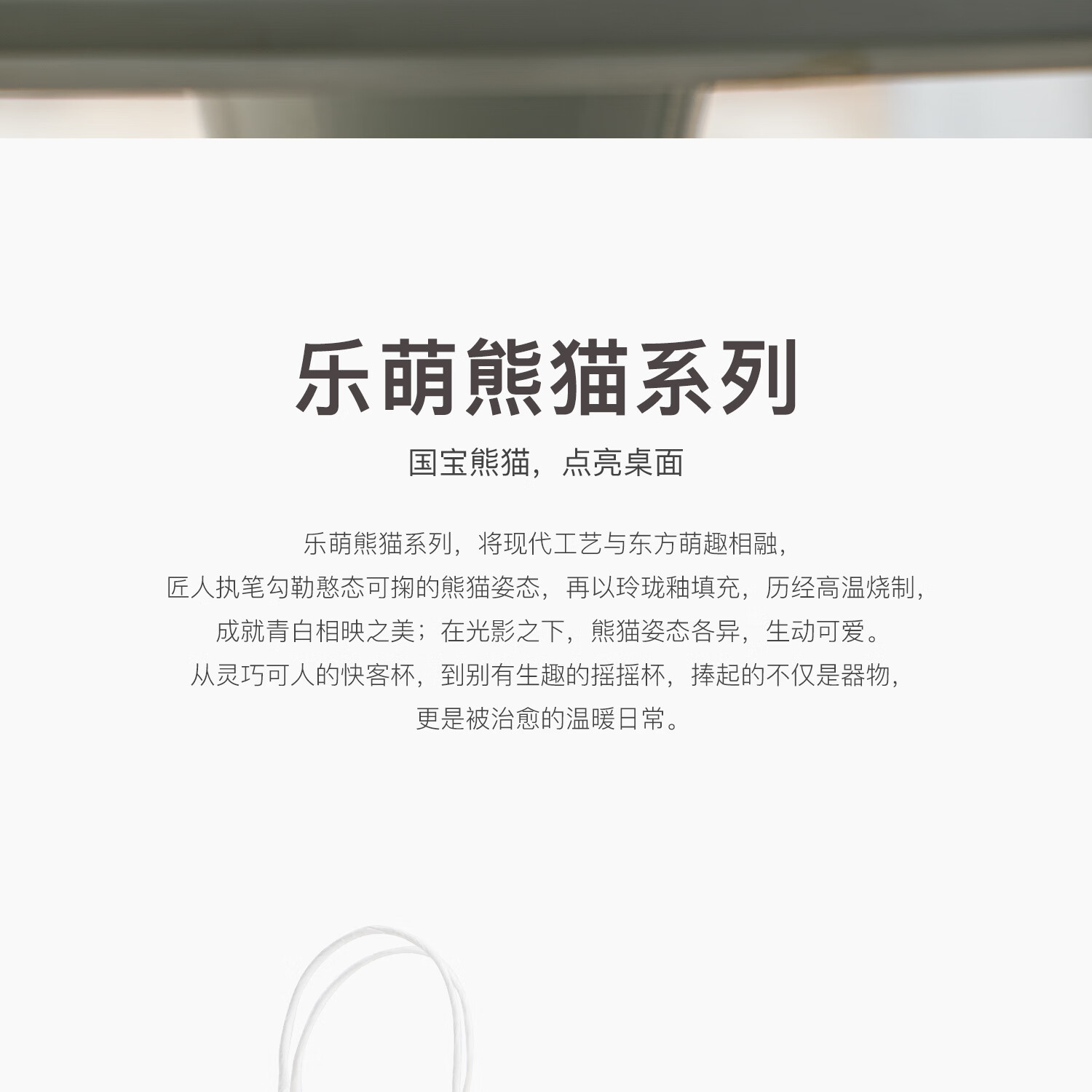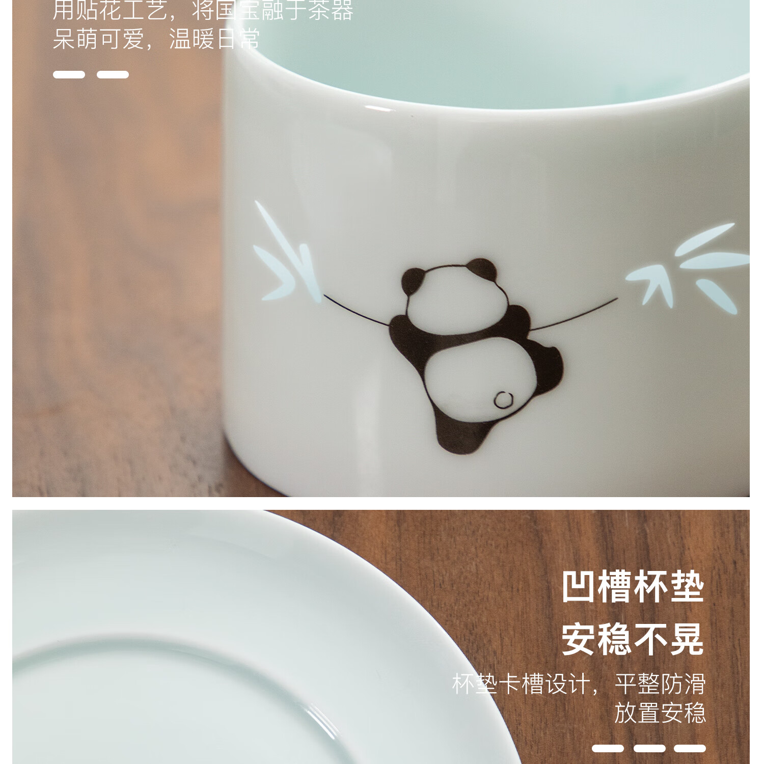 色泽莹润,迎光透亮;国宝熊猫,点亮桌面;耳朵杯柄,符合人体工学设计,端放省力,好看实用。