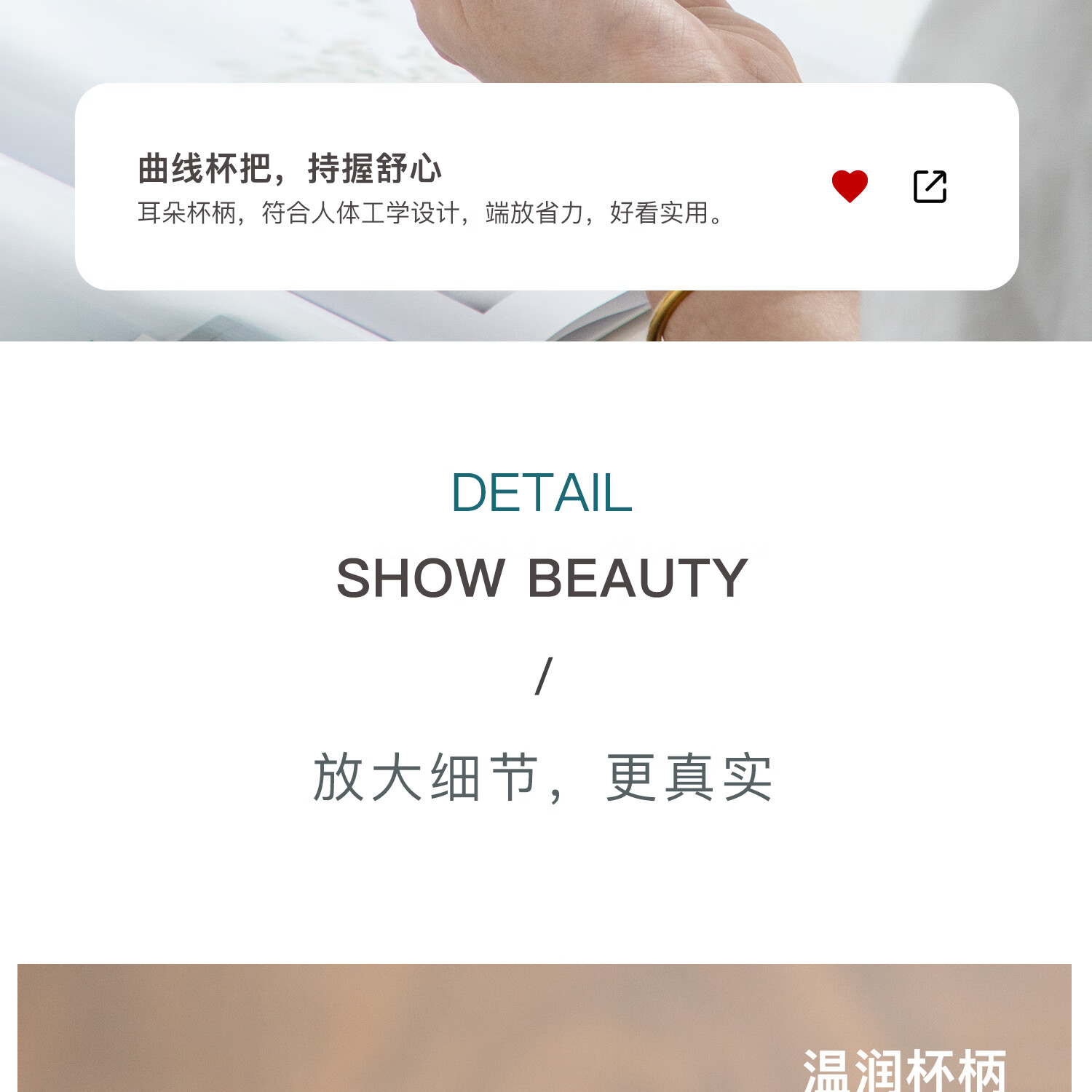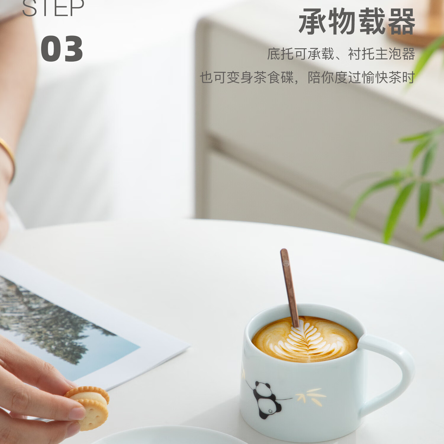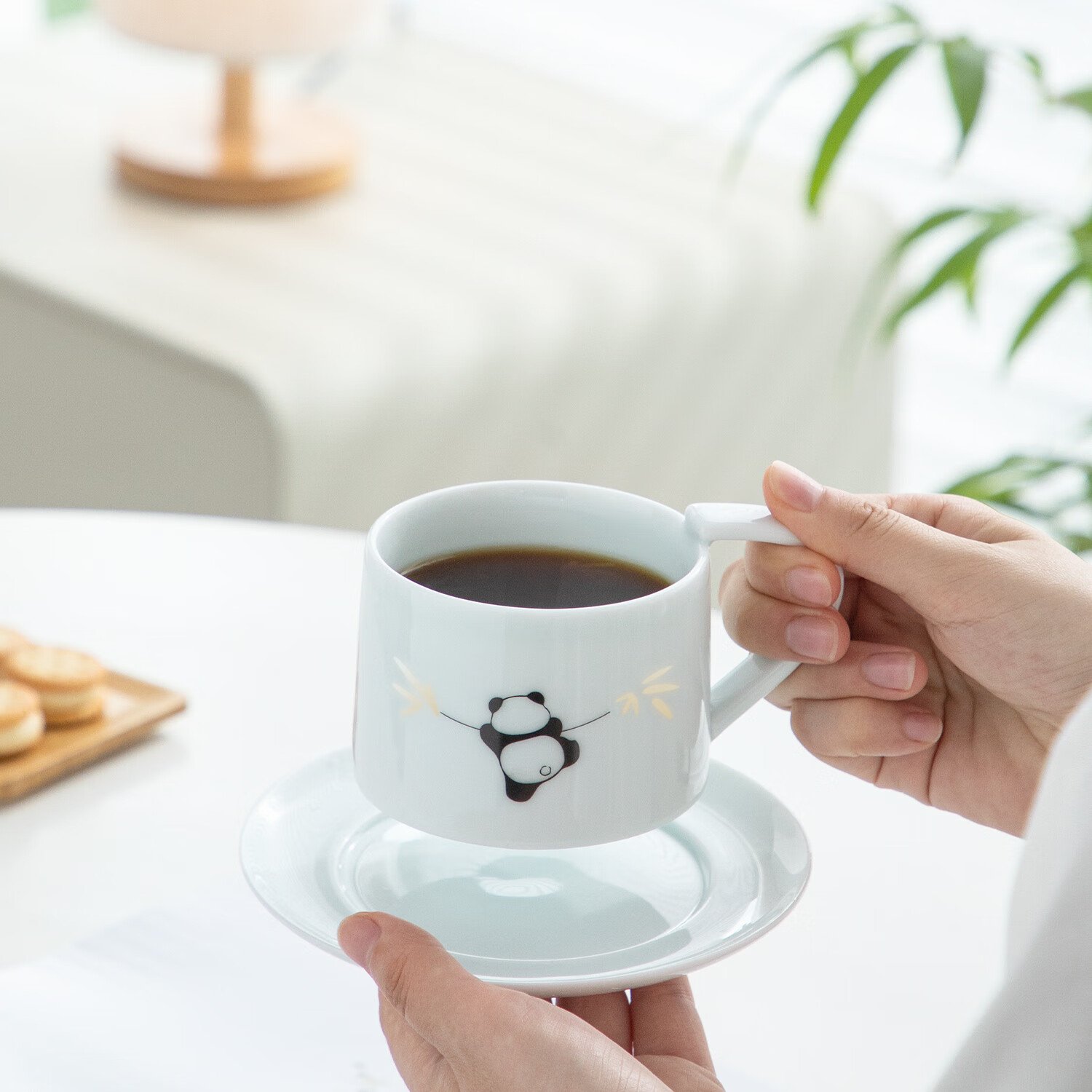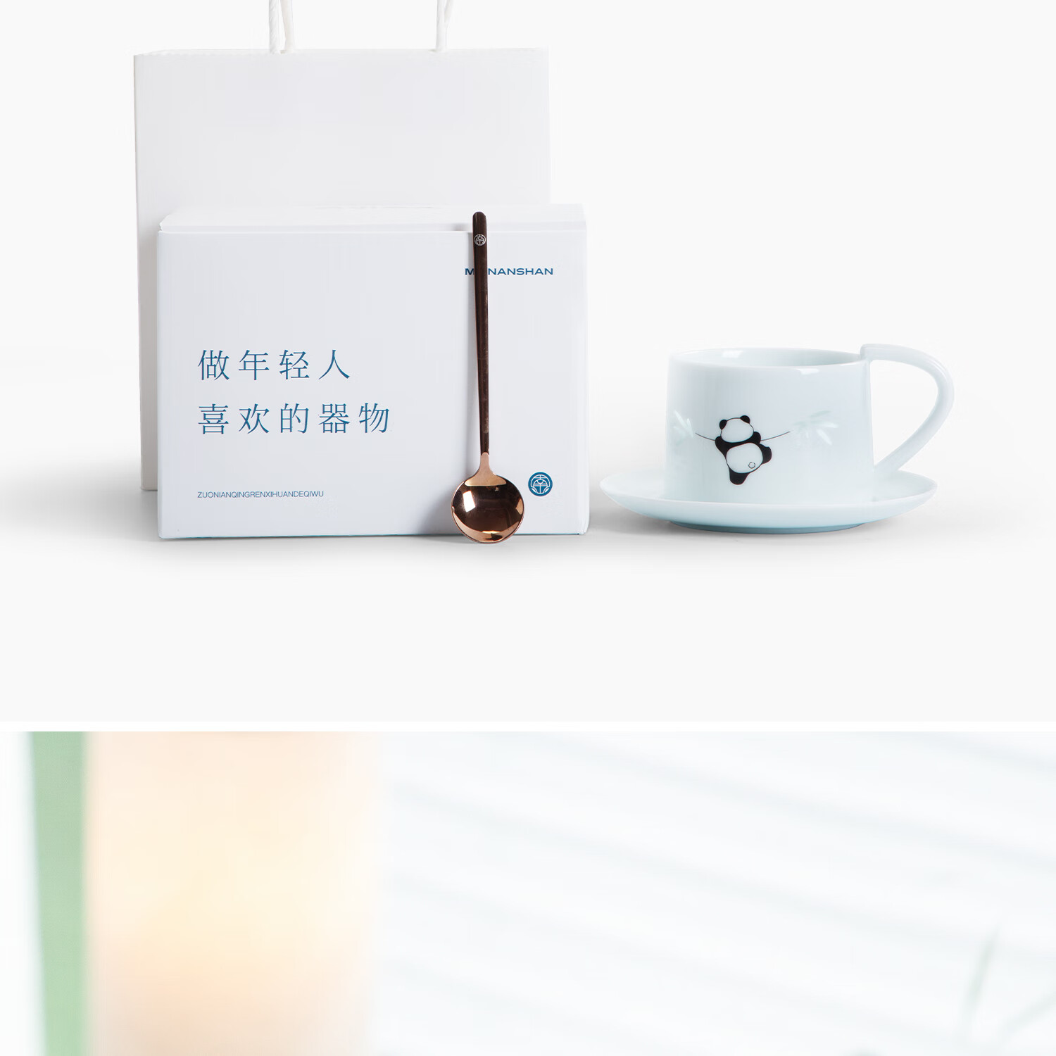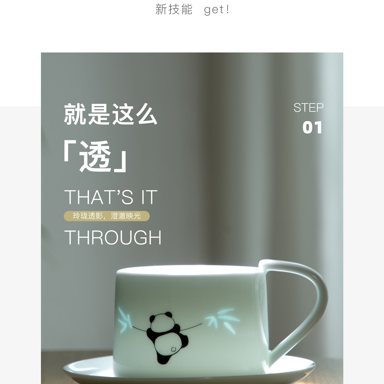 色泽莹润,迎光透亮;国宝熊猫,点亮桌面;耳朵杯柄,符合人体工学设计,端放省力,好看实用。