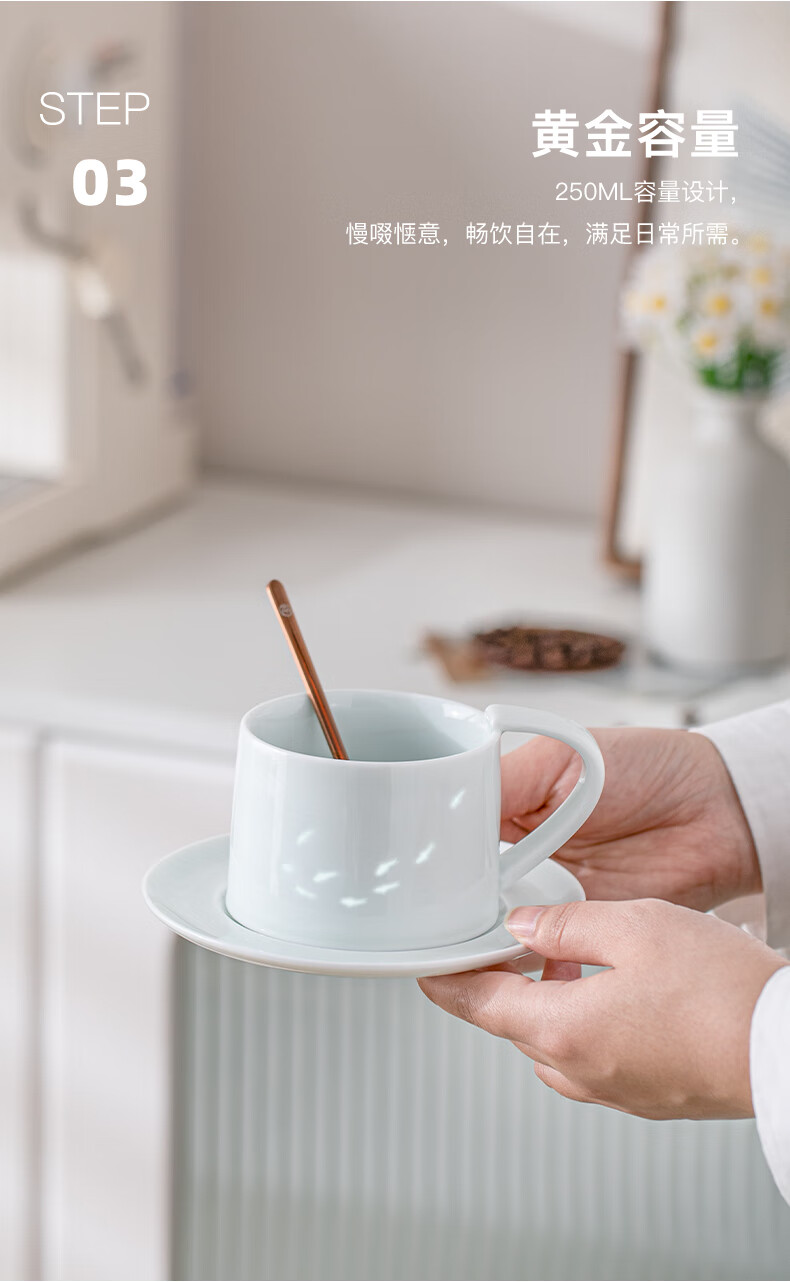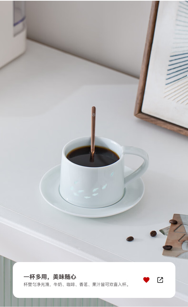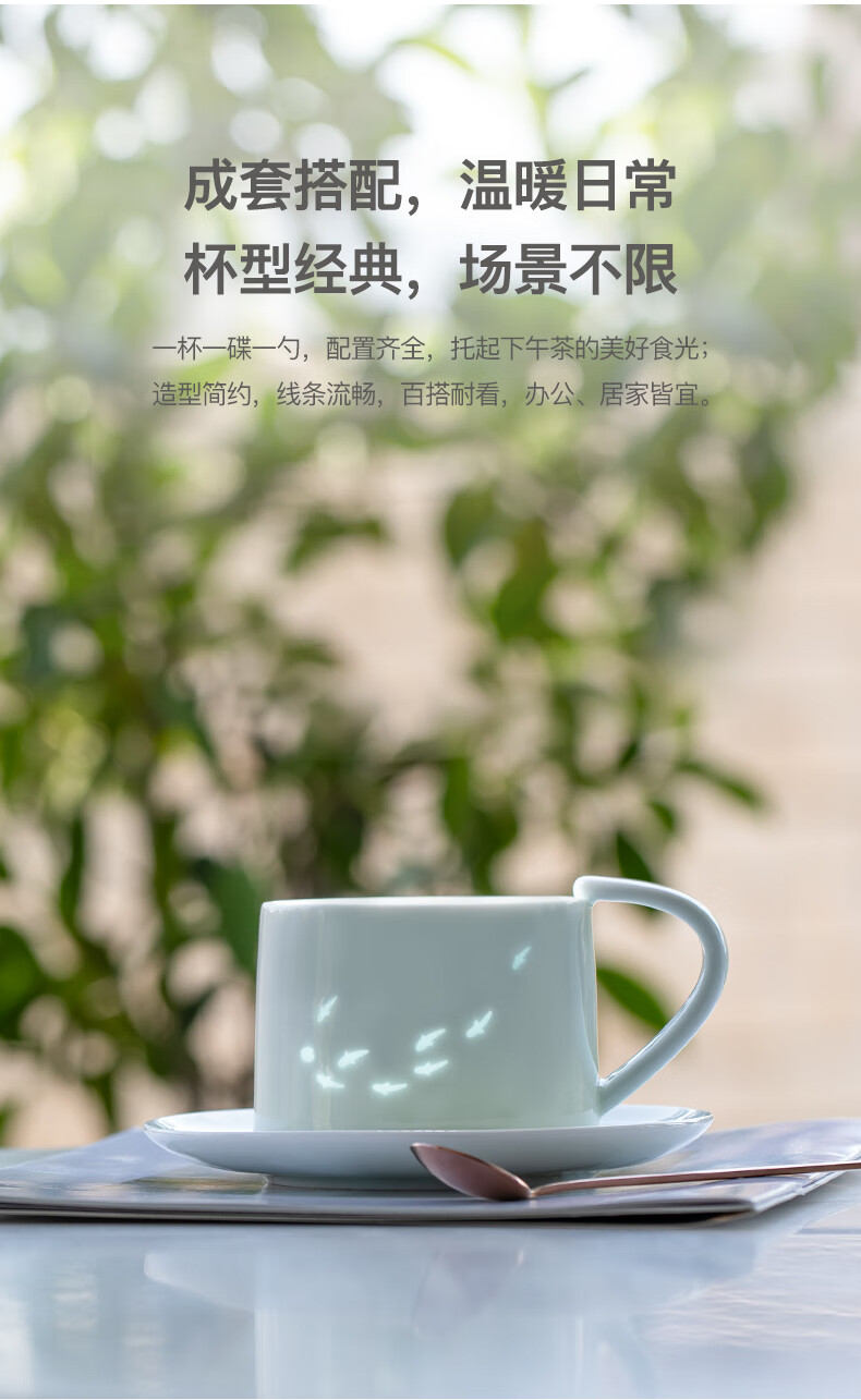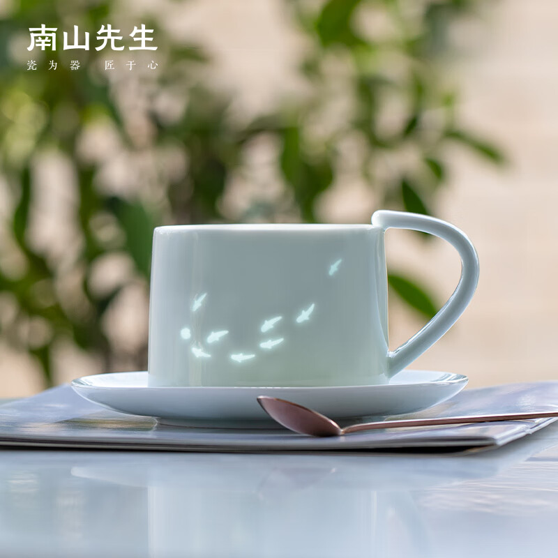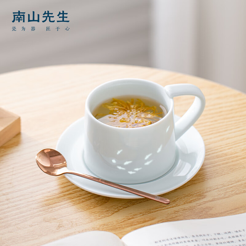 南山先生 陶瓷家用早餐杯办公水杯带碟勺