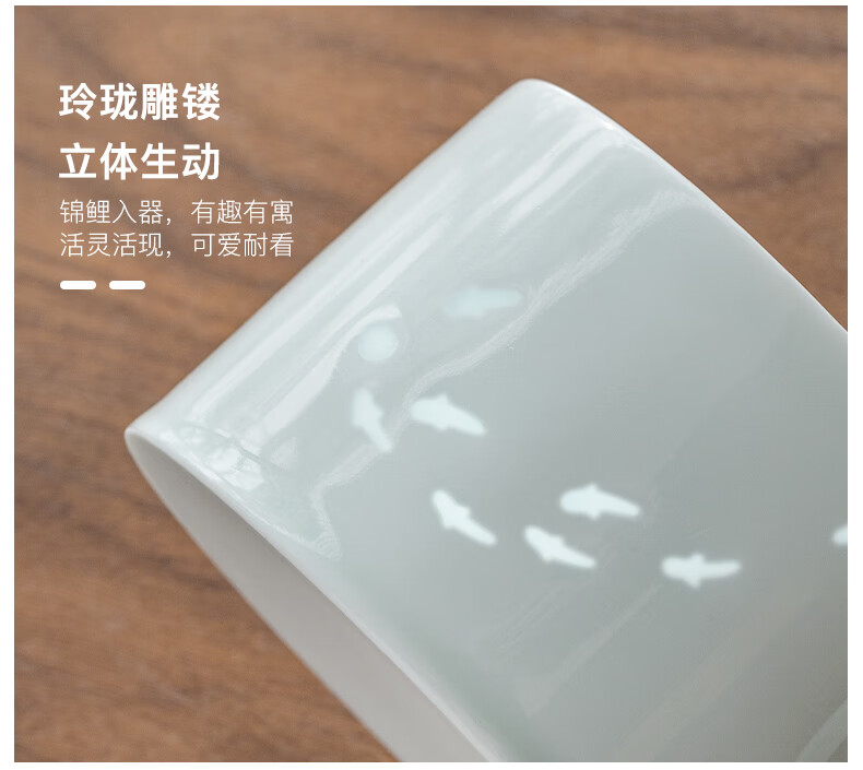 一杯一碟一勺,配置齐全,托起下午茶的美好食光;以雕镂工艺,一刀一划,形成错落有致的镂空游鱼;杯垫卡槽设计平整防滑,放置稳固