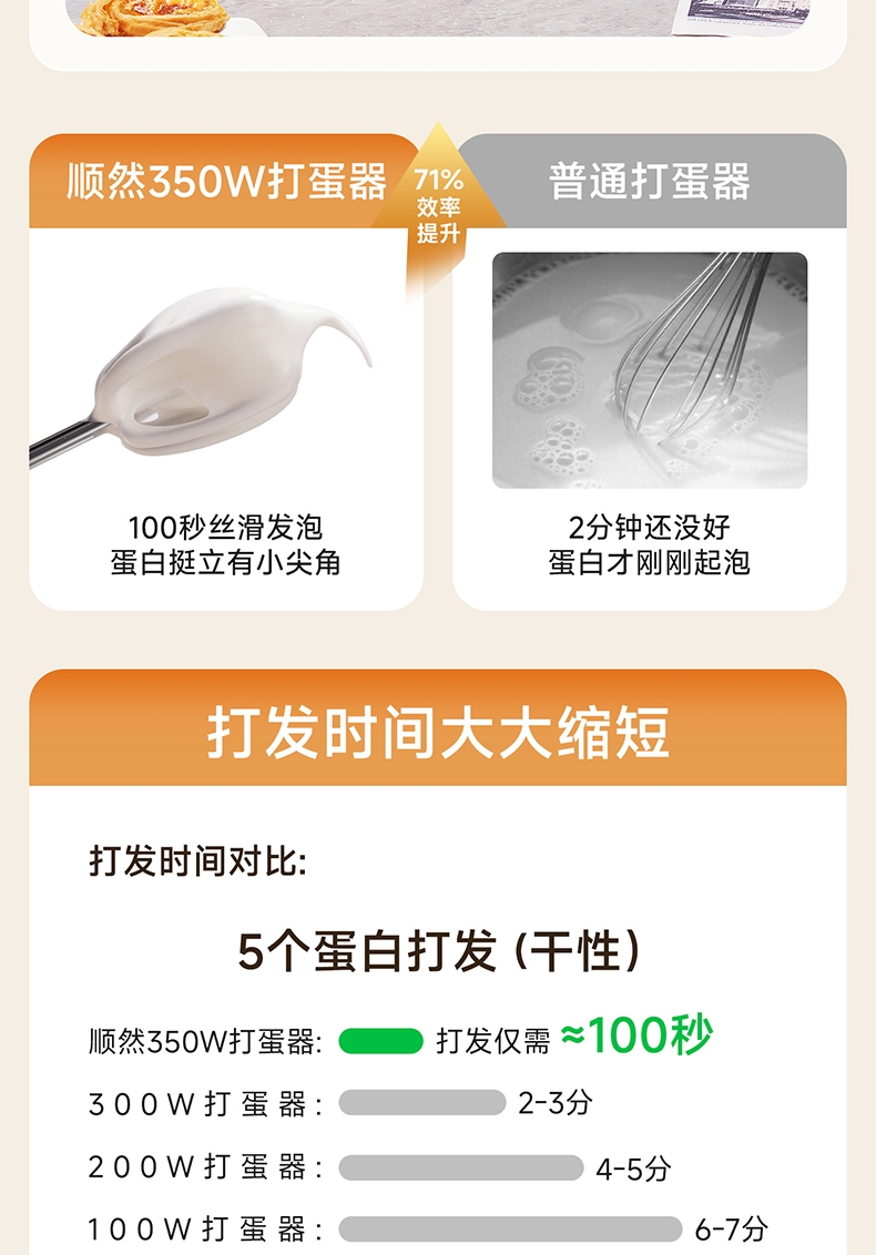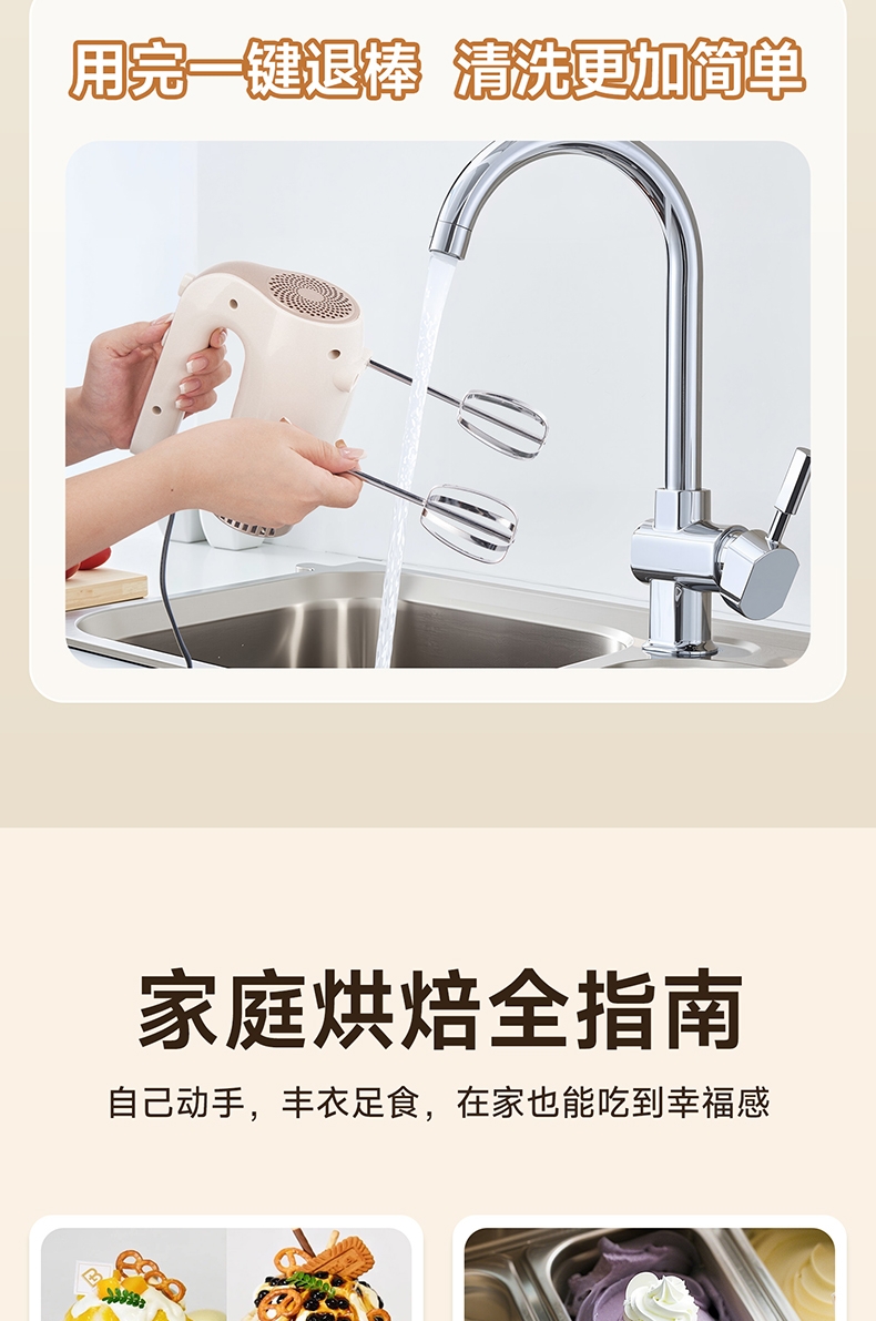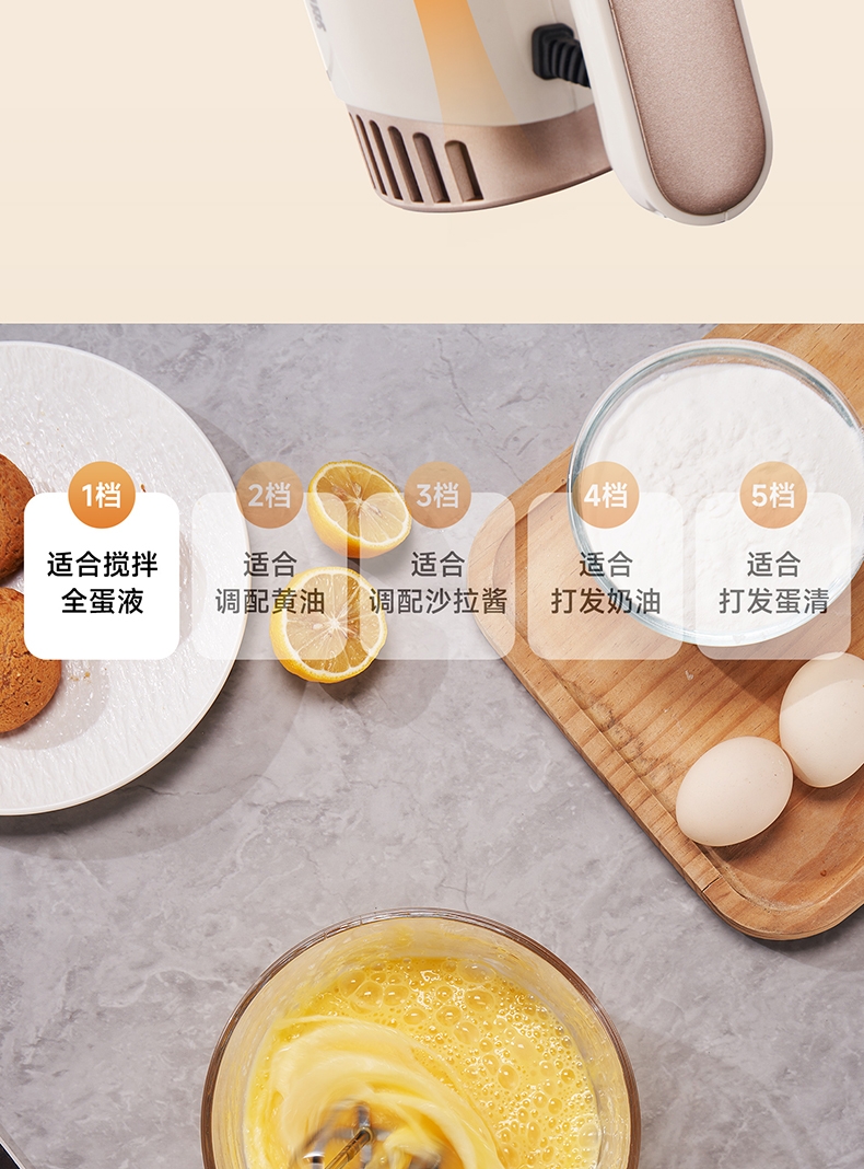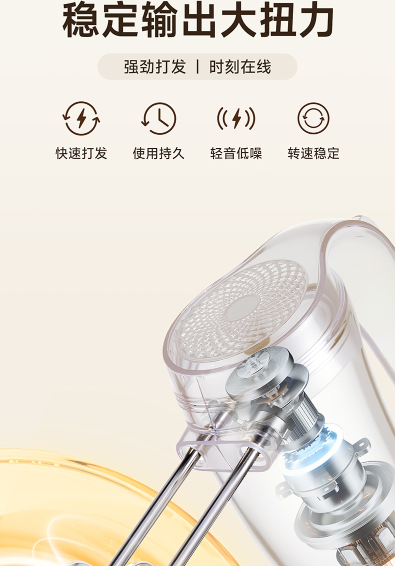 升级6棒304不锈钢材质 350w大功率纯铜电机,;5档自由调速。6棒选择,满足不同打发需求;一键快速退棒,操作方便 不脏手 透明收纳盒好收纳