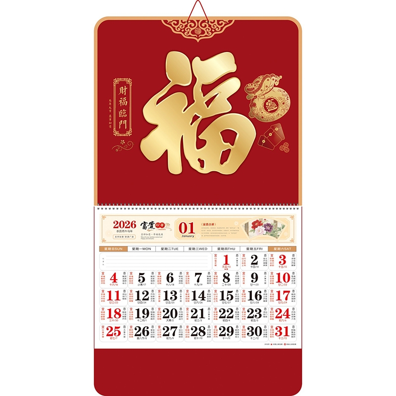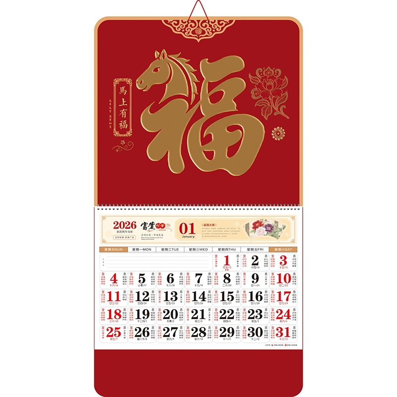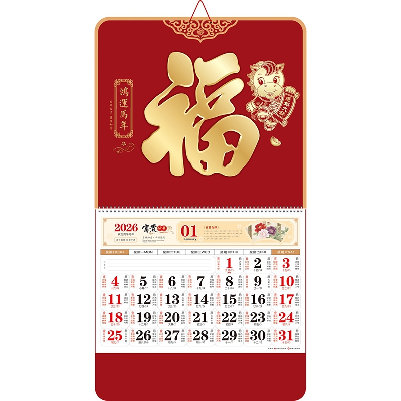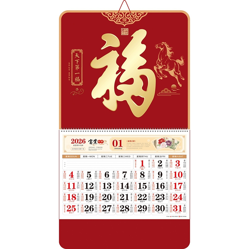 大六枣红系列大度六开福牌挂历