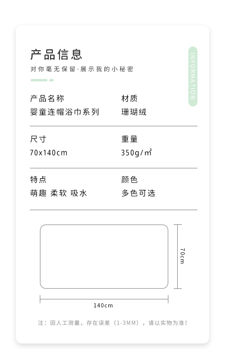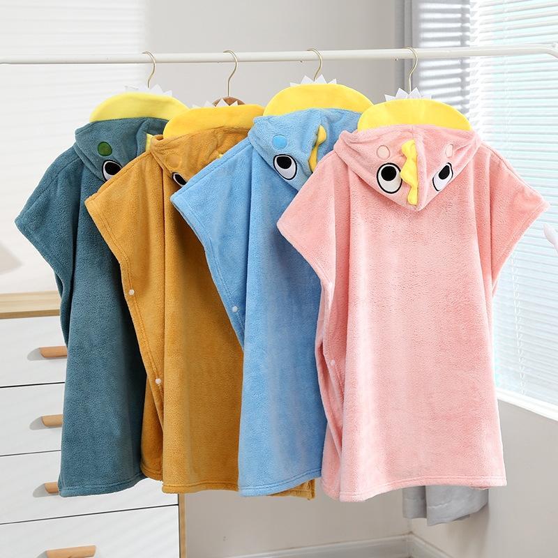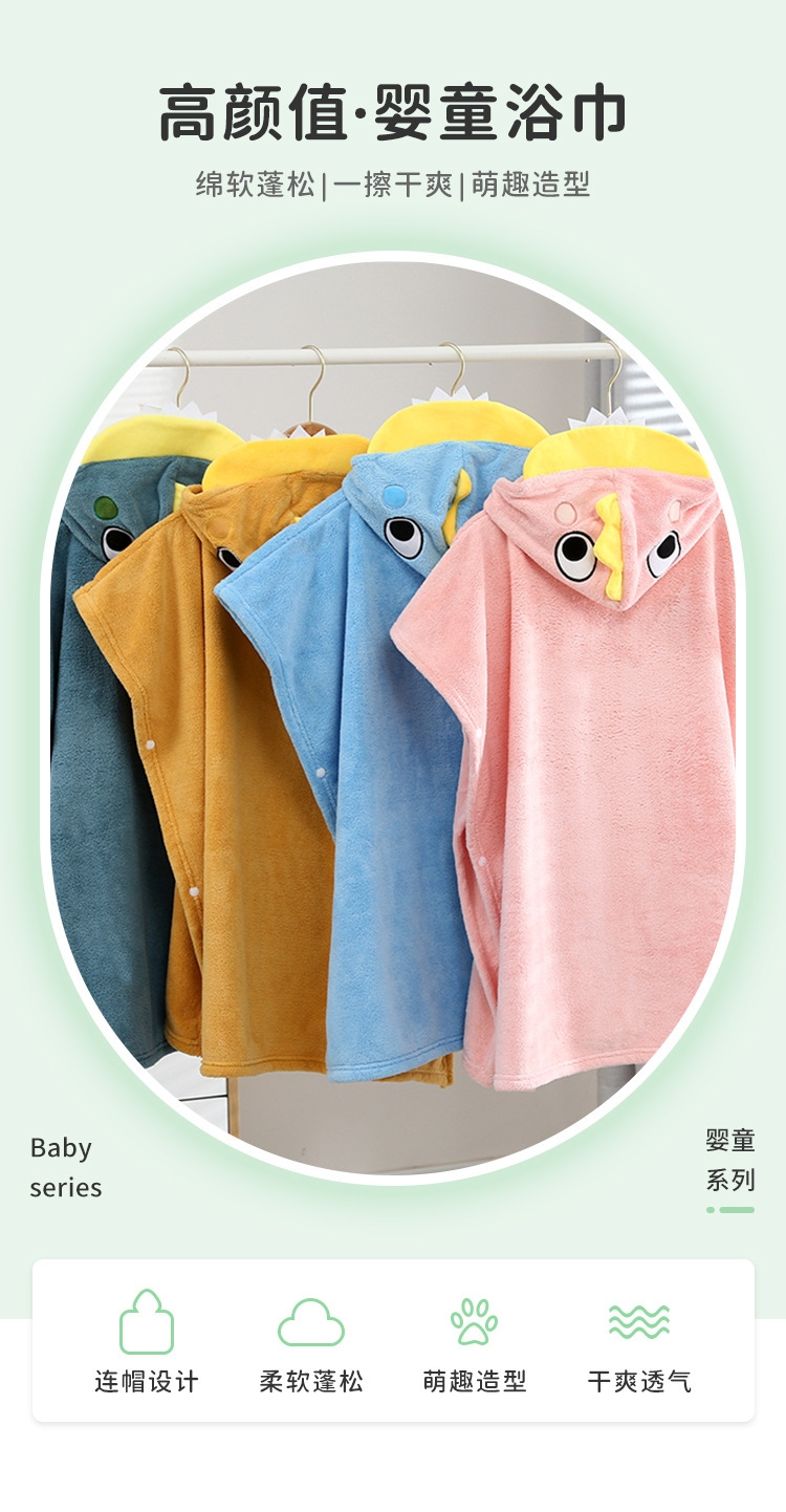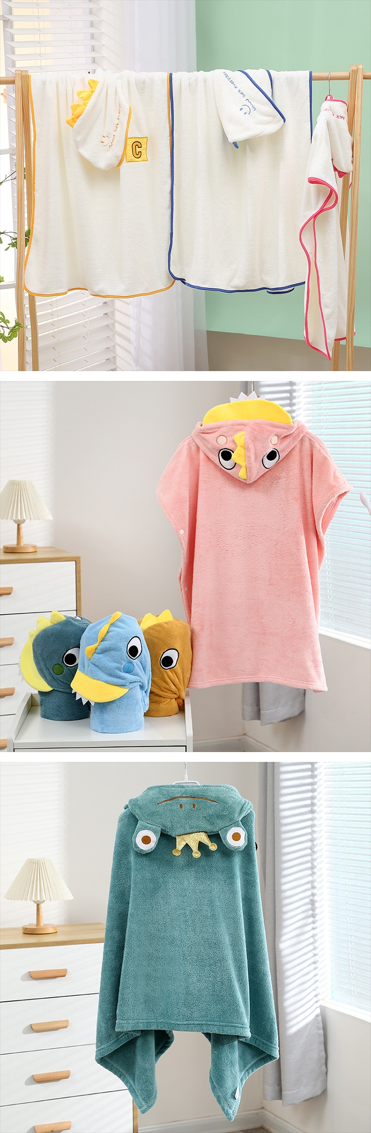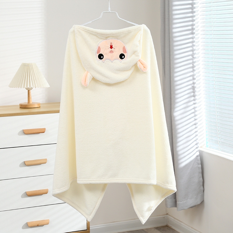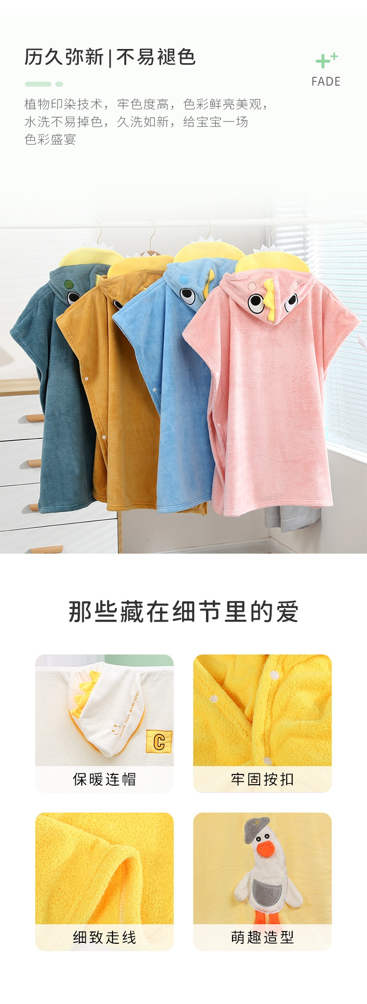 奥来纯 儿童浴袍柔软加厚婴幼儿戴帽浴巾