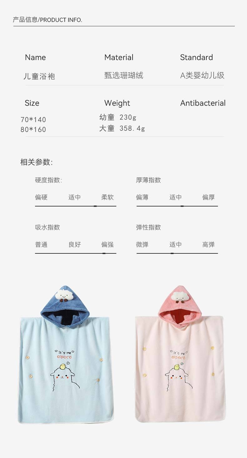 奥来纯 儿童浴巾斗篷小绵羊连帽浴袍浴巾