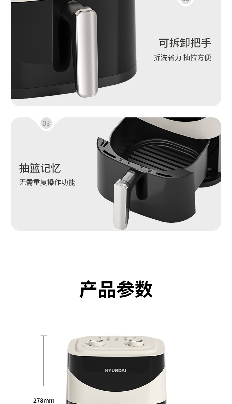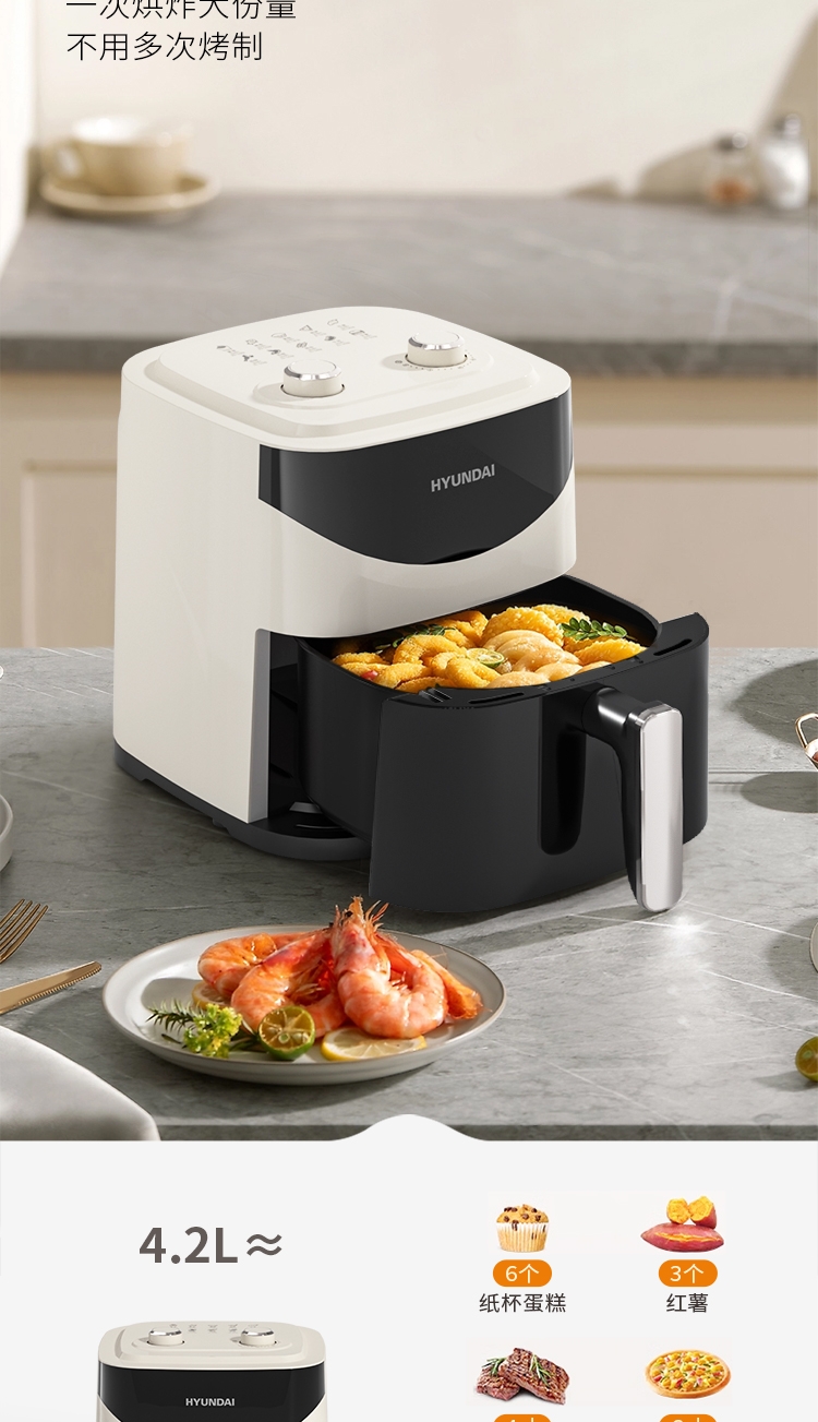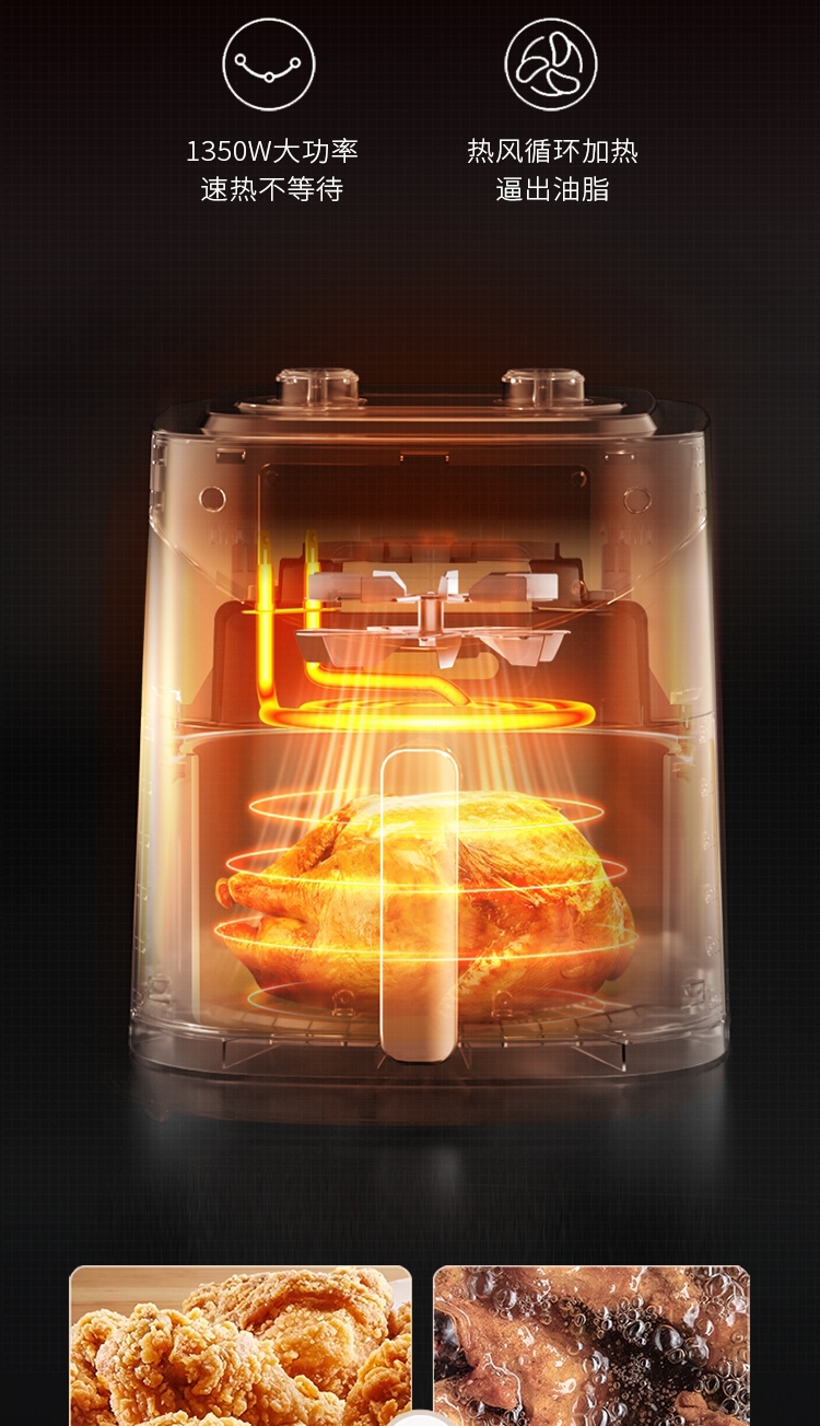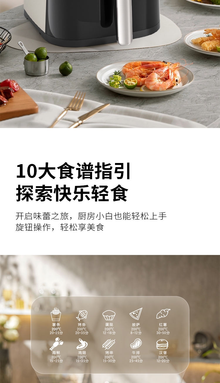4.2L大容量 满足3-5人使用;调时恒温,0-60min、恒温200℃;抽篮断电记忆 抽出炸篮即断电